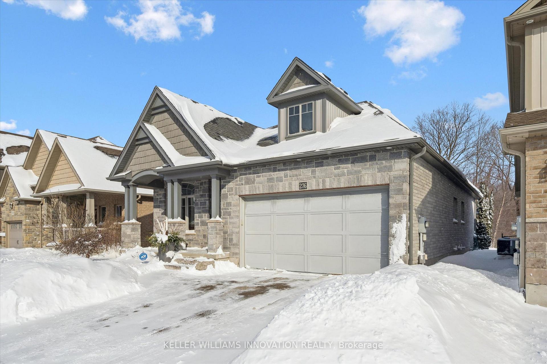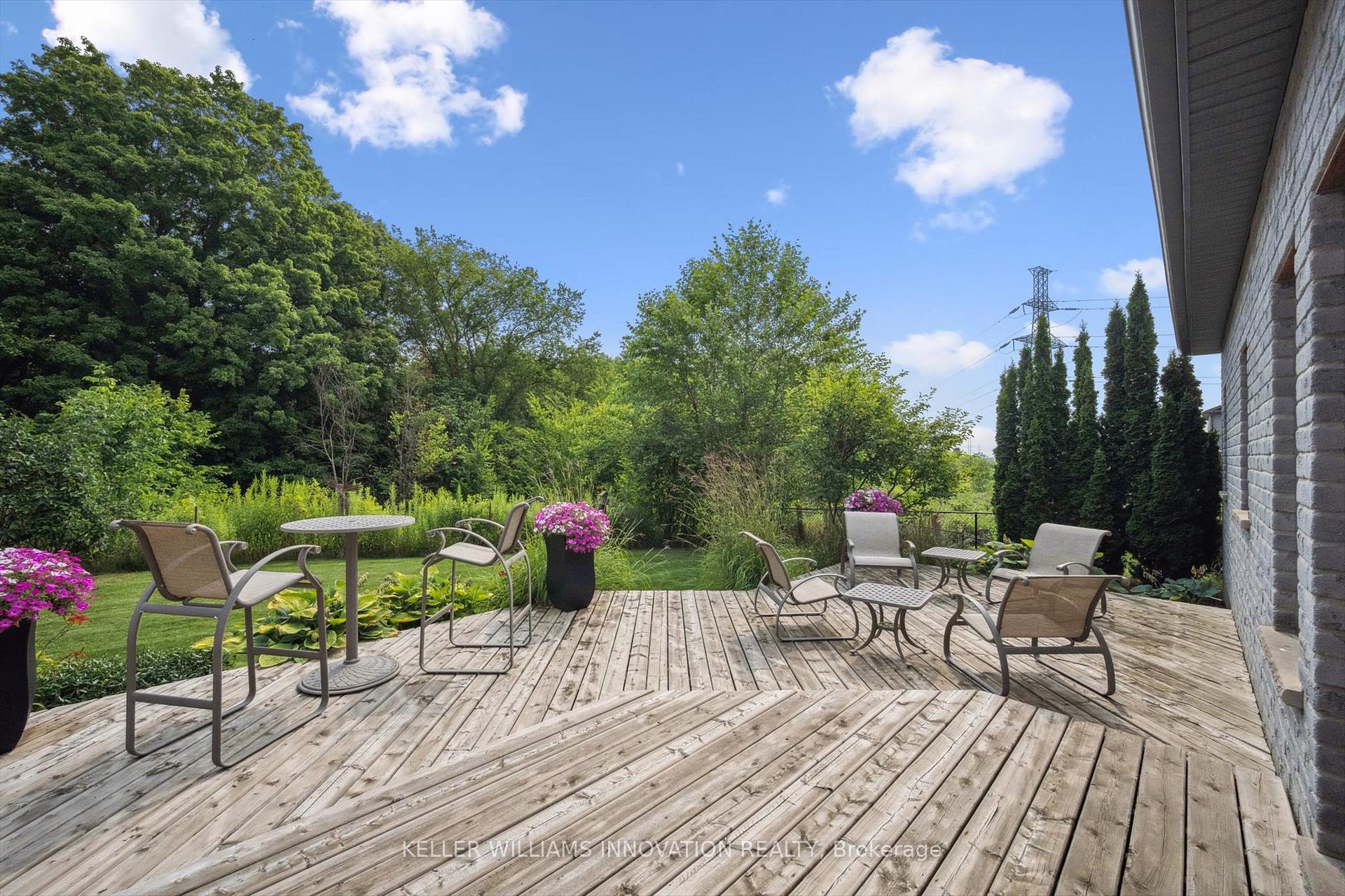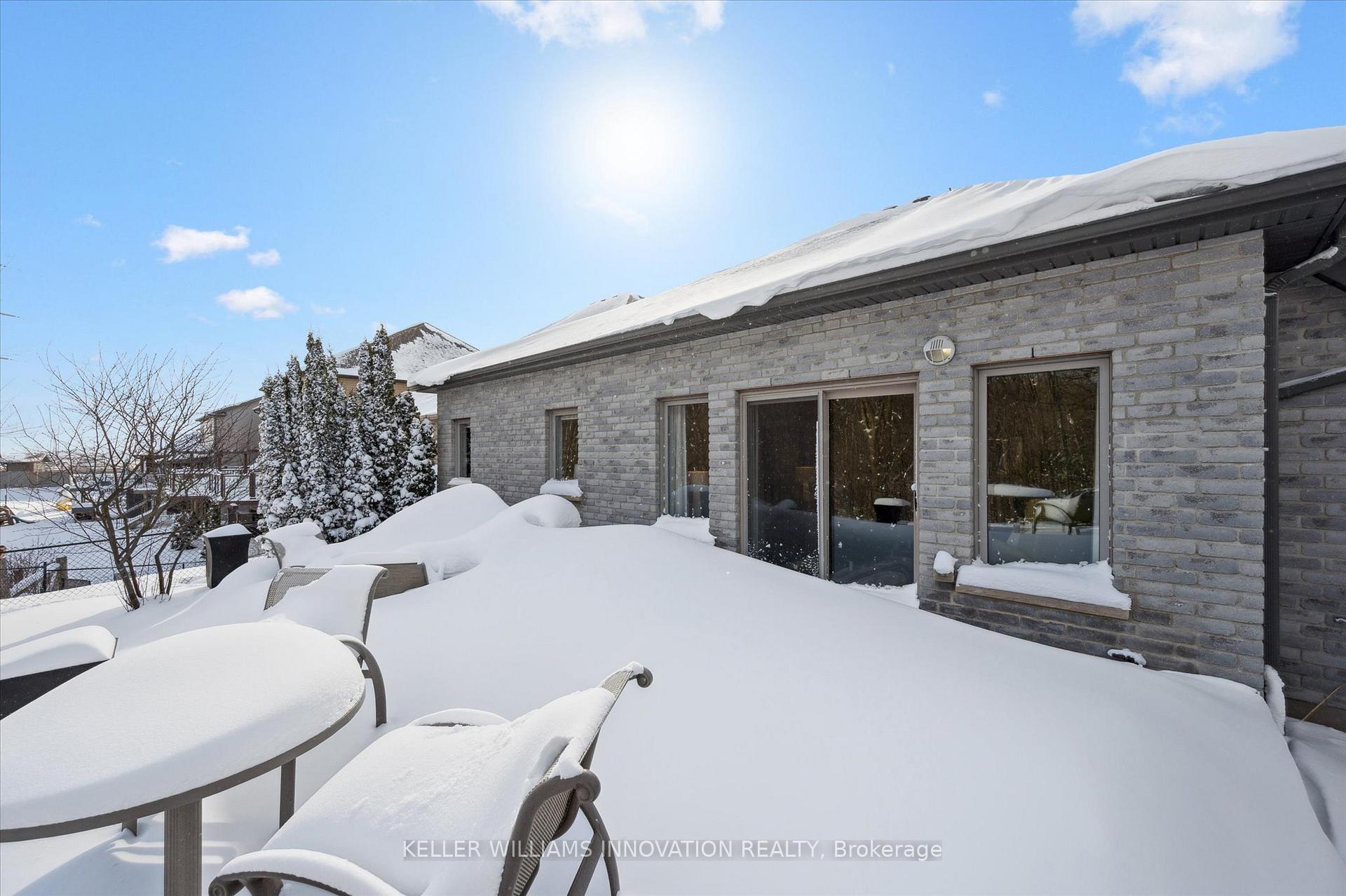 This beautiful stone and brick, 2+1 bedroom bungalow backs onto a protected forest and offers more than 1754 sq ft of total finished living space. Enter through the front foyer, with an adjacent formal dining room with an extra large window looking out onto the front porch. Don’t need a formal dining room? This would be a perfect home office or living room. Head past the 2 piece powder room and into the modern open concept kitchen and great room. The kitchen’s ample cupboard space, wine rack, oversized island and built-in appliances, makes this space the heart of the home. The great room features plenty of natural light and an impressive custom gas fireplace. The rear sliding doors lead out to the backyard, overlooking the private green garden and trees. The large 2 tiered back deck has a BBQ line and is perfect for those summer family gatherings! The main floor primary bedroom has 2 closets and a 4 piece ensuite with walk-in shower and a freestanding bathtub. There is one additional bedroom found on the main floor. The partially finished basement features a large bedroom and 4 piece bathroom. If you are looking for separate living quarters for additional family members, the unfinished half of this basement is the ideal opportunity to design exactly what works for your needs. Located in a great location, close to the playground at Mountain Holly Park and the Geo Time Trail. This home has easy access to The Boardwalk, Costco, HWY 8, Laurel Creek and more!