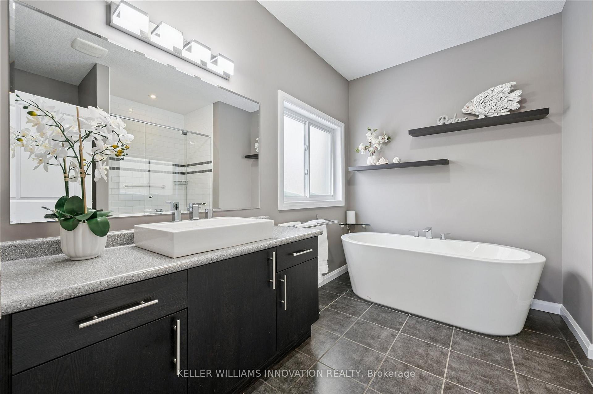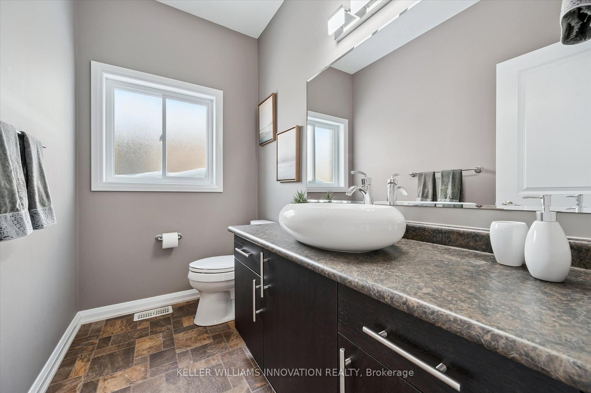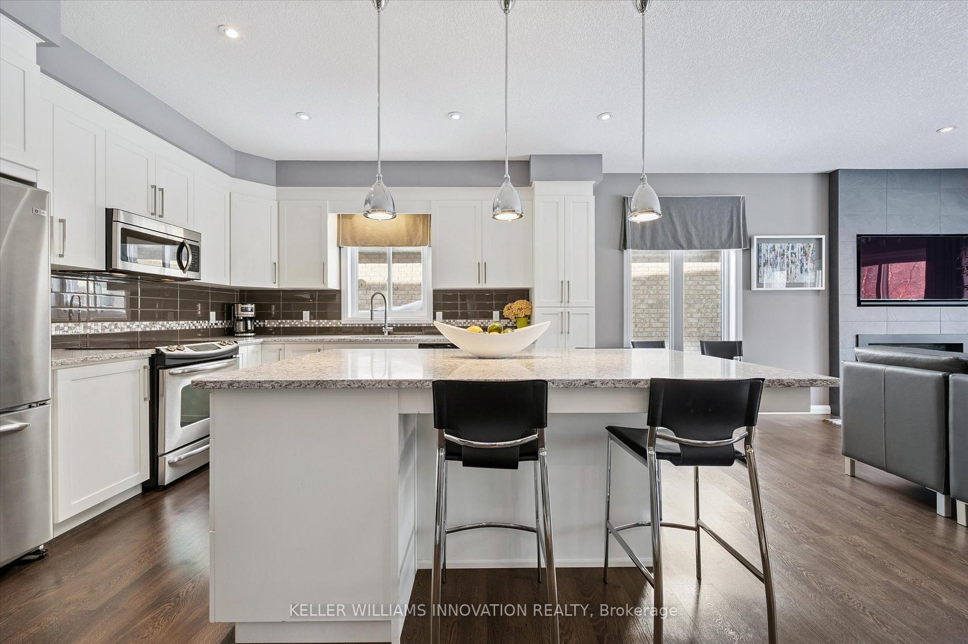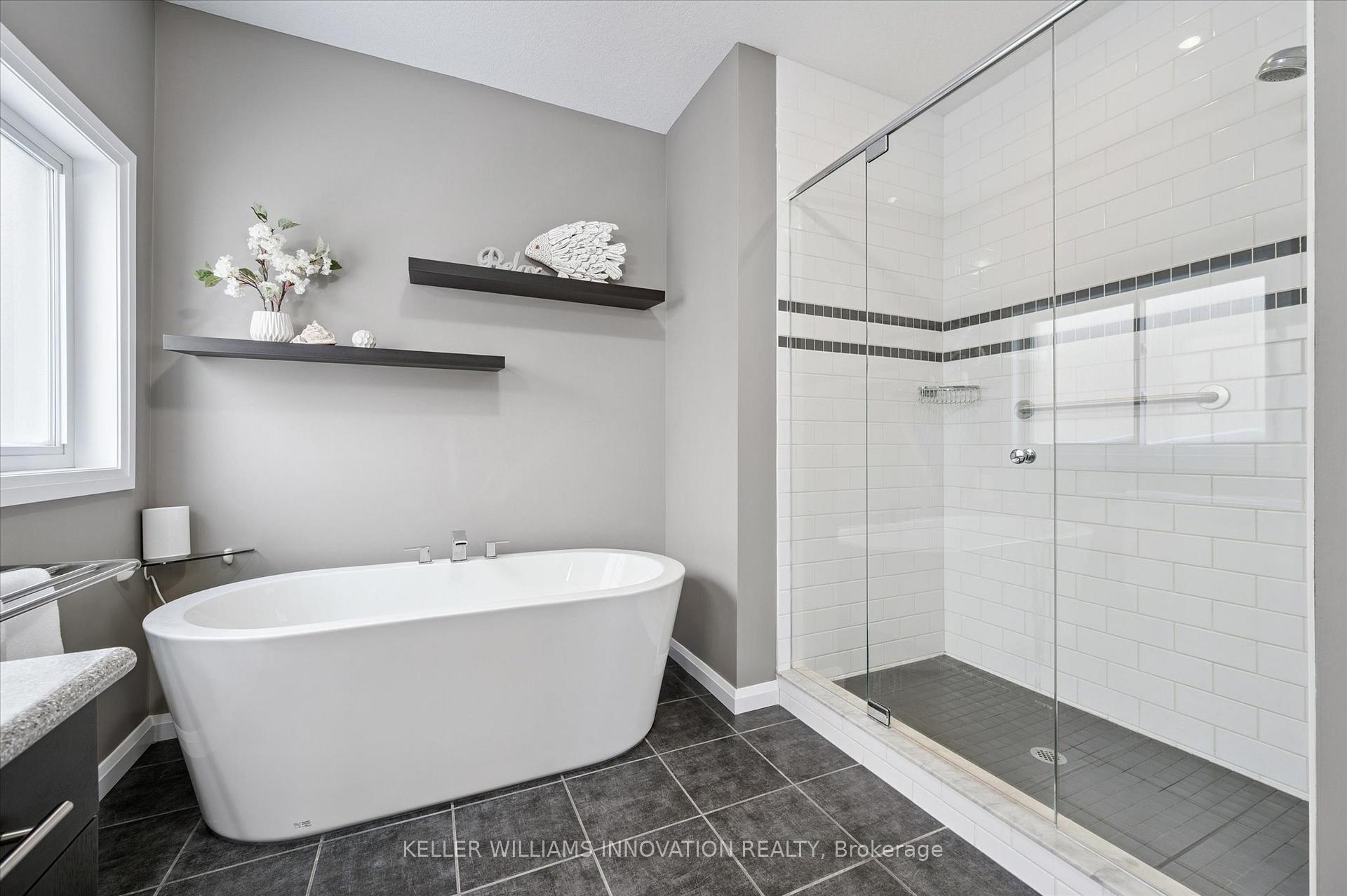 This beautiful stone and brick, 2+1 bedroom bungalow backs onto a protected forest and offers more than 1754 sq ft of total finished living space. Enter through the front foyer, with an adjacent formal dining room with an extra large window looking out onto the front porch. Don’t need a formal dining room? This would be a perfect home office or living room. Head past the 2 piece powder room and into the modern open concept kitchen and great room. The kitchen’s ample cupboard space, wine rack, oversized island and built-in appliances, makes this space the heart of the home. The great room features plenty of natural light and an impressive custom gas fireplace. The rear sliding doors lead out to the backyard, overlooking the private green garden and trees. The large 2 tiered back deck has a BBQ line and is perfect for those summer family gatherings! The main floor primary bedroom has 2 closets and a 4 piece ensuite with walk-in shower and a freestanding bathtub. There is one additional bedroom found on the main floor. The partially finished basement features a large bedroom and 4 piece bathroom. If you are looking for separate living quarters for additional family members, the unfinished half of this basement is the ideal opportunity to design exactly what works for your needs. Located in a great location, close to the playground at Mountain Holly Park and the Geo Time Trail. This home has easy access to The Boardwalk, Costco, HWY 8, Laurel Creek and more!