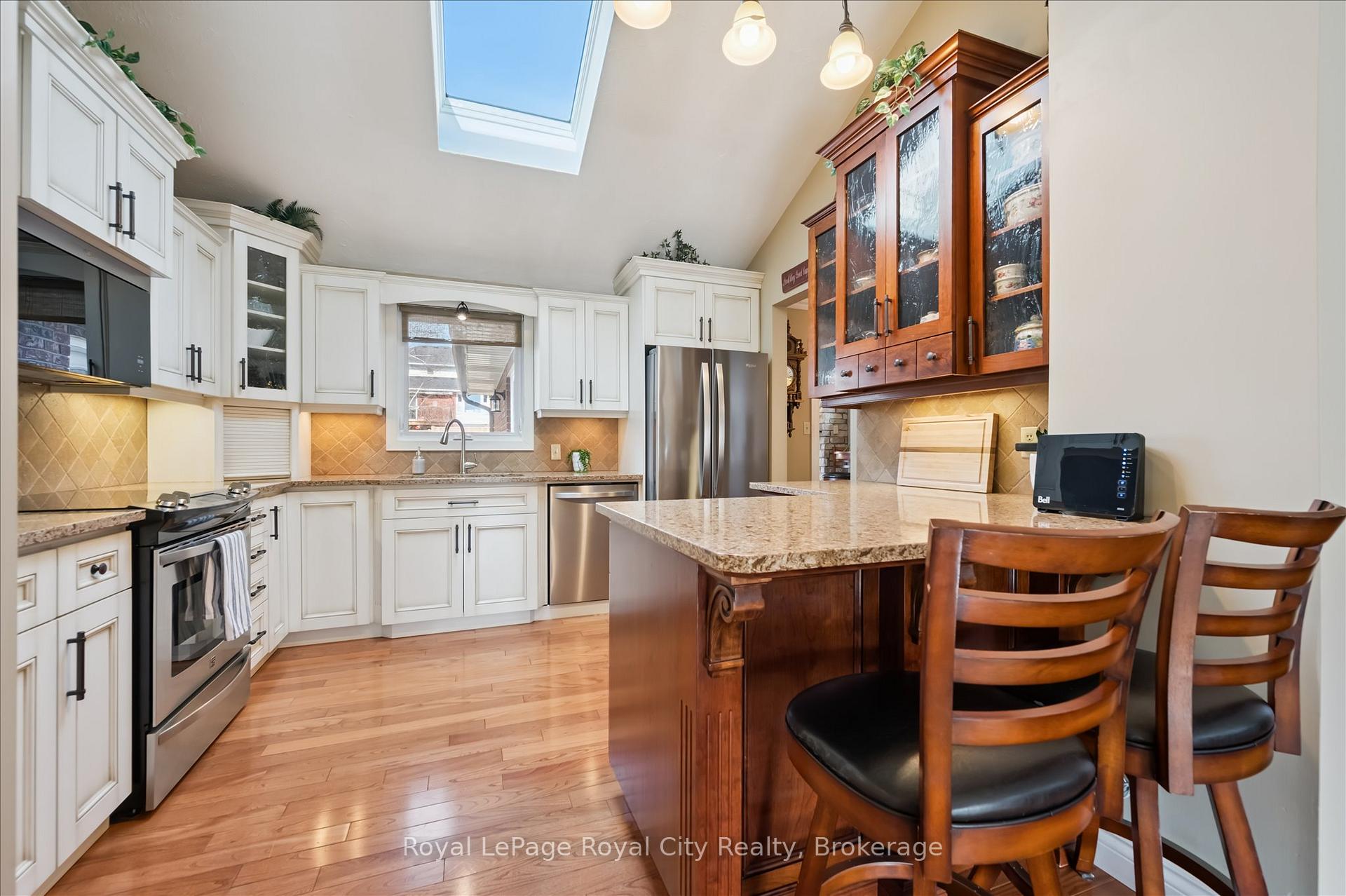 This raised bungalow is going to definitely surprise when you step inside. Nicely updated – and a very spacious layout offering over 2,100 square feet of finished living area. A newer inground salt water POOL with professional hardscaping and gazebo is a special bonus here! The home itself features 4 bedrooms and 2 full baths. Lots of natural light streams throughout the home thanks to all the oversized windows and a large skylight in the kitchen. Beautiful hardwood floors on the main level. And the vaulted ceilings make the home feel even larger. Living and family rooms on the main level and a rec room on the lower level. Lots of space to spread out. Gas fireplace in family room. Walk out to rear deck overlooking the pool and backyard. A great family home – and perfect for entertaining. Double wide interlock brick driveway. A very well maintained home that is move in ready.