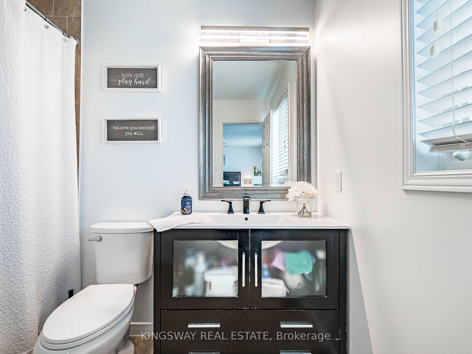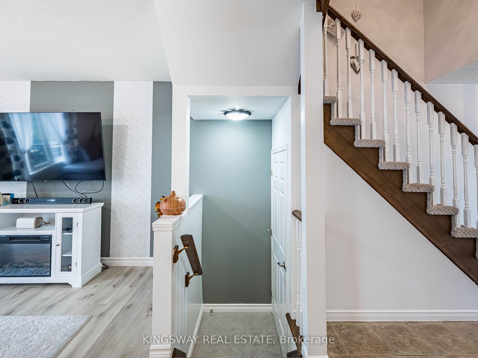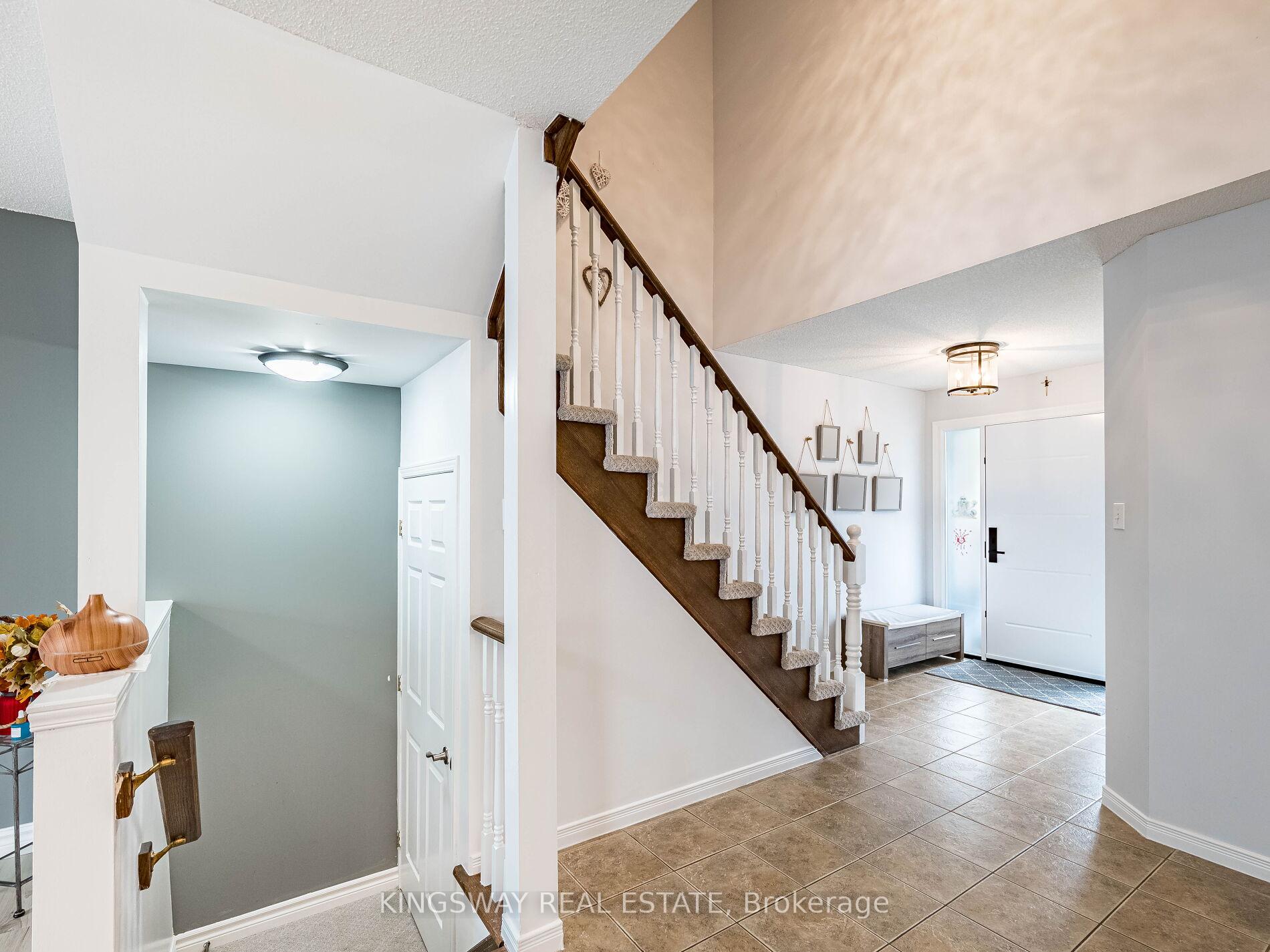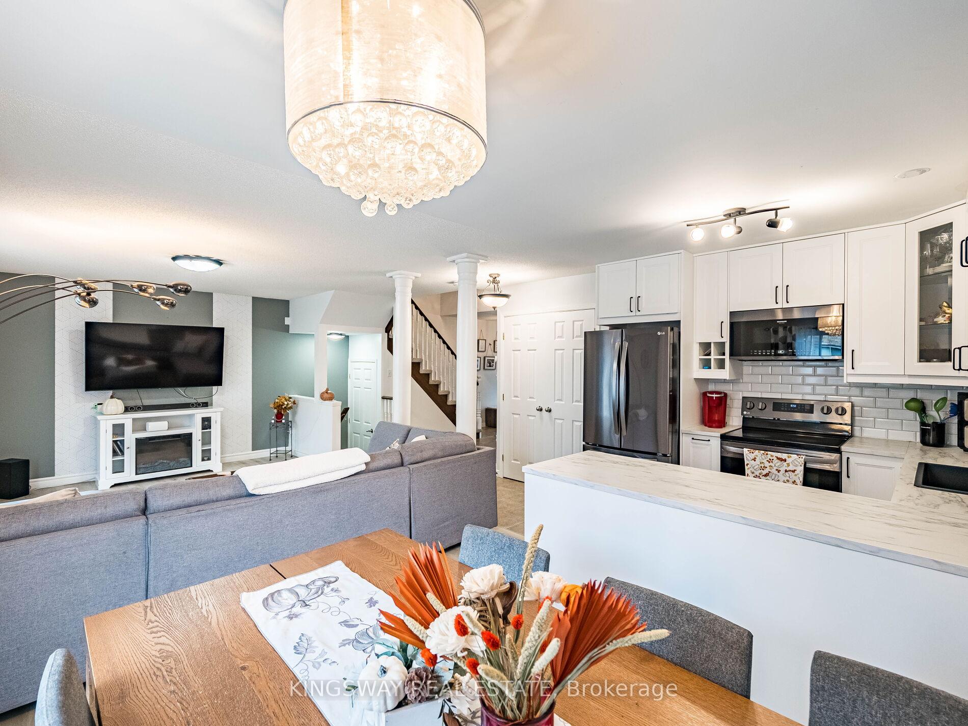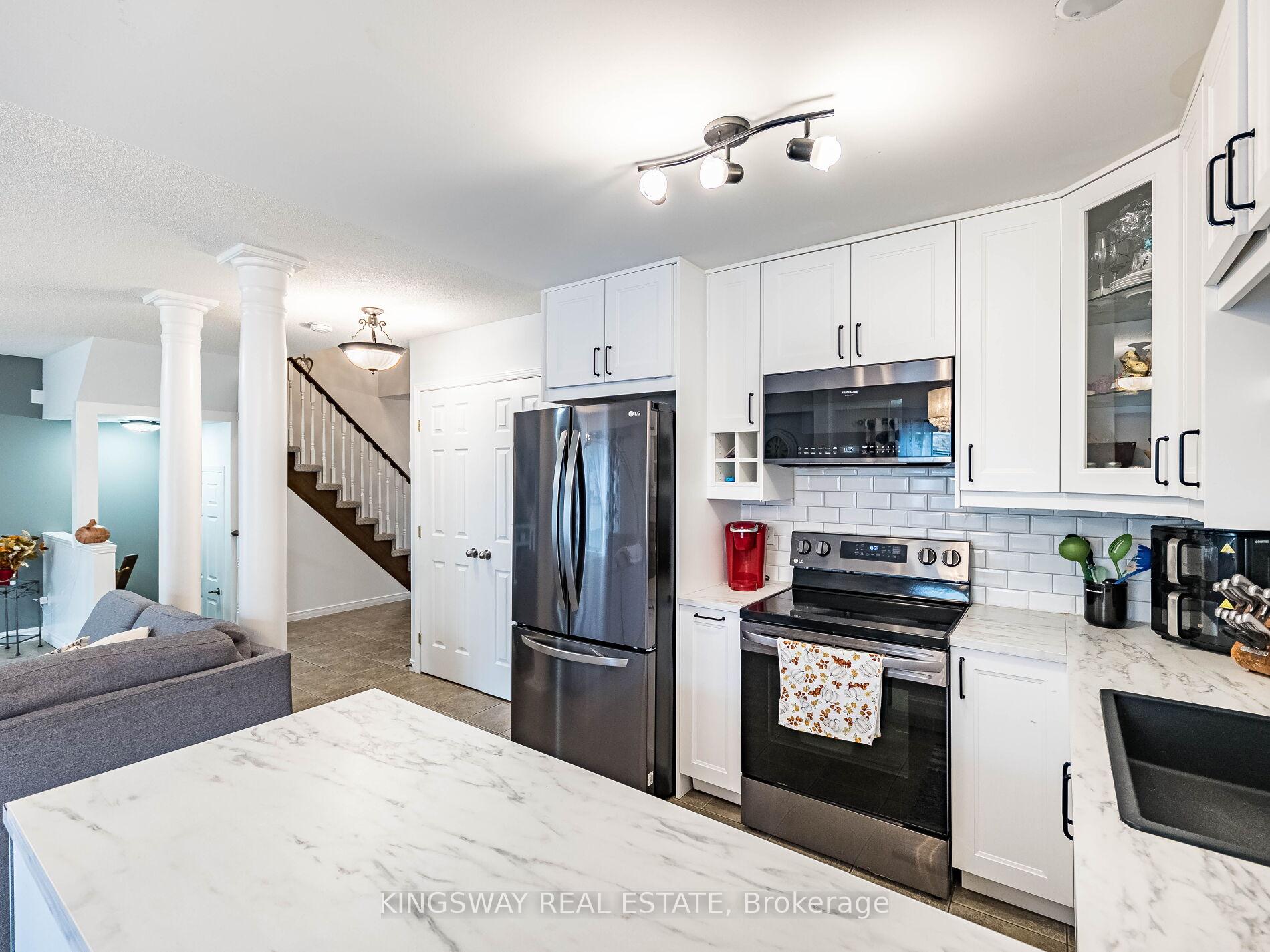 Welcome to 278 Southbrook Drive – Modern Comfort in the Heart of Binbrook!This beautifully maintained freehold 2-storey townhome offers the perfect blend of style, function, and family-friendly living. The bright, open-concept main floor features durable laminate flooring, a spacious dining area, and a stunning renovated kitchen with sleek stainless-steel appliances, crisp white shaker cabinets, quartz-look countertops, and a subway tile backsplash. The thoughtful layout provides excellent counter space and a breakfast peninsula perfect for morning coffee or casual meals, all overlooking the backyard for easy entertaining. Walk out through sliding doors to a private, low-maintenance backyard with a large deck – perfect for relaxing or hosting friends and family. Upstairs, you’ll find three generous bedrooms, including a primary suite with a 4-piece ensuite featuring both a tub and separate shower, plus an additional 4-piece main bath. The unfinished basement provides excellent storage and future potential, with laundry conveniently located on the lower level. Enjoy ample parking with a double garage and driveway accommodating up to three cars. Located within walking distance to schools, parks, and trails, and just minutes from shops and amenities, this home combines modern comfort, convenience, and exceptional value – a perfect opportunity to own in one of Binbrook’s most desirable communities.