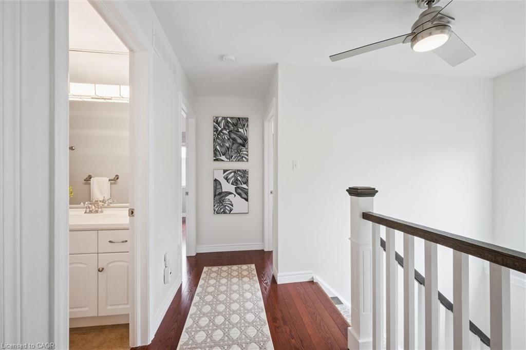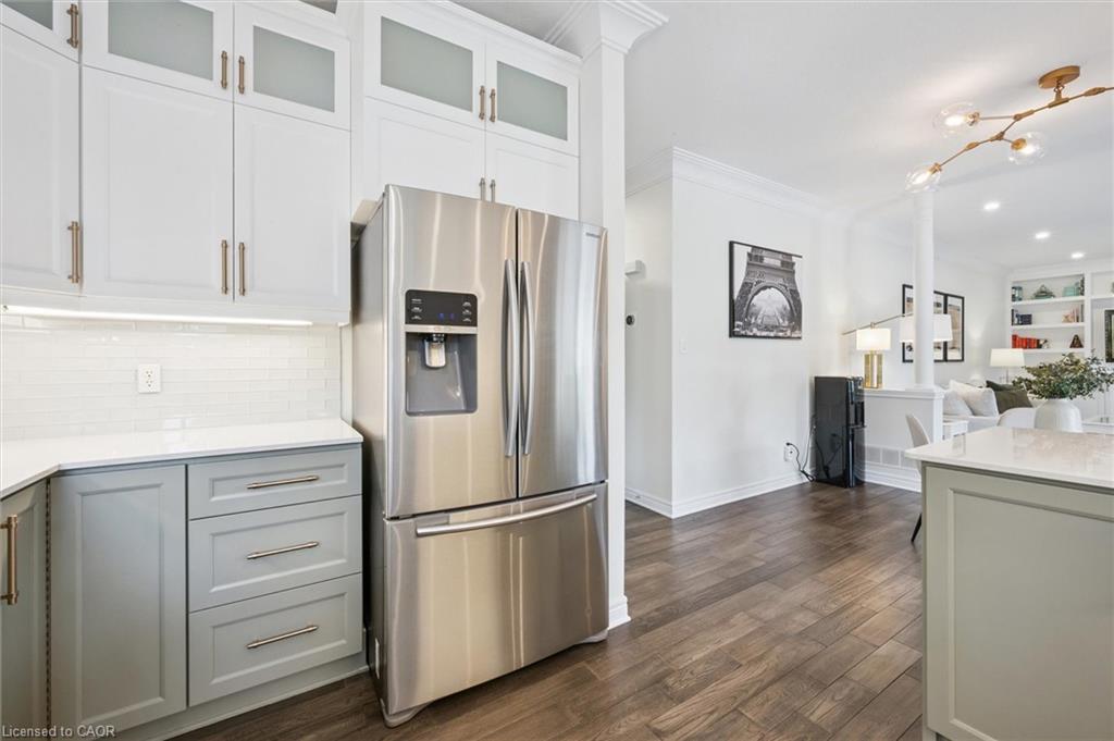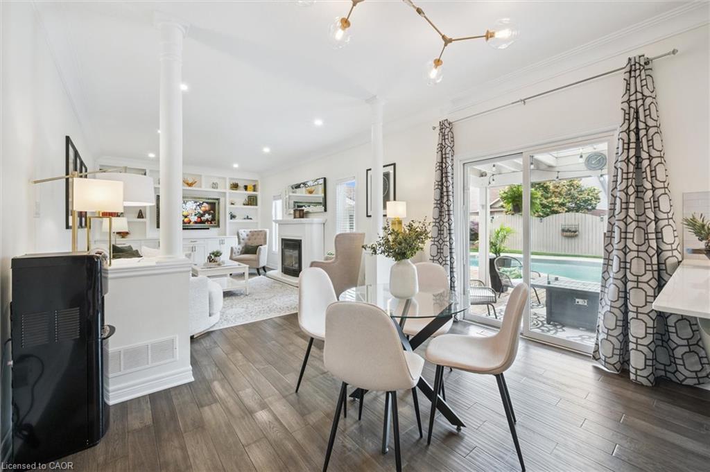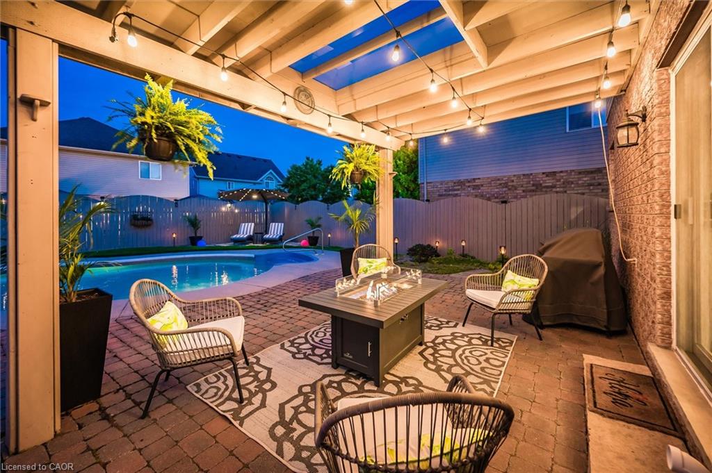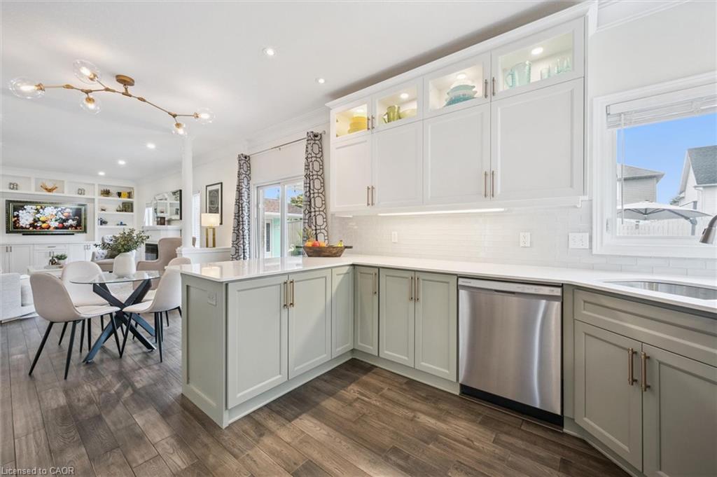 Stylishly Updated for Modern Living! Located in Guelphs sought-after south end, this beautifully upgraded home offers over 3,000 sqft of finished living space, including 3 bedrooms and 4 bathrooms perfect for todays busy family. With undeniable curb appeal, the home welcomes you with a charming covered porch and double-door entry into a bright, inviting foyer. The first floor boasts soaring 9-foot ceilings and hardwood floors, which continue throughout the second level. The formal dining room sets the tone for elegant entertaining, featuring full-height paneling, crown molding, and a striking contemporary chandelier.The heart of the home is the showstopping eat-in kitchen, complete with two-tone cabinetry, quartz countertops, stainless steel appliances, and a sunny breakfast area with walkout to the backyard. A cozy family room anchored by a gas fireplace and custom built-in bookshelves is the perfect space to unwind. Upstairs, rich hardwood flooring continues throughout, leading to the luxurious primary suite with a bay window, walk-in closet, and a spa-like 5-piece ensuite featuring a jetted Jacuzzi tub.The fully finished basement offers exceptional flexibility ideal for a home office, gym, playroom, or guest suite, complete with a full bathroom. Outside, the fully fenced yard is your private retreat, featuring an in-ground pool, mature landscaping, covered patio area, and an insulated pool house with hydro. Recent updates include a new pool liner, cover, heater, and equipment, as well as updated windows, furnace, AC, staircase, flooring, kitchen cabinetry, and much more! Located in a fantastic school district including St. Ignatius, Westminster Woods, St. Paul’s, Sir Issac Brock, and Bishop Mac. The house is near parks, amenities, and the 401, this home truly has it all.