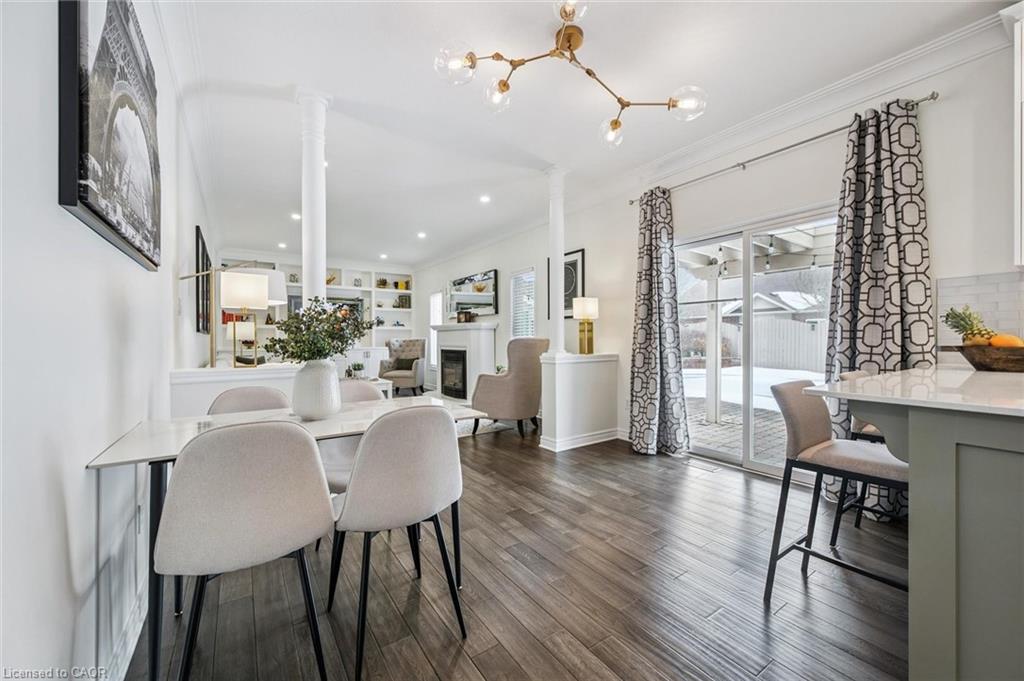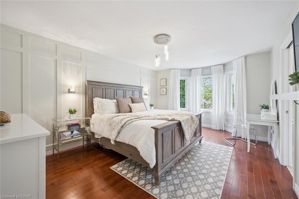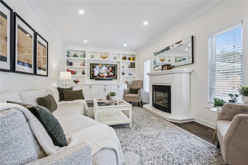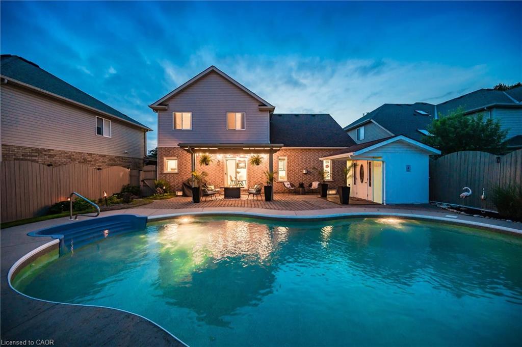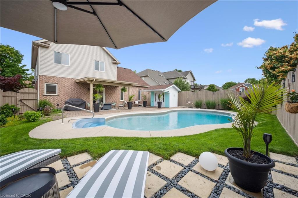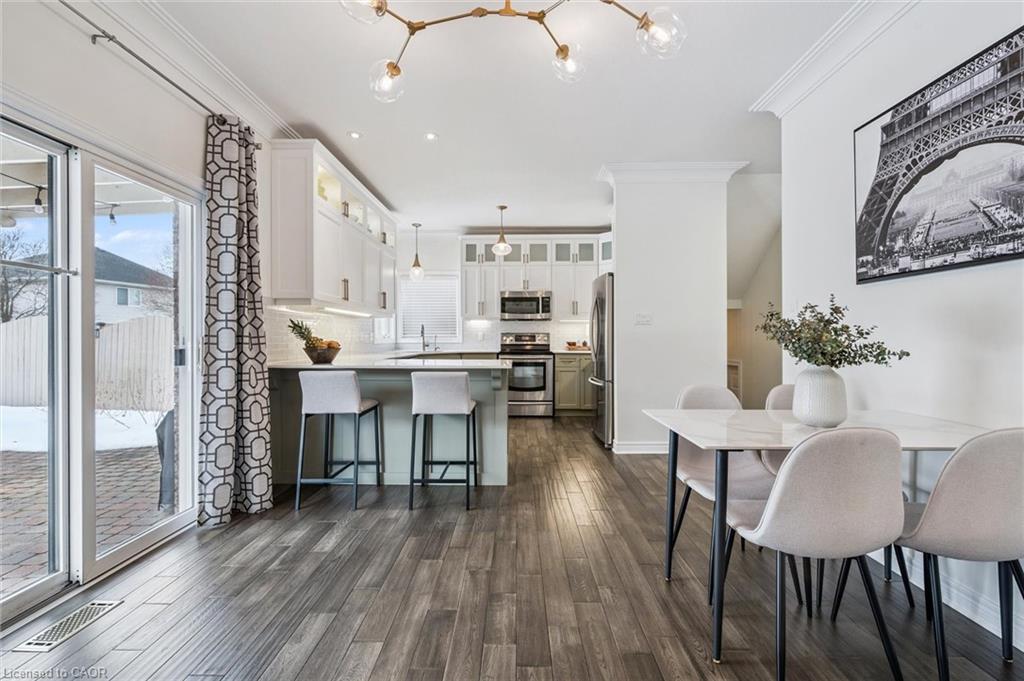 Stylishly Updated for Modern Living! Located in Guelphs sought-after south end, this beautifully upgraded home offers over 3,000 sqft of finished living space, including 3 bedrooms and 4 bathrooms perfect for todays busy family. With undeniable curb appeal, the home welcomes you with a charming covered porch and double-door entry into a bright, inviting foyer. The first floor boasts soaring 9-foot ceilings and hardwood floors, which continue throughout the second level. The formal dining room sets the tone for elegant entertaining, featuring full-height paneling, crown molding, and a striking contemporary chandelier.The heart of the home is the showstopping eat-in kitchen, complete with two-tone cabinetry, quartz countertops, stainless steel appliances, and a sunny breakfast area with walkout to the backyard. A cozy family room anchored by a gas fireplace and custom built-in bookshelves is the perfect space to unwind. Upstairs, rich hardwood flooring continues throughout, leading to the luxurious primary suite with a bay window, walk-in closet, and a spa-like 5-piece ensuite featuring a jetted Jacuzzi tub.The fully finished basement offers exceptional flexibility ideal for a home office, gym, playroom, or guest suite, complete with a full bathroom. Outside, the fully fenced yard is your private retreat, featuring an in-ground pool, mature landscaping, covered patio area, and an insulated pool house with hydro. Recent updates include a new pool liner, cover, heater, and equipment, as well as updated windows, furnace, AC, staircase, flooring, kitchen cabinetry, and much more! Located in a fantastic school district including St. Ignatius, Westminster Woods, St. Paul’s, Sir Issac Brock, and Bishop Mac. The house is near parks, amenities, and the 401, this home truly has it all.