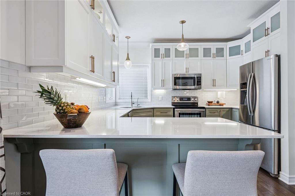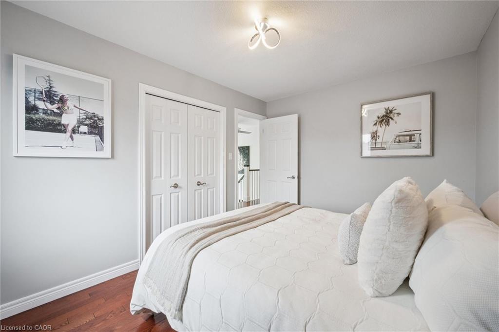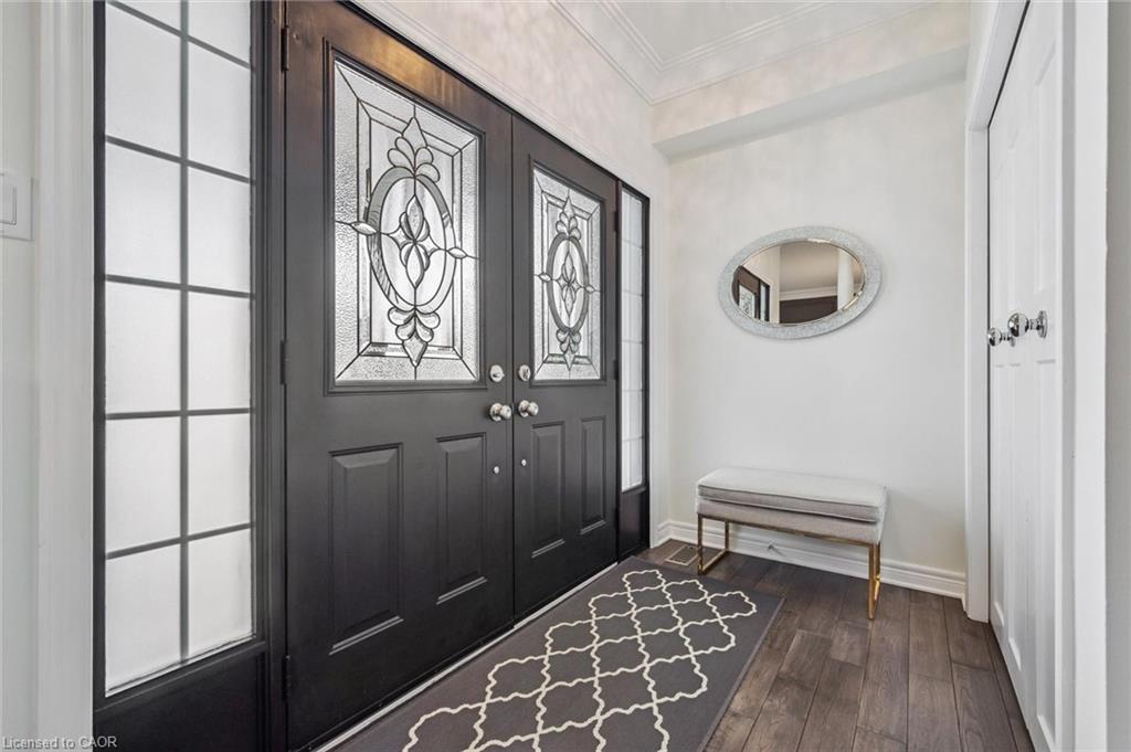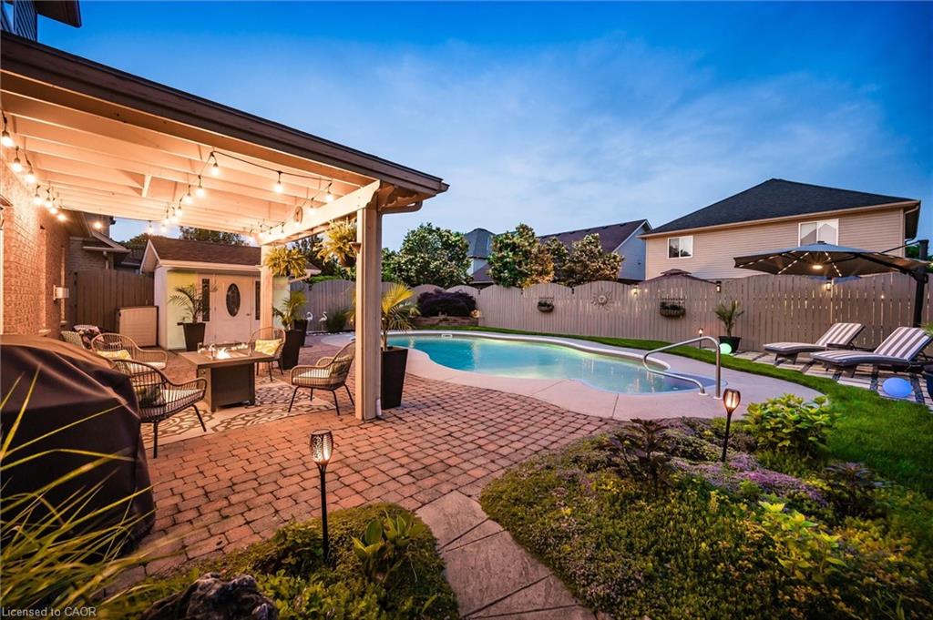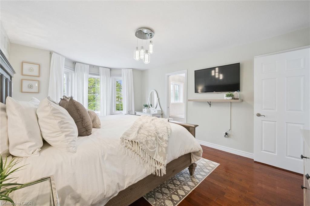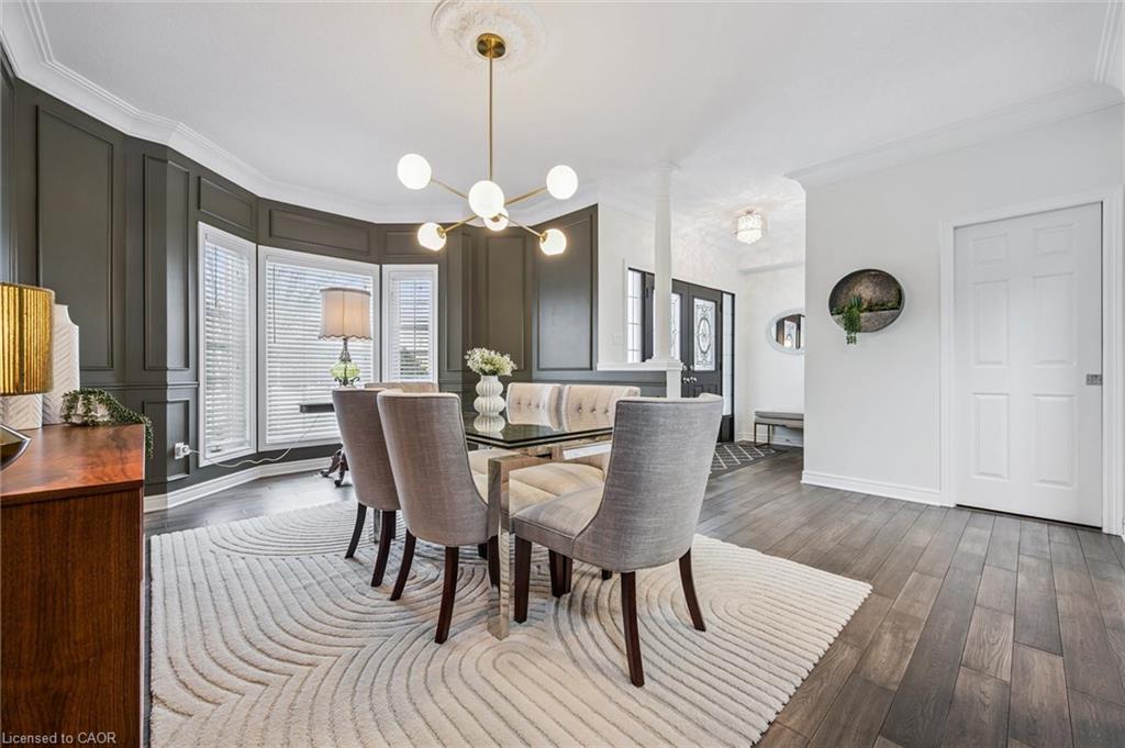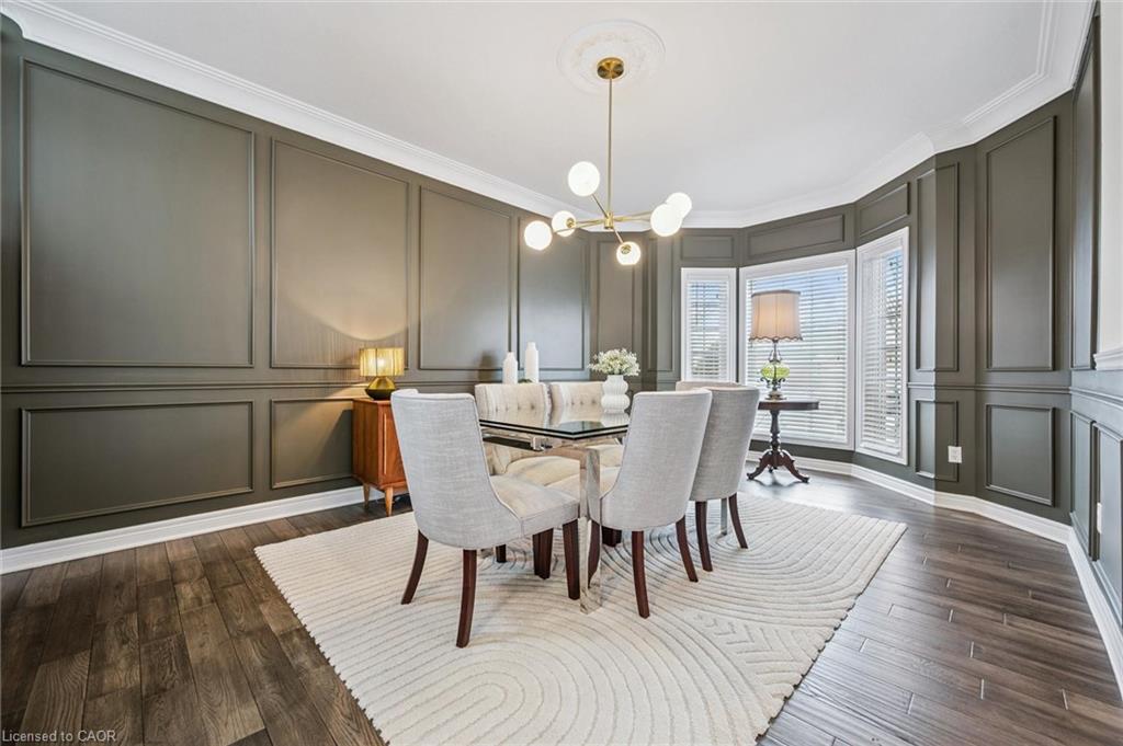 Stylishly Updated for Modern Living! Located in Guelphs sought-after south end, this beautifully upgraded home offers over 3,000 sqft of finished living space, including 3 bedrooms and 4 bathrooms perfect for todays busy family. With undeniable curb appeal, the home welcomes you with a charming covered porch and double-door entry into a bright, inviting foyer. The first floor boasts soaring 9-foot ceilings and hardwood floors, which continue throughout the second level. The formal dining room sets the tone for elegant entertaining, featuring full-height paneling, crown molding, and a striking contemporary chandelier.The heart of the home is the showstopping eat-in kitchen, complete with two-tone cabinetry, quartz countertops, stainless steel appliances, and a sunny breakfast area with walkout to the backyard. A cozy family room anchored by a gas fireplace and custom built-in bookshelves is the perfect space to unwind. Upstairs, rich hardwood flooring continues throughout, leading to the luxurious primary suite with a bay window, walk-in closet, and a spa-like 5-piece ensuite featuring a jetted Jacuzzi tub.The fully finished basement offers exceptional flexibility ideal for a home office, gym, playroom, or guest suite, complete with a full bathroom. Outside, the fully fenced yard is your private retreat, featuring an in-ground pool, mature landscaping, covered patio area, and an insulated pool house with hydro. Recent updates include a new pool liner, cover, heater, and equipment, as well as updated windows, furnace, AC, staircase, flooring, kitchen cabinetry, and much more! Located in a fantastic school district including St. Ignatius, Westminster Woods, St. Paul’s, Sir Issac Brock, and Bishop Mac. The house is near parks, amenities, and the 401, this home truly has it all.