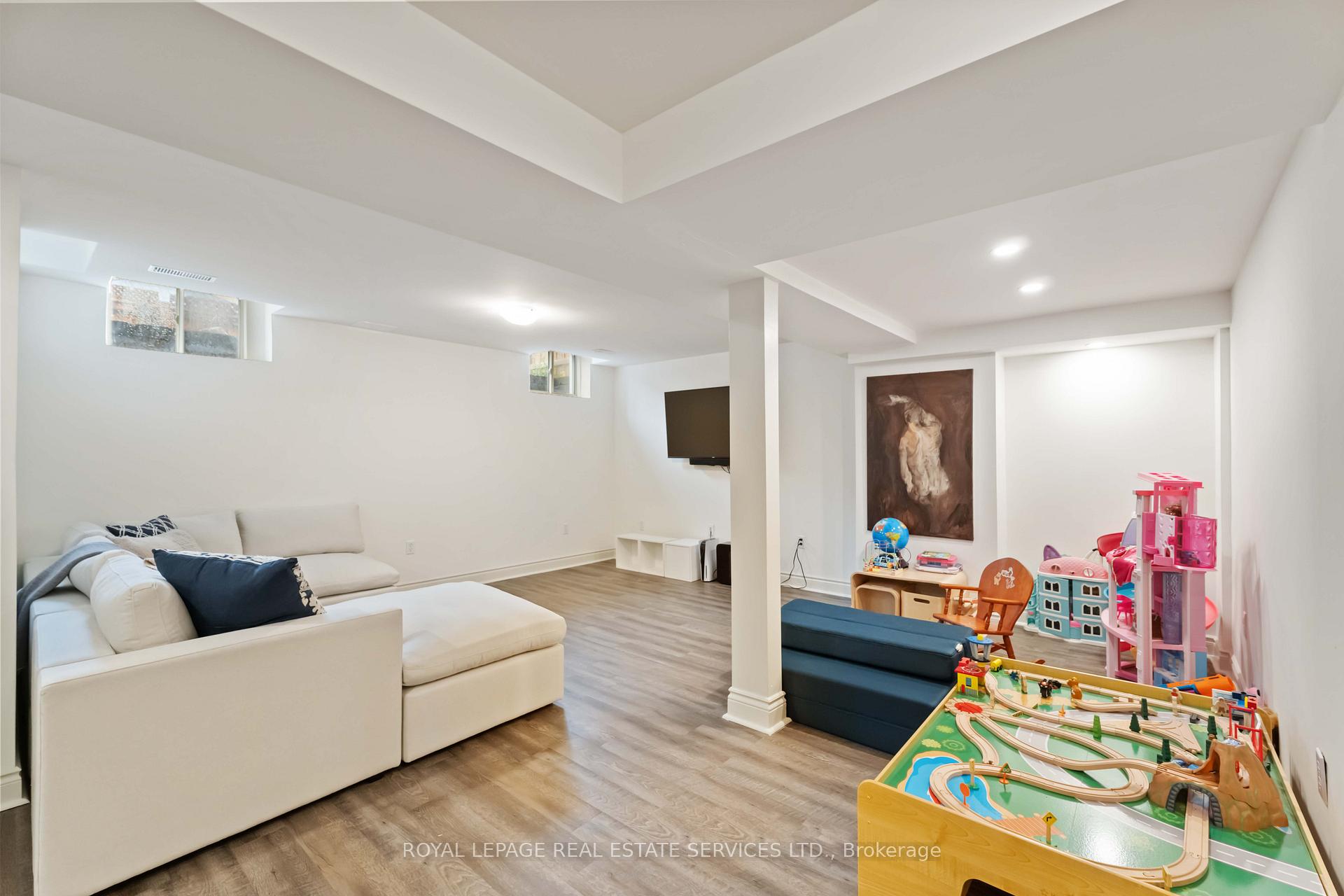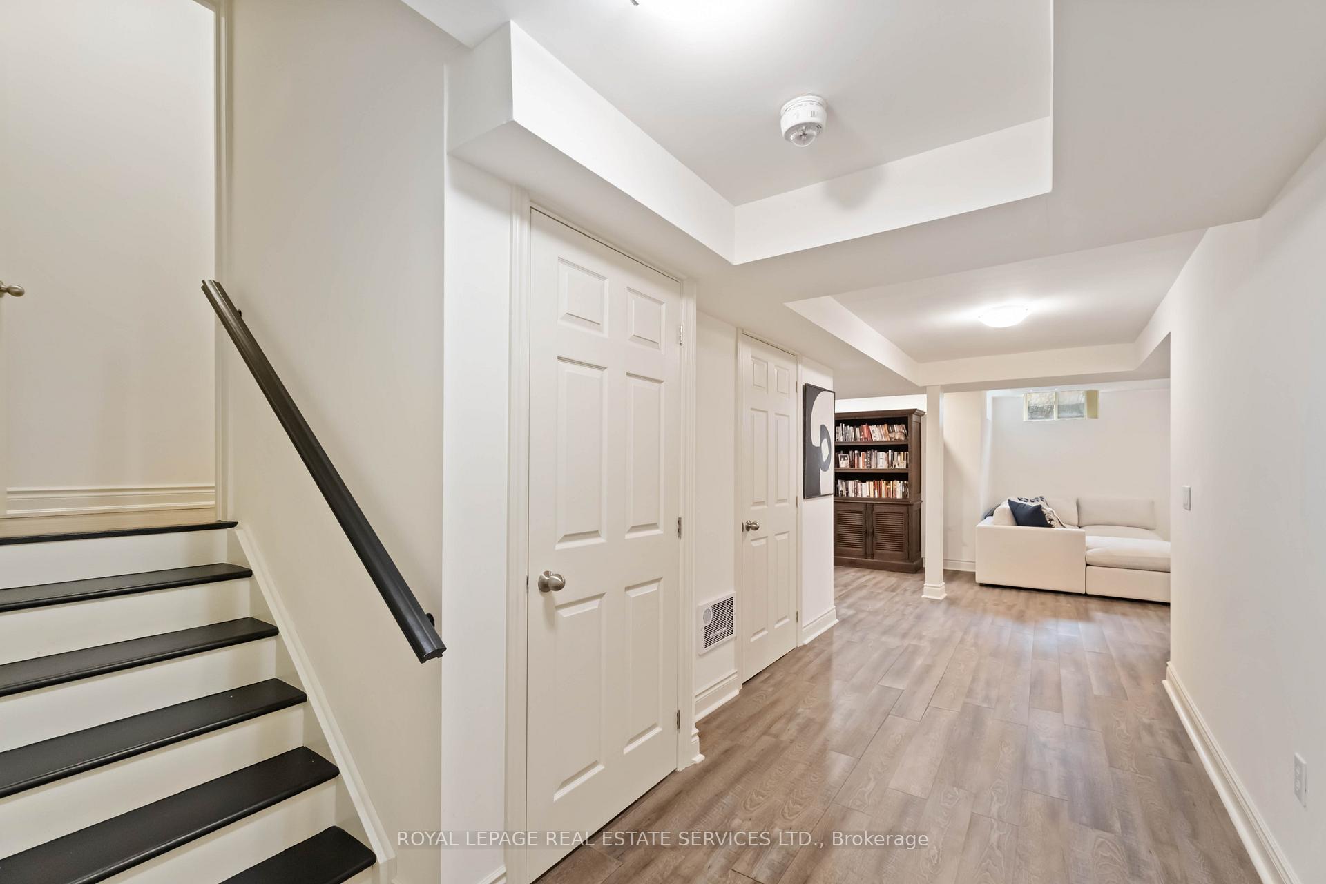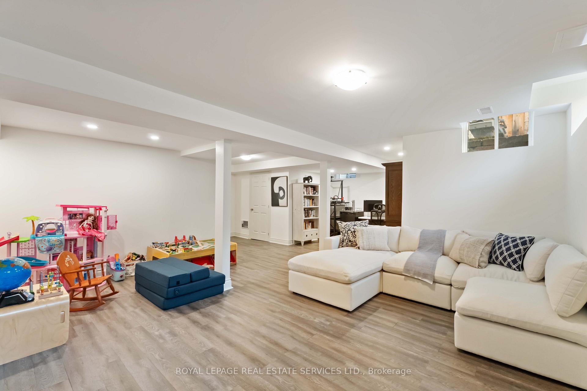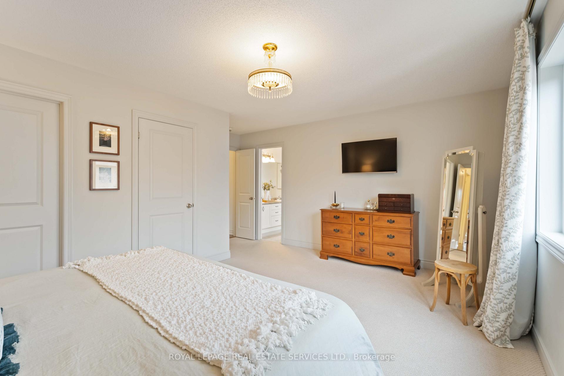 Welcome to 28 Babcock Street, an impeccably upgraded home in the quaint, highly sought-after community of Waterdown. This residence offers nearly 3,000 sq ft of total living space, featuring three large bedrooms & 2.5 bathrooms, and convenient second-floor laundry. Situated on a family friendly street, this property is truly exceptional, showcasing over $100,000 in quality upgrades. The interior boasts a sophisticated aesthetic, with the entire house repainted in elegant Farrow and Ball colours. Nine-foot ceilings and hardwood floors span the main level, which features a beautiful open-concept living room anchored by a cozy gas fireplace. The eat-in kitchen offers plentiful countertop space with marble-top designer island & ample storage, upgraded painted cabinets, granite countertops & stainless steel appliances. Key design elements include a striking black and white main stairwell and new designer lighting throughout. Light dimmers are installed in all main living areas for perfect ambiance. The basement has been fully finished to provide highly flexible space, featuring a large recreation room, and a versatile separate room – perfectly suited for an office, home gym, or playroom. Curb appeal abounds this professionally landscaped property with a front yard boasting a redesigned walkway using engineered & natural stones, and wrought iron railing. The backyard has been entirely transformed into a luxurious, highly functional outdoor entertaining area, highlighted by modern large interlock and an extensive sitting wall for relaxation and hosting. The location is unbeatable, offering a real community atmosphere and unparalleled convenience. It’s just a few minutes’ walk from Waterdown District High School and the YMCA, and within easy walking distance to multiple schools, trails, parks, shopping, and restaurants. This home truly ticks all the boxes for family-friendly living in a desirable Waterdown setting!