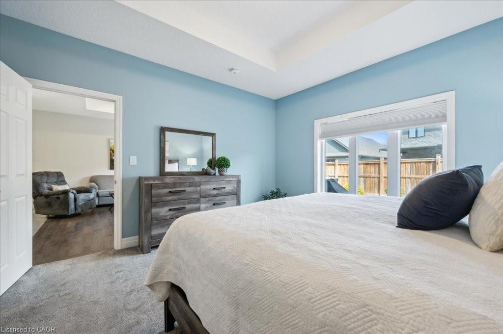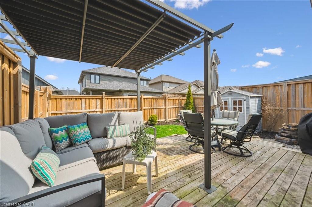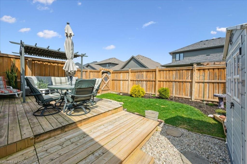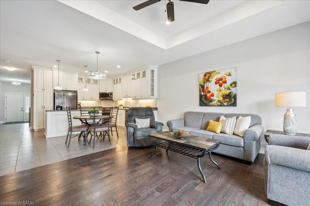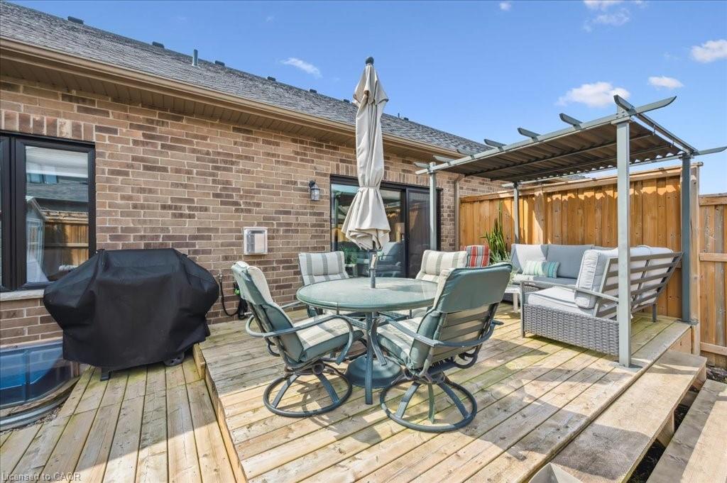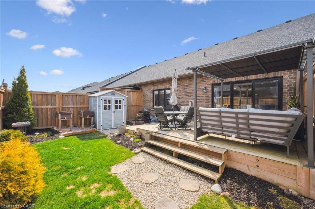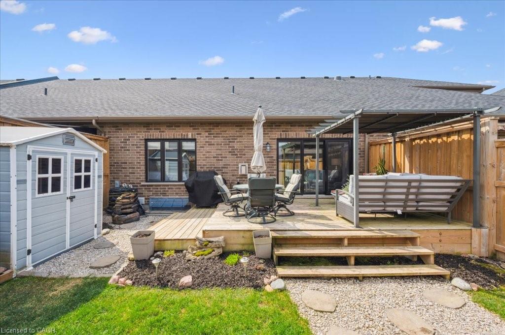 Welcome to 28 Bur Oak Drive – Bungalow townhouse with no condo fees! This lovely move-in ready townhouse offers a main floor primary bedroom, 2 car parking and is located close to shopping and amenities in Elmira. With 2,440 sq ft of total finished living space, this townhouse has 2+1 bedrooms and 3 bathrooms. Enter through the front foyer, past the front bedroom/den and the adjacent 4 piece bathroom and into the open concept kitchen and living room . The white kitchen has ample cupboard space, a large island and dinette, a great spot for your morning cup of coffee! The living room features a tray ceiling, hardwood floors and a gas fireplace. The primary bedroom has a tray ceiling, a walk-in closet and a 4 piece ensuite with shower and double sinks, no need to share your space! Also found on the main floor is the laundry room and access to the garage. Downstairs you will find an extra large rec room, an additional bedroom and a 3 piece bathroom. Have pets? This home has a pet washing station under the stairs! The backyard is a summer oasis! The fully fenced landscaped yard has a deck with pergola with built-in bench. This home is in a great location with easy access to shopping, HWY 85, and walking trails along the Lions Ring Trail.