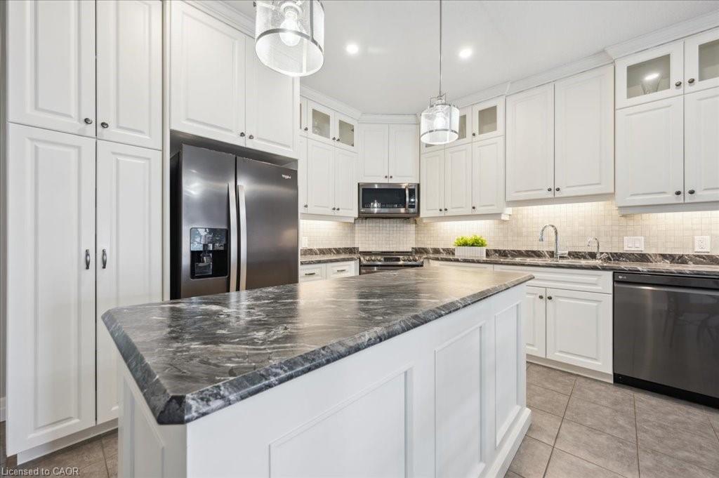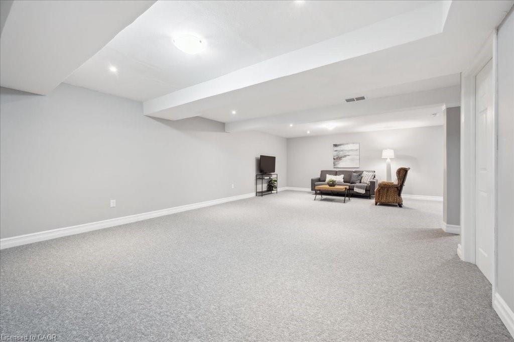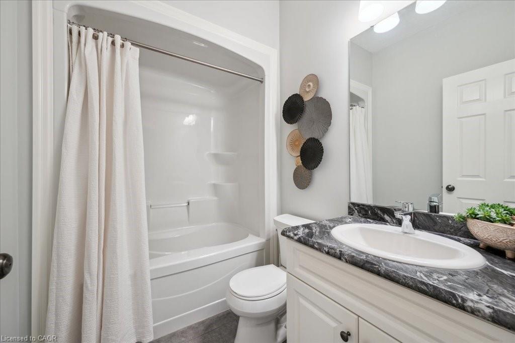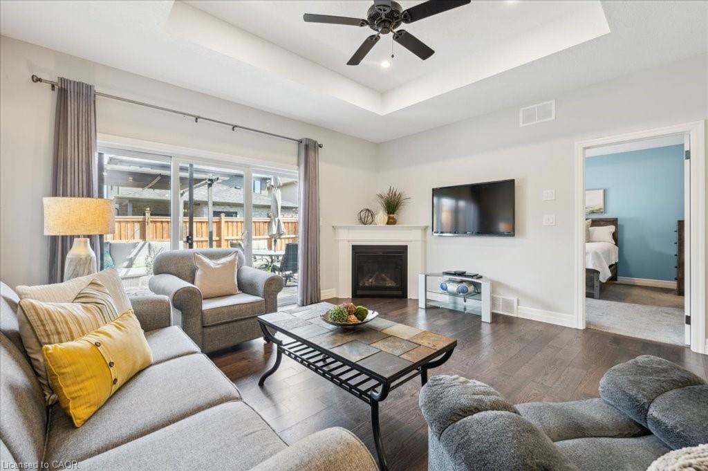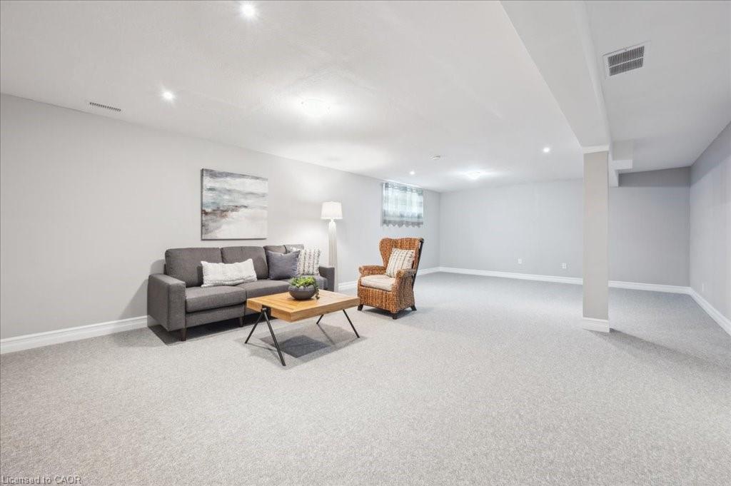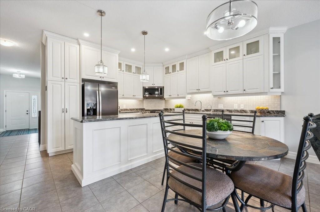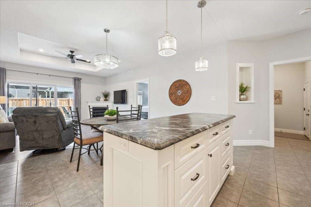 Welcome to 28 Bur Oak Drive – Bungalow townhouse with no condo fees! This lovely move-in ready townhouse offers a main floor primary bedroom, 2 car parking and is located close to shopping and amenities in Elmira. With 2,440 sq ft of total finished living space, this townhouse has 2+1 bedrooms and 3 bathrooms. Enter through the front foyer, past the front bedroom/den and the adjacent 4 piece bathroom and into the open concept kitchen and living room . The white kitchen has ample cupboard space, a large island and dinette, a great spot for your morning cup of coffee! The living room features a tray ceiling, hardwood floors and a gas fireplace. The primary bedroom has a tray ceiling, a walk-in closet and a 4 piece ensuite with shower and double sinks, no need to share your space! Also found on the main floor is the laundry room and access to the garage. Downstairs you will find an extra large rec room, an additional bedroom and a 3 piece bathroom. Have pets? This home has a pet washing station under the stairs! The backyard is a summer oasis! The fully fenced landscaped yard has a deck with pergola with built-in bench. This home is in a great location with easy access to shopping, HWY 85, and walking trails along the Lions Ring Trail.