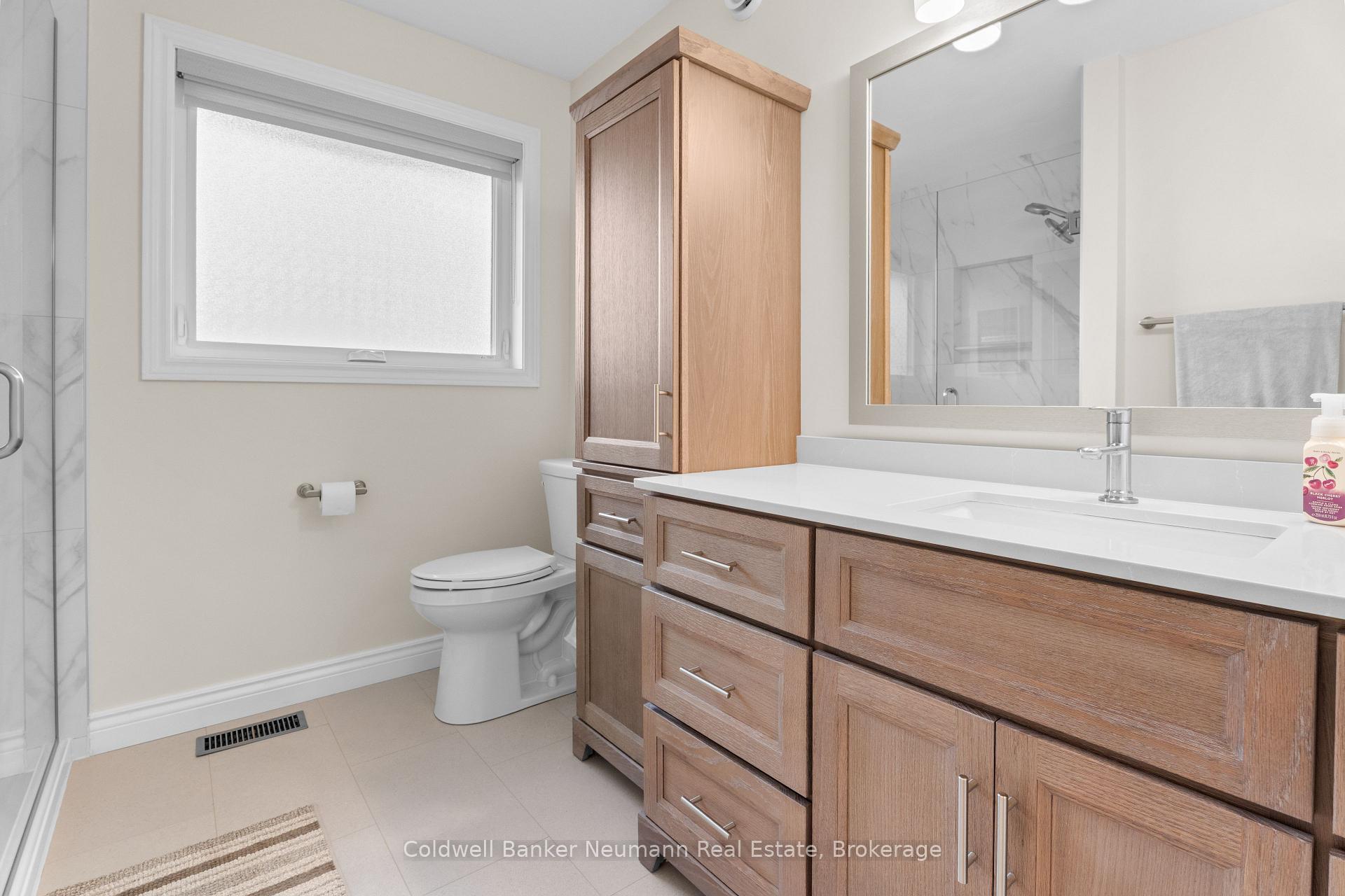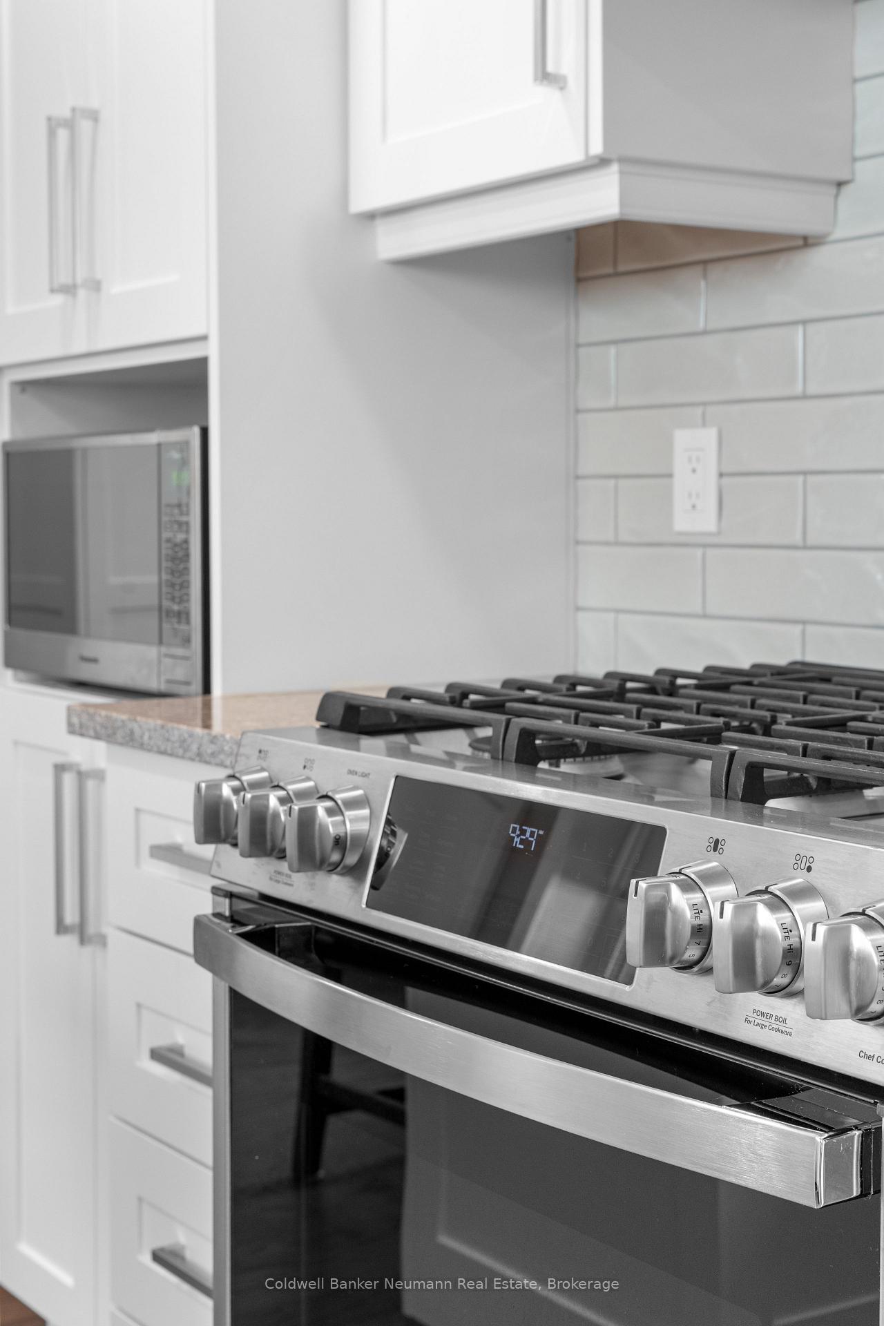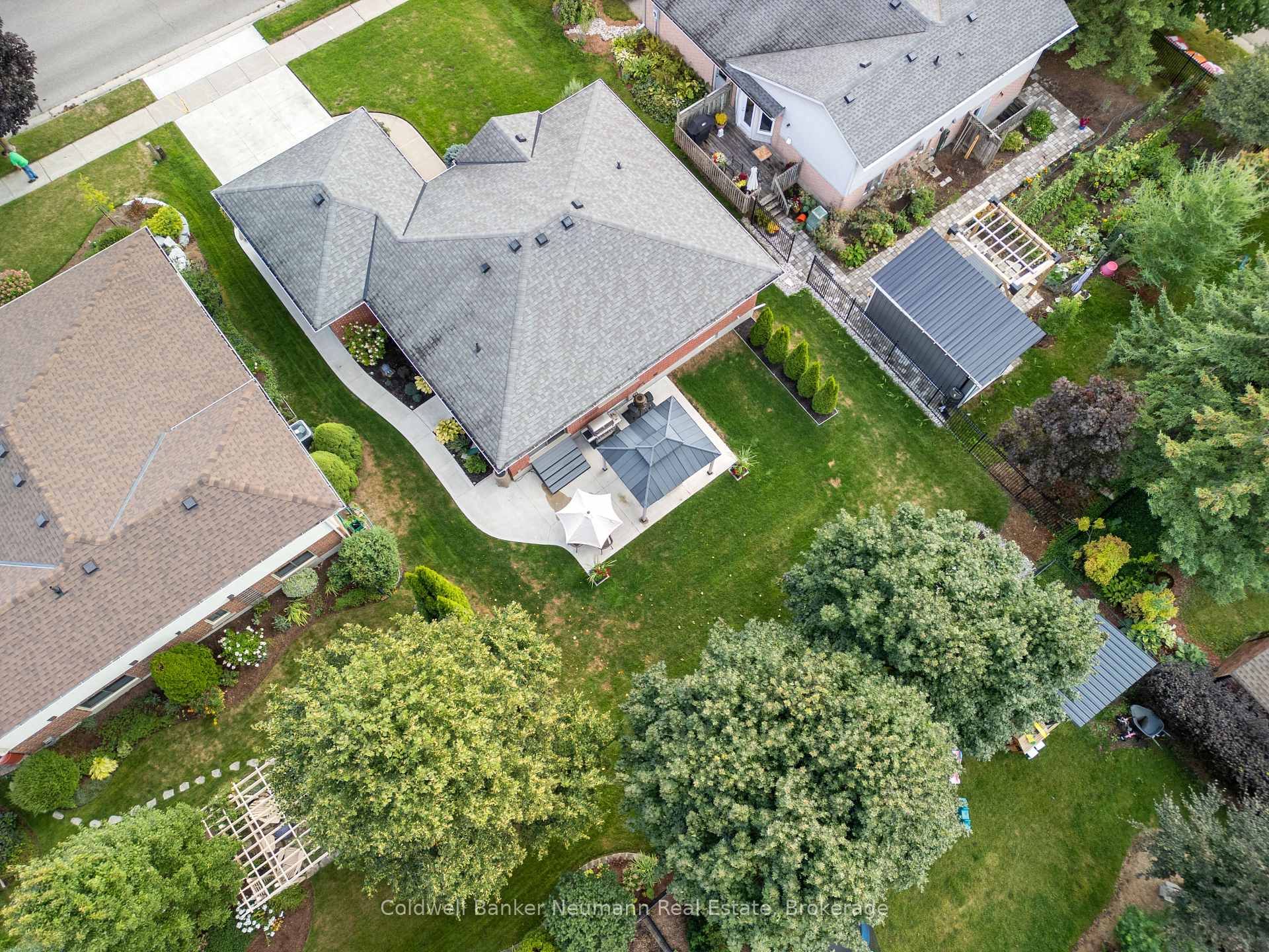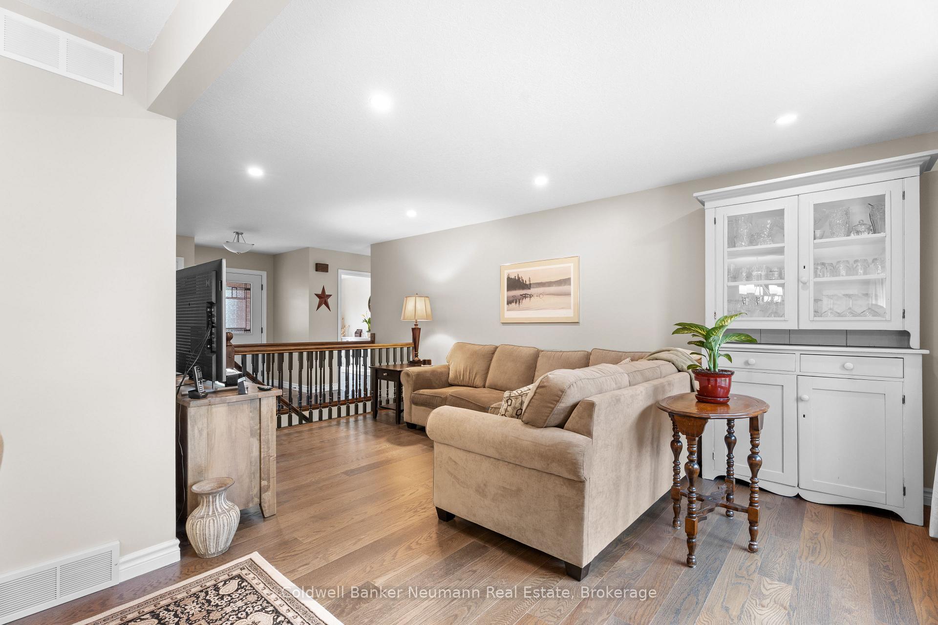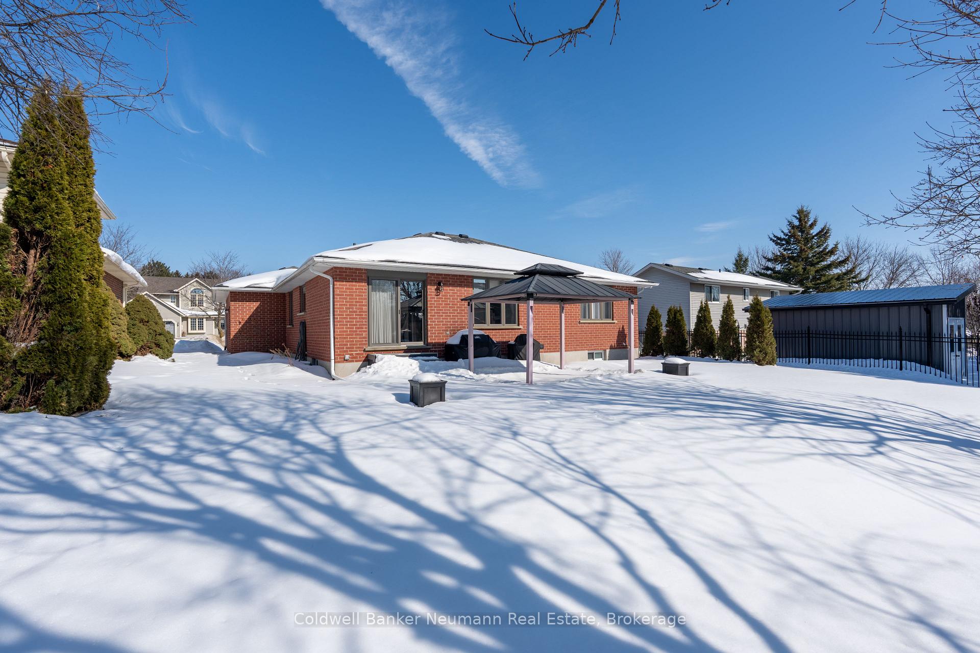 Stunning, solid red-brick Keating-built bungalow in a desirable, quiet area of Elora. Striking curb appeal, with modern contrasting exterior accents to welcome you. The inside offers the same modern, yet cozy feeling. The kitchen has been completely renovated, with Almost Anything Wood custom cabinetry, stainless steel appliances (featuring a dual fuel gas stove with electric oven), breakfast/eating bar, pantry cabinetry and subway tile backsplash. Tons of storage, and very airy and bright, with pot lighting. There is an adjacent dining room, with sliders to the rear patio, and is open to the modern living room. Gorgeous mid-tone hardwood floors throughout the living area. There is a spacious front room, which currently functions as an office/den/sitting room, with vaulted ceiling and hardwood flooring. There are two spacious main floor bedrooms, with newer carpeting. The main floor 3pc bathroom has been completely renovated and features a wood vanity with lighter quartz counter, new glass/tile shower with niche, and luxury vinyl tile flooring. Across from the main bath is a handy main floor laundry closet, with side by side machines and ample counter working space and storage. The basement features a huge rec room, and a newer 4pc bathroom with luxury vinyl plank flooring, quartz counters, white vanity, and modern black fixtures. There is a large unfinished storage room, which could easily accommodate another bedroom, as well as a spacious, unfinished utility room. New window coverings throughout and mechanically so sound! The backyard offers a wonderful entertainment space, with concrete patio and gazebo for coverage from the summer mid-day sun! This area is fabulous and sought after by both families (young and old), as well as empty nesters, retirees, seniors. Explore the vibrant, tight-knit and charming lifestyle that Elora has to offer – it’s no wonder that people stay!