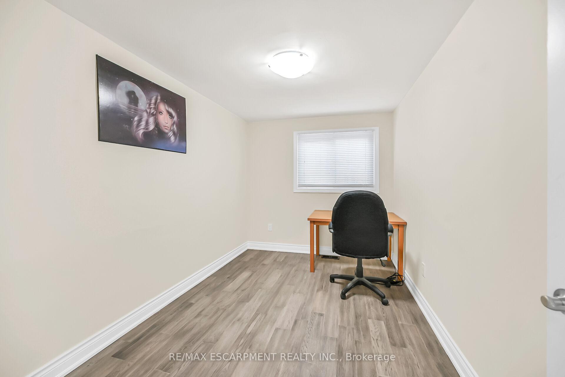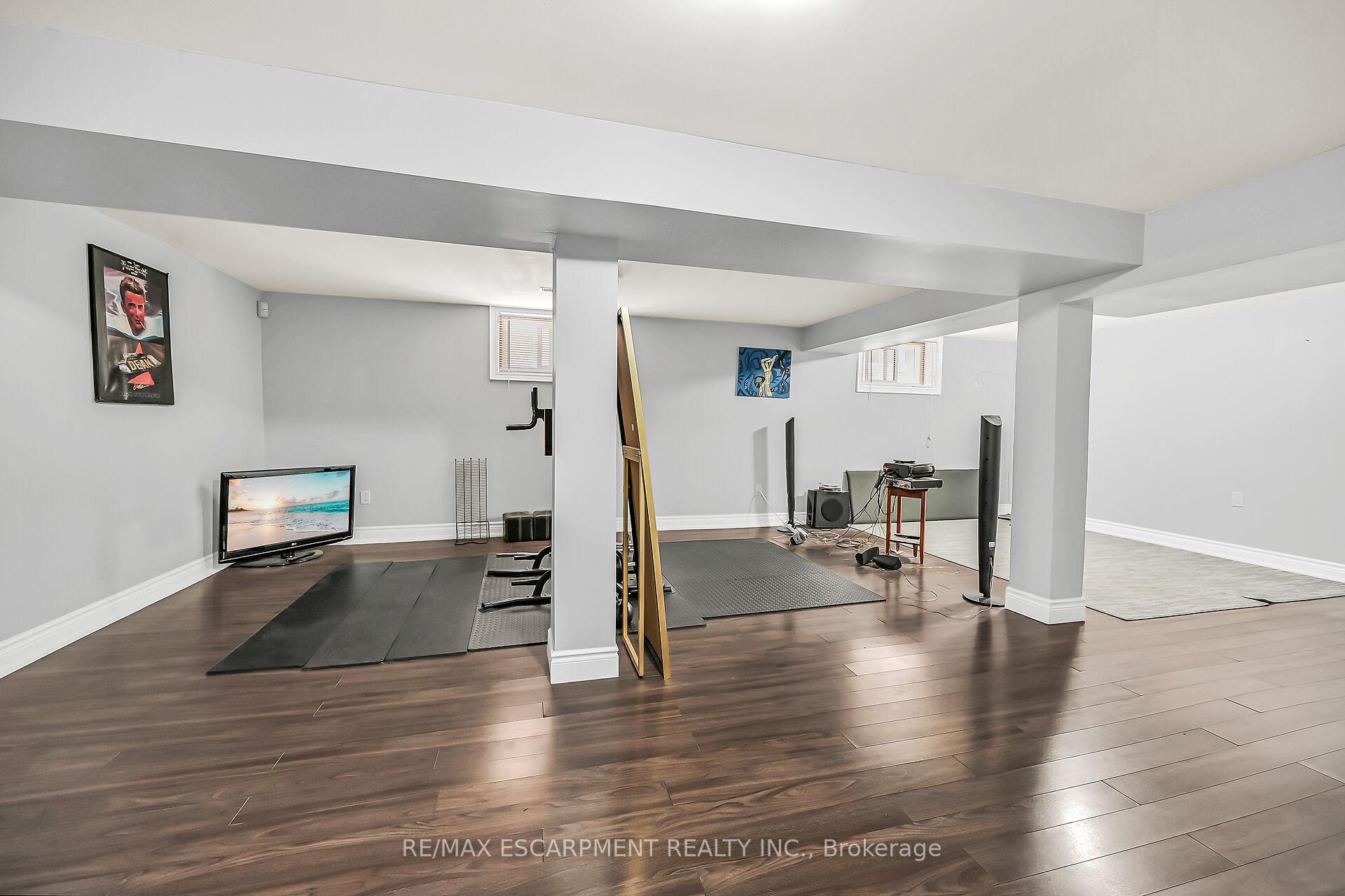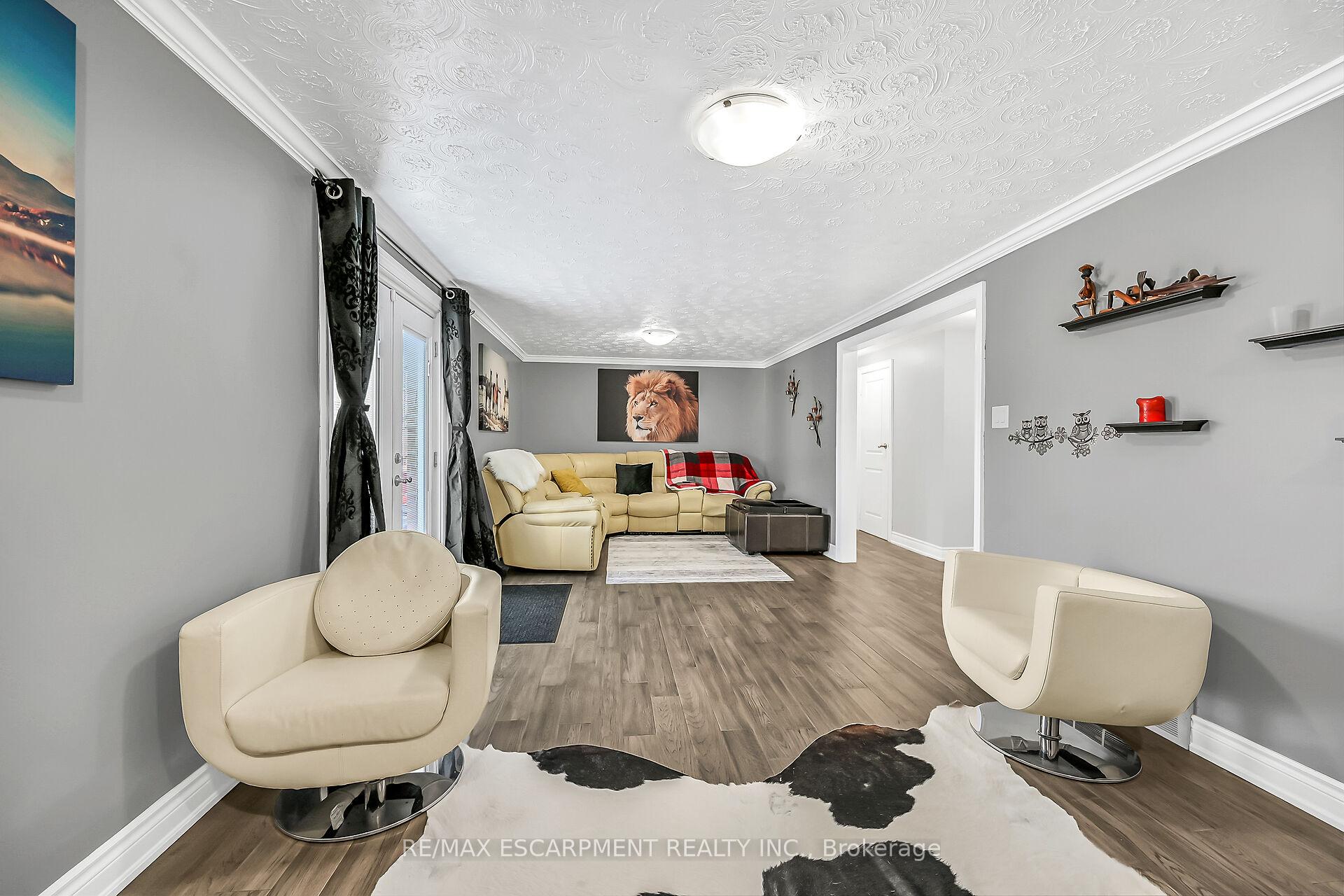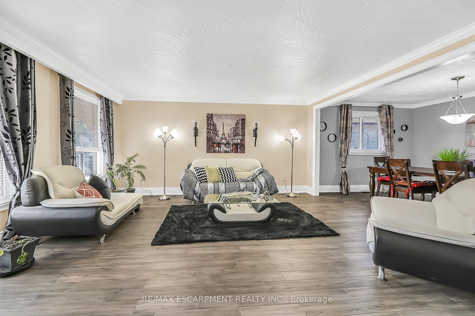 This spacious 4 level back-split has been renovated inside and out with quality finishes and attention to detail. Bright, open-concept main level with hardwood floors, spacious living/dining room, and custom kitchen with quartz counters, backsplash, and stainless steel appliances including gas stove. The upper level offers 3 bedrooms and a stunning 5-pc bath. Lower level features a family room with walkout to yard, side door entrance, bedroom, and 3-pc bath. The finished basement includes a rec room, laundry, cold room, and storage. Updated furnace, AC, roof, windows & electrical. The exterior boasts exposed aggregate driveway, walkways, porch with glass railings, fenced yard, and large shed with hydro. Located in a quiet cul-de-sac location with escarpment views, close to parks, trails, schools, and easy Red Hill/highway access.