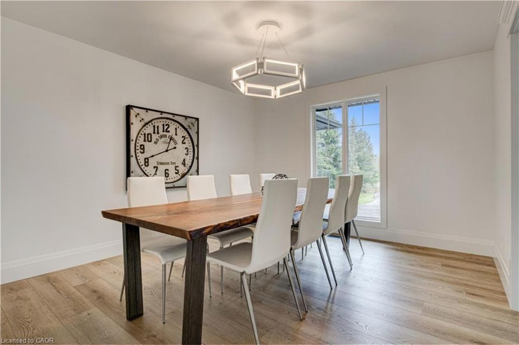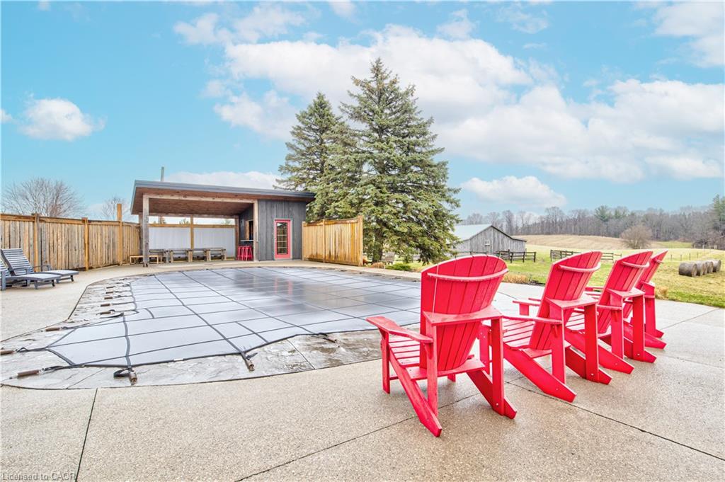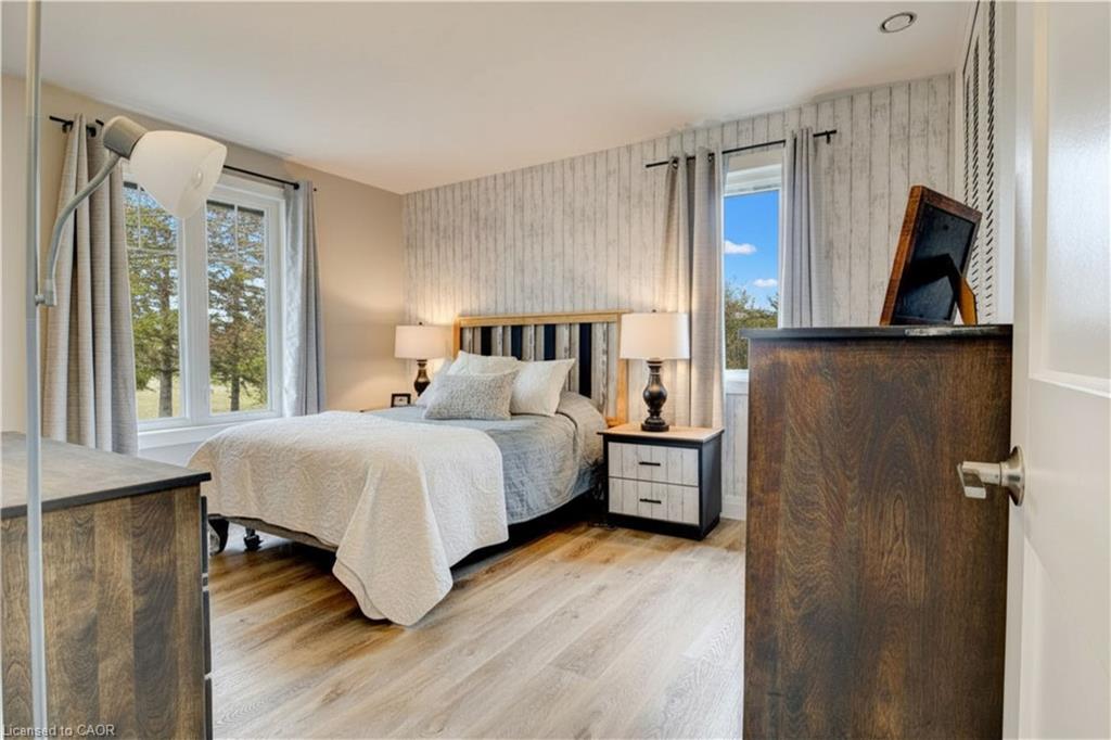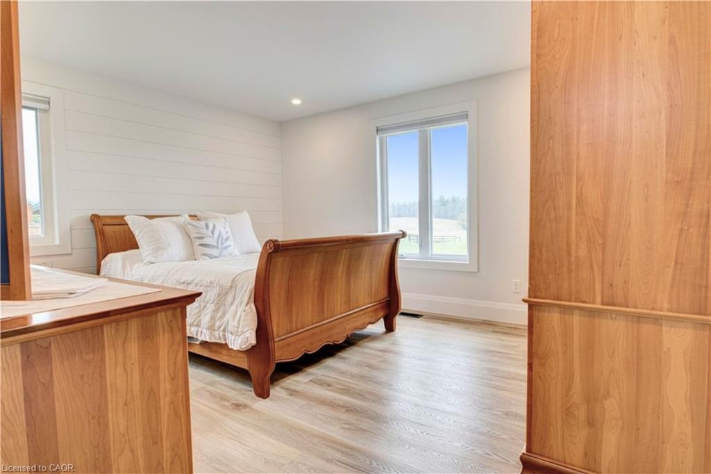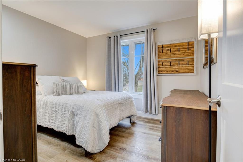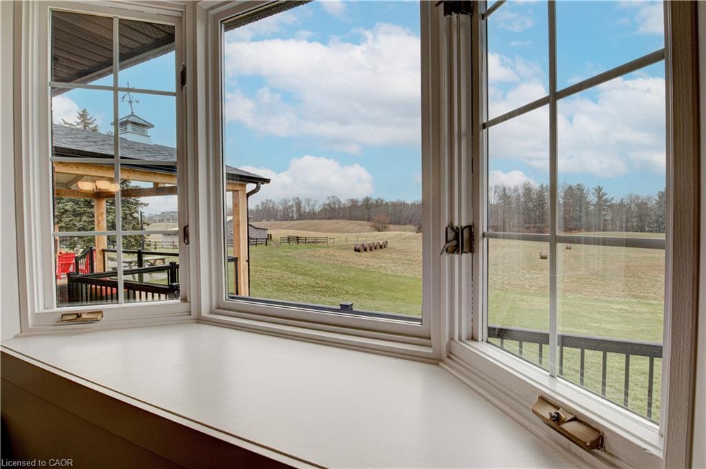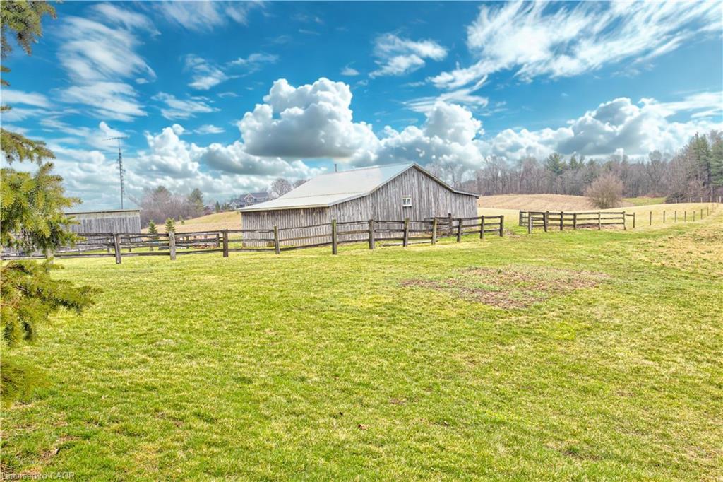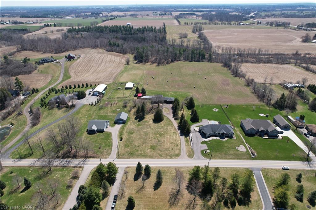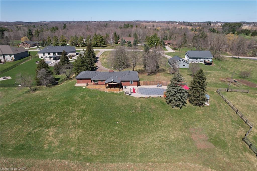 Set back from the road with a circular driveway offering parking for 20+, this renovated all-brick bungalow sits on 16 acres of scenic countryside. With 5 bedrooms and 3 bathrooms, including a private ensuite, the home offers space for the whole family. The main floor features wide plank luxury vinyl flooring, new oversized windows, new doors, and a bright, functional layout. Enjoy a spacious living room, a separate dining area, and a large dine-in kitchen with updated countertops and backsplash. A mudroom off the double garage includes a powder room and refreshed laundry space for everyday convenience. The beamed ceiling family room with a gas fireplace opens to a new covered deck, an ideal spot to take in panoramic views stretching across open fields to the forest edge. Downstairs, the partially finished basement includes a fifth bedroom and plenty of space for future development, along with ample storage. Outside, the fully updated inground pool (liner, pump, filter, heater, and safety cover) is ready for summer, complemented by a bar cabana. The barn offers three horse stalls and a grazing area, currently used for storage. Rarely found in a rural setting, this property features municipal water and gas heating, with easy access to St. George, Cambridge, Paris, and Brantford. With potential for land severance at the front, this is a unique opportunity to enjoy peaceful country living with added flexibility for the future. A home like this doesn’t come along often.