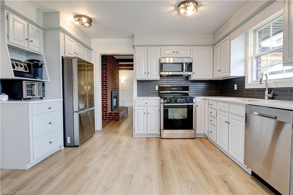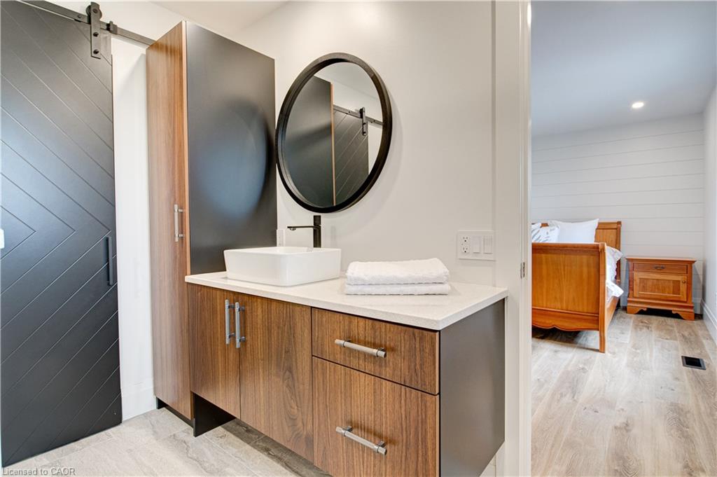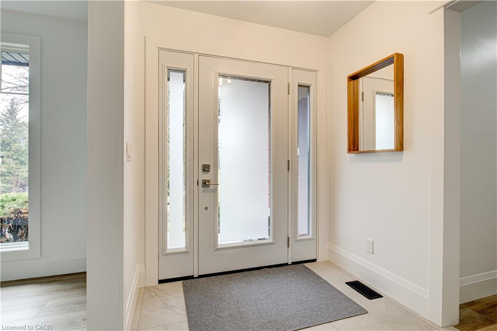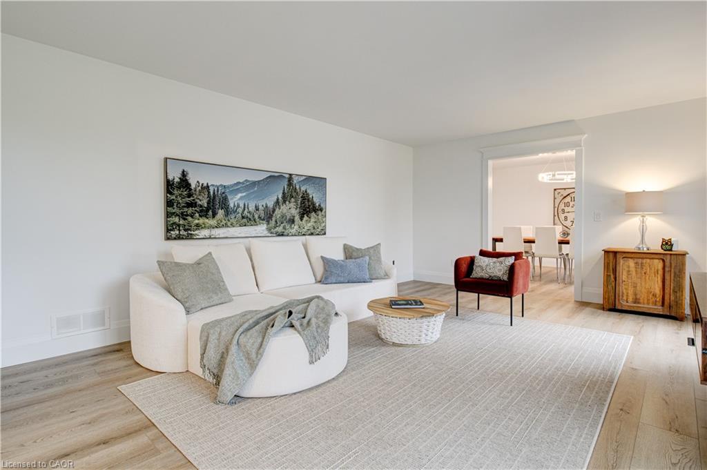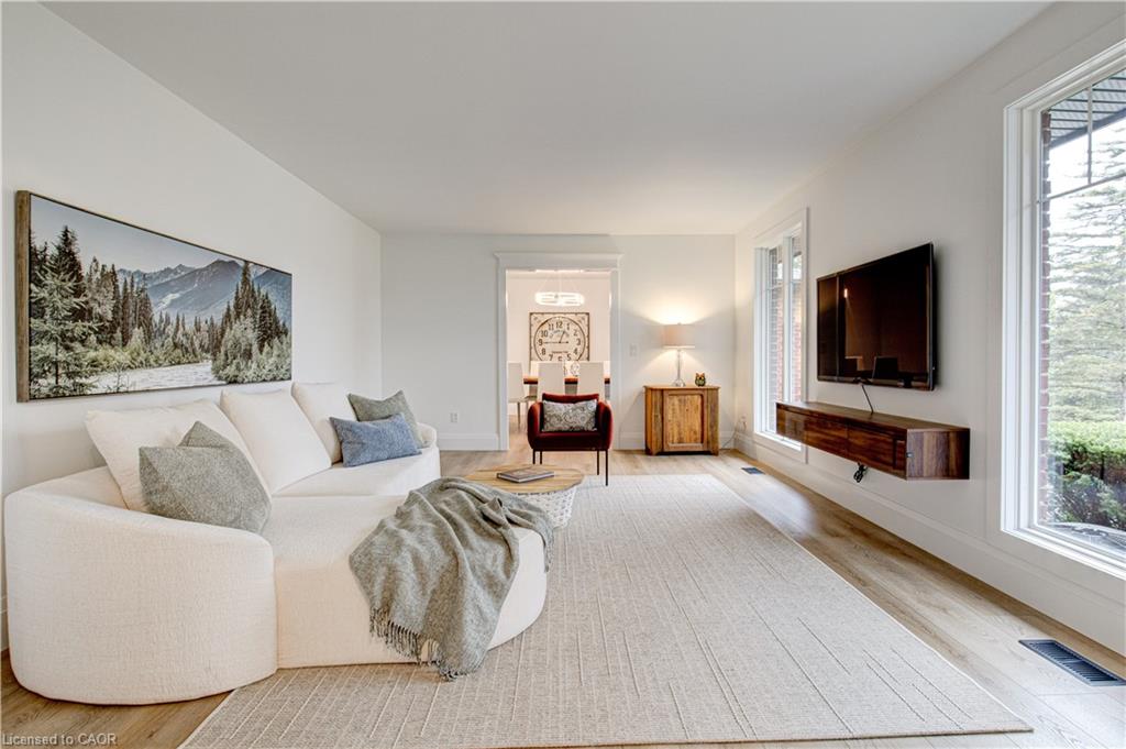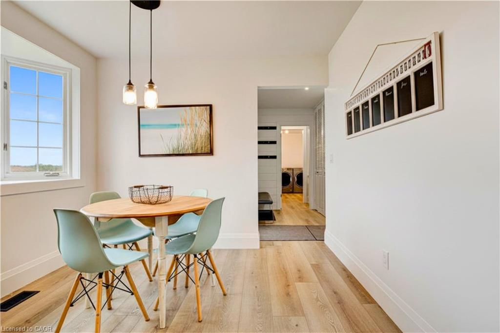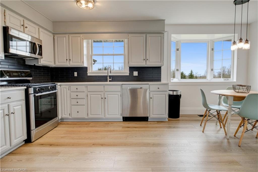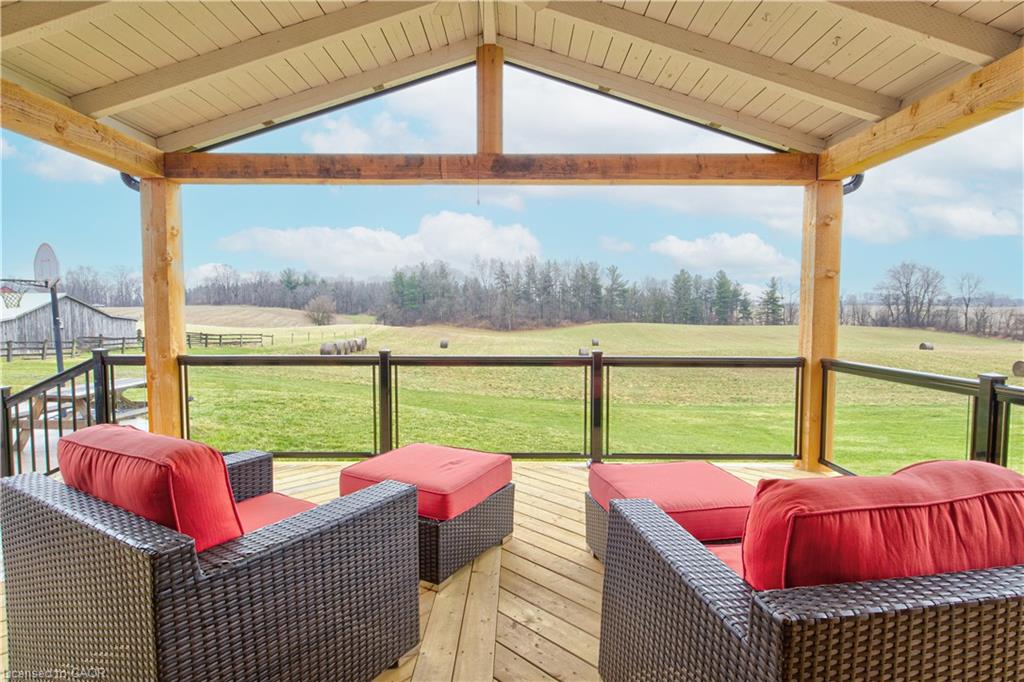 Set back from the road with a circular driveway offering parking for 20+, this renovated all-brick bungalow sits on 16 acres of scenic countryside. With 5 bedrooms and 3 bathrooms, including a private ensuite, the home offers space for the whole family. The main floor features wide plank luxury vinyl flooring, new oversized windows, new doors, and a bright, functional layout. Enjoy a spacious living room, a separate dining area, and a large dine-in kitchen with updated countertops and backsplash. A mudroom off the double garage includes a powder room and refreshed laundry space for everyday convenience. The beamed ceiling family room with a gas fireplace opens to a new covered deck, an ideal spot to take in panoramic views stretching across open fields to the forest edge. Downstairs, the partially finished basement includes a fifth bedroom and plenty of space for future development, along with ample storage. Outside, the fully updated inground pool (liner, pump, filter, heater, and safety cover) is ready for summer, complemented by a bar cabana. The barn offers three horse stalls and a grazing area, currently used for storage. Rarely found in a rural setting, this property features municipal water and gas heating, with easy access to St. George, Cambridge, Paris, and Brantford. With potential for land severance at the front, this is a unique opportunity to enjoy peaceful country living with added flexibility for the future. A home like this doesn’t come along often.