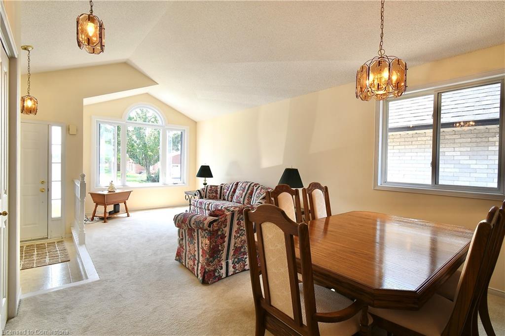 Living/Dining room with cathedral ceiling, giving this Home a bright and open feeling. Downstairs