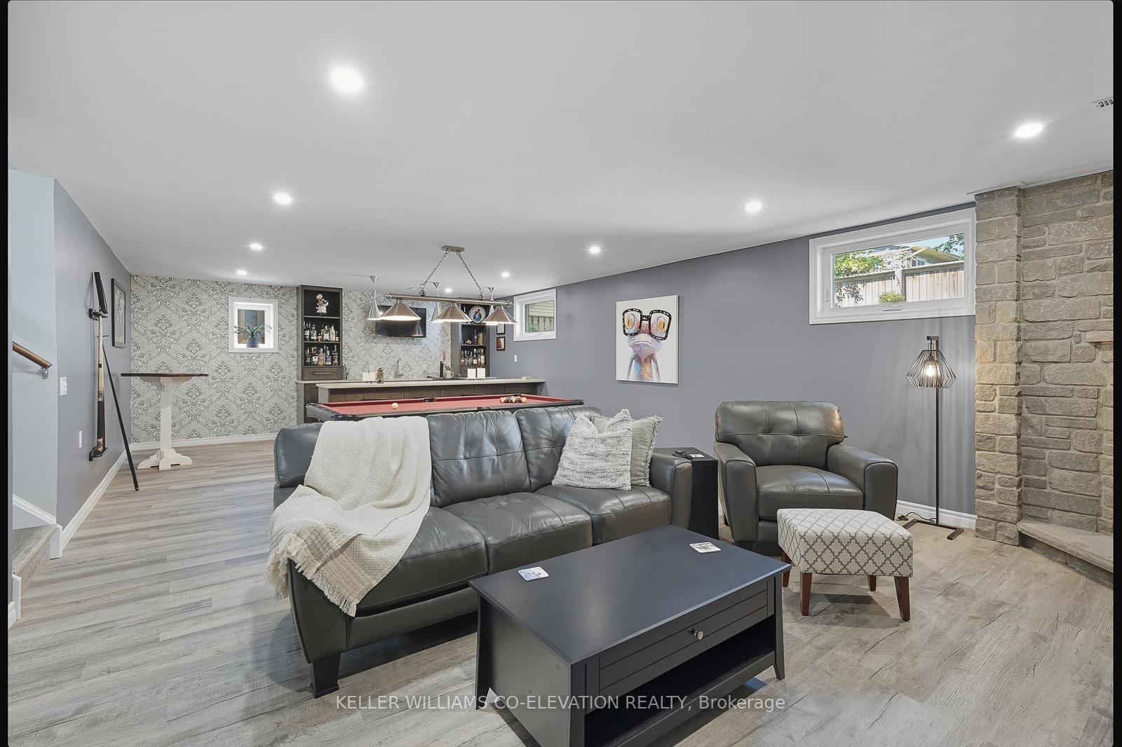 The Ultimate Entertainers Haven — Step into 286 Tagge Cres and discover a home designed for gatherings, celebrations, and everyday living. This spacious 3+ bedroom, 3 bath,4 level back split spanning 2,470 sq. ft. has been impeccably maintained and thoughtfully updated with brand-new flooring throughout for a seamless living experience. The gourmet kitchen boasts granite counters, custom cabinetry and stainless appliances, and has a walkout to the private backyard, making it as functional as it is stylish. Upstairs, you’ll find 3 generous sized bedrooms with big windows & large closets and two full baths providing ample space for the whole family to get ready for their day. But the showpiece of this home is the massive family room complete with custom bar, wine fridge & Kegerator, bar seating for four, cozy gas fireplace, pot lights, and a new pool table — all set up so you never miss a moment of the big game or a night of fun with friends or family. Nestled on a quiet crescent in Bridgeport, just steps to the Grand River and walking trails, this home pairs modern amenities with a warm, welcoming neighbourhood. Whether you’re hosting a crowd or relaxing with family, this property delivers it all.