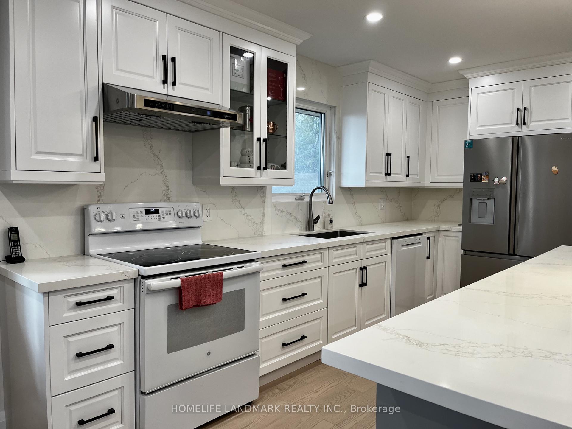 Welcome to 288 Cedar Crescent in West Galt. It has been beautifully updated in 2024 and set on a peaceful pie-shaped lot with no rear neighbours. This home now features a fully open-concept main floor with new engineered hardwood throughout the main and upper level, creating a bright and seamless flow. The brand-new kitchen offers quartz countertops, modern cabinetry, a new fridge, dishwasher, and range hood (2024), and overlooks the spacious living and dining areas. An electric fireplace adds a warm focal point to the living room.The upper level includes three bedrooms and a newly renovated 4-piece bathroom with a new bathtub (2024). Downstairs, there is a generous family room which can double as a workspace with lots of natural light. The basement now includes a new 3-piece bathroom (2024) along with a refreshed rec room. The basement also includes plentiful storage, a cold cellar, and a utility/laundry room with a new washer and dryer (2024).Outside, the fully fenced yard offers mature trees, a patio area, and access to a detached rear garage-a great workshop or storage option. Completely updated and move-in ready. Basement rec room renovated with new laminate flooring and trim (2025)