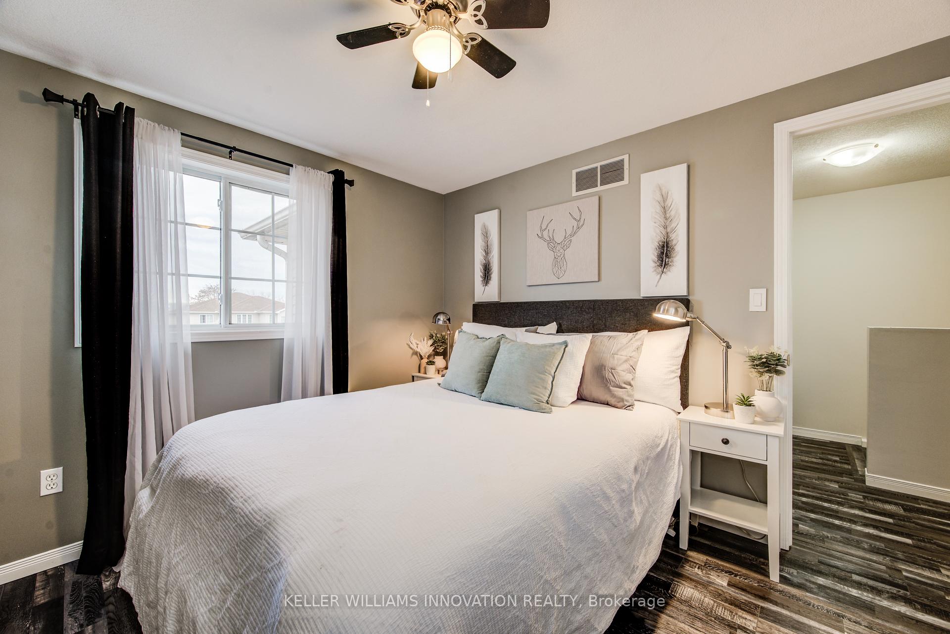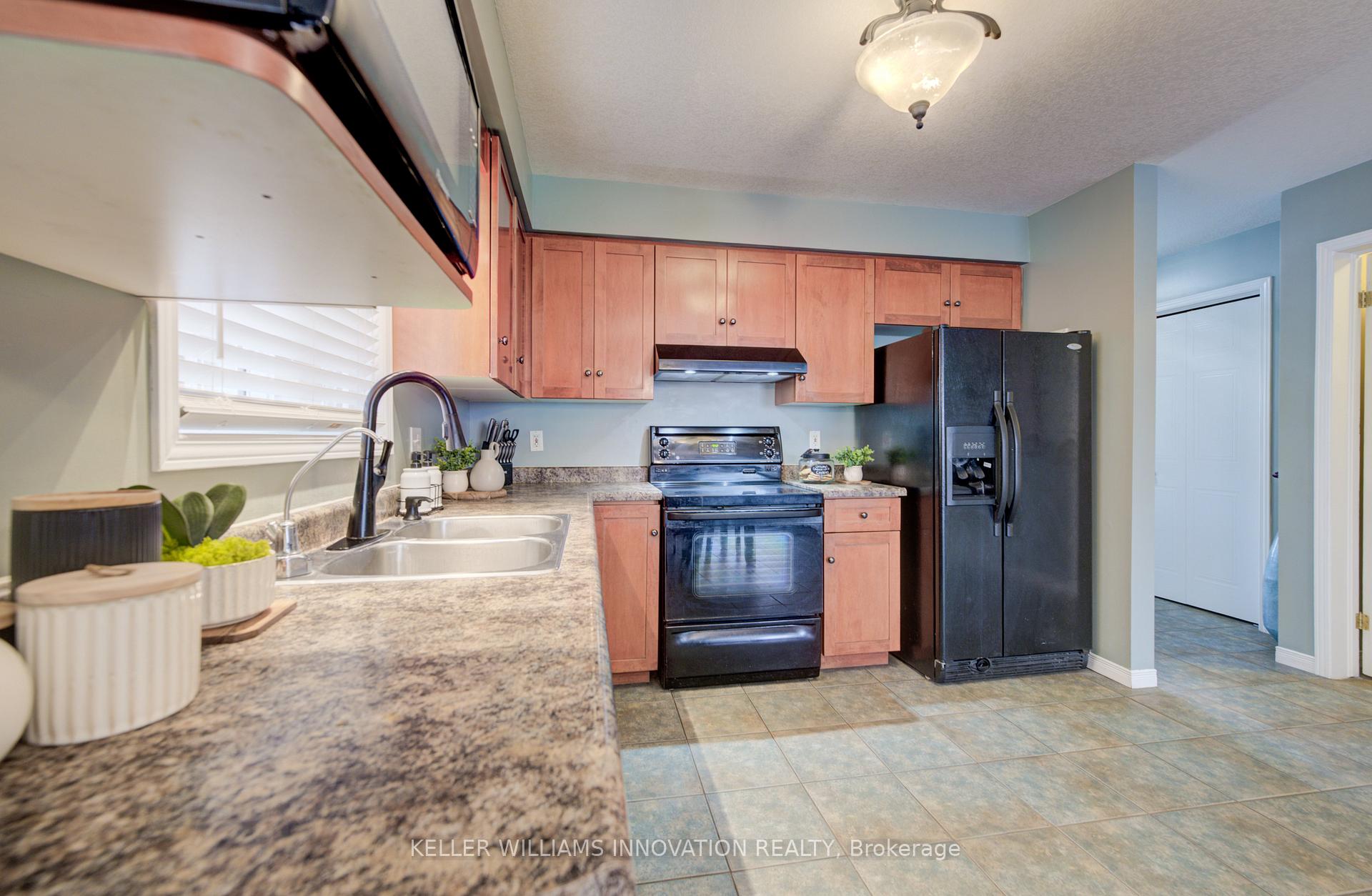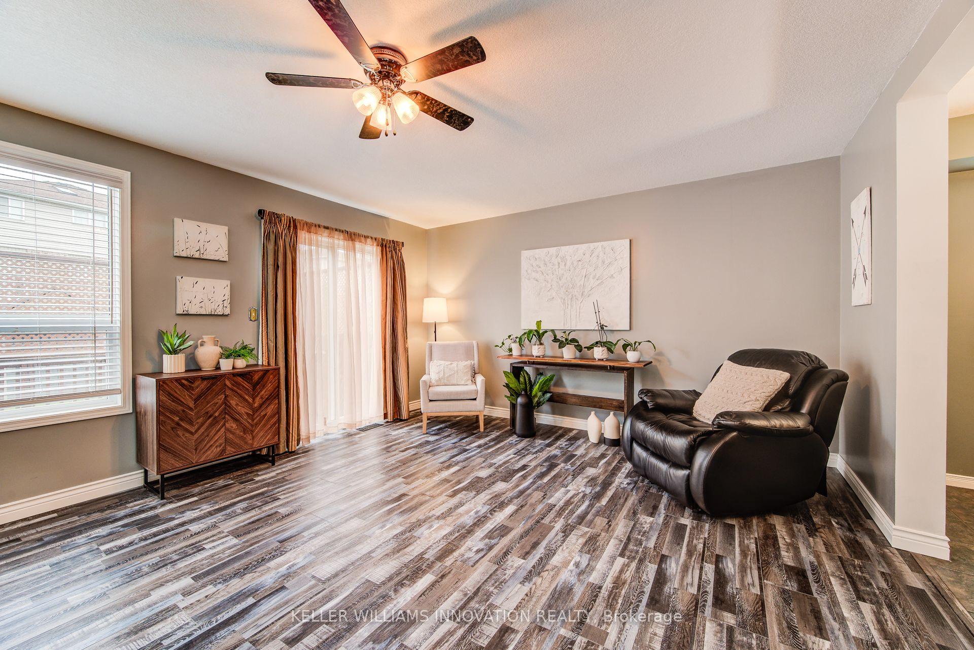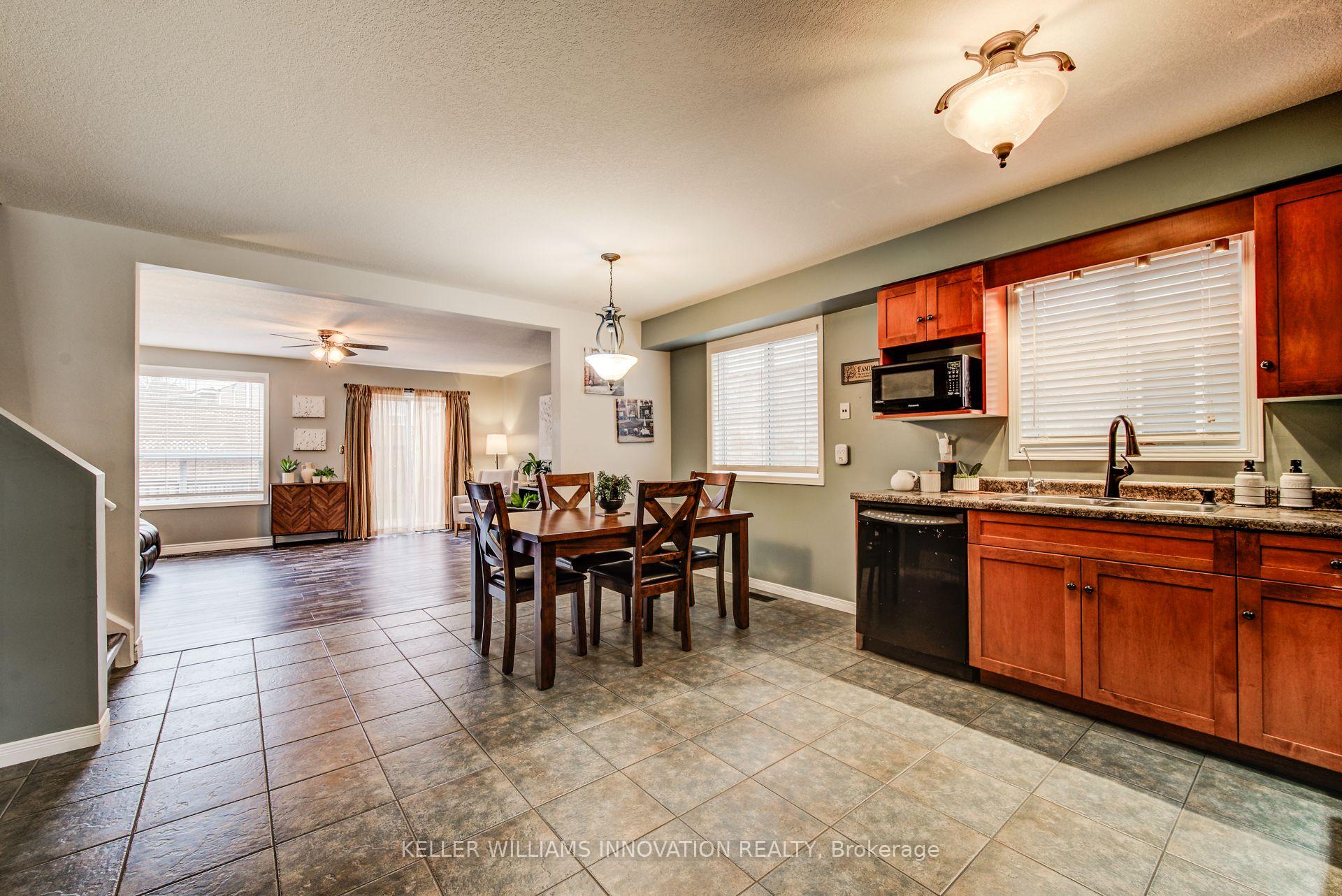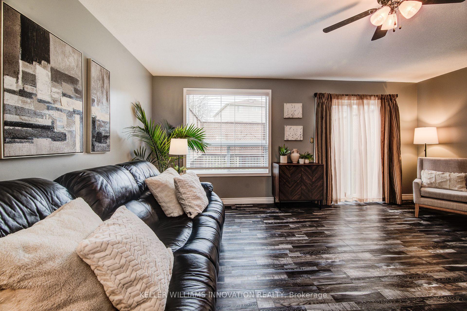 Nearly 1,900 sq ft of finished living space. Oversized garage. Finished basement. Move-in ready.Located in one of Cambridge’s most desirable family-friendly neighbourhoods, this spacious 3-bedroom, 2.5-bath freehold townhome delivers the space, functionality, and location today’s buyers want.The main level features a bright, open-concept layout with a sun-filled living and dining area, eat-in kitchen, and walkout to a fully fenced private backyard. Upstairs, the large primary bedroom offers a full ensuite and walk-in closet, along with two additional bedrooms and a second full bath.The fully finished basement provides extra space for a rec room, office, or home gym. Parking for four cars including an oversized garage with inside access, perfect for your car, tools, or toys.Enjoy abundant natural light thanks to the east-west exposure. All of this within walking distance to schools, restaurants, shopping, trails, and the upcoming recreation complex, with quick access to Highway 401 and public transit.Perfect for first-time buyers, families, or investors. A well-maintained home with serious value in a prime location.
