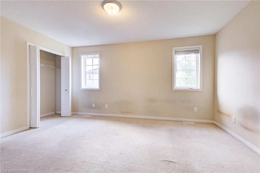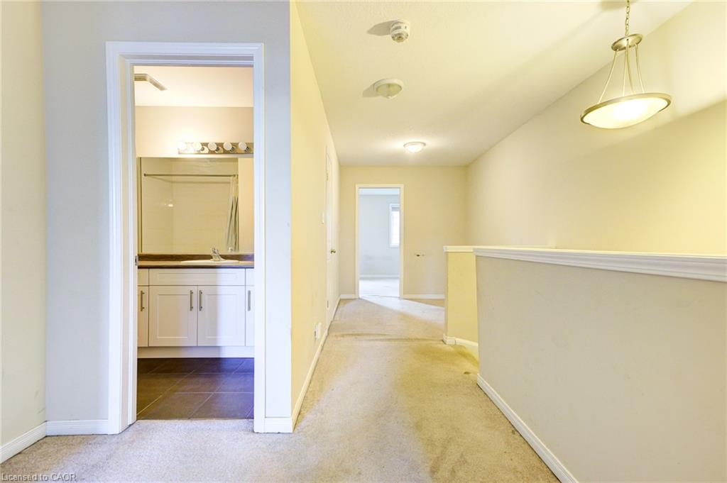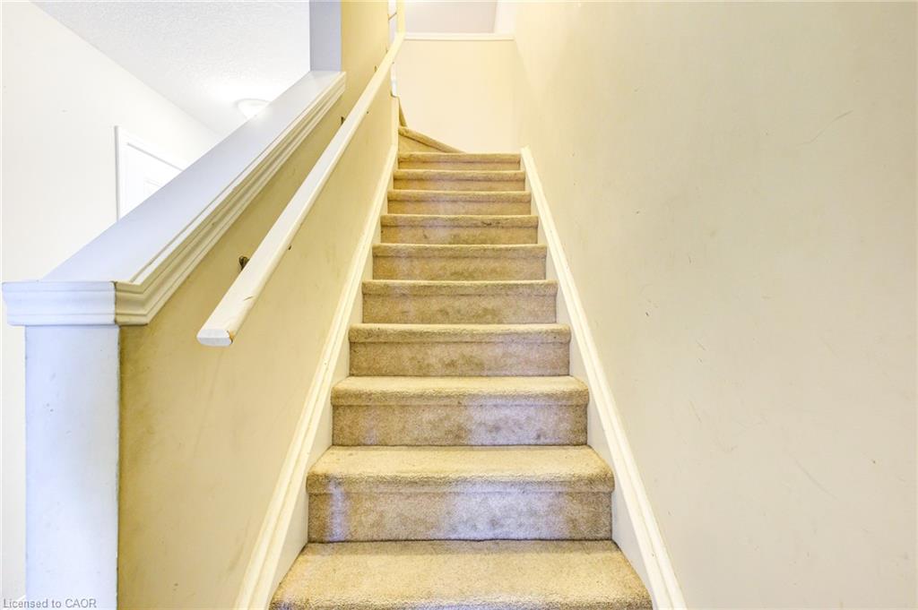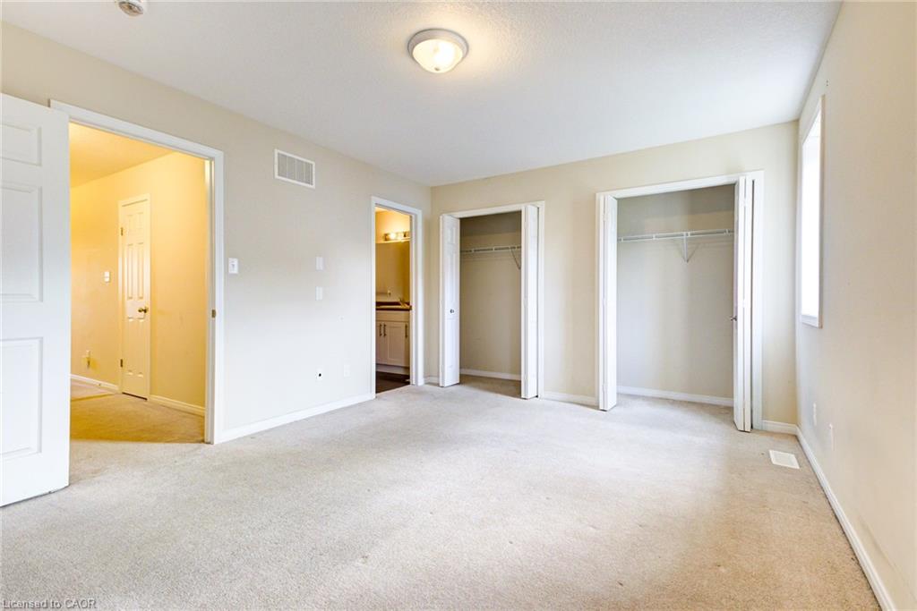 The main floor welcomes you with a bright, open-concept layout that seamlessly connects the spacious kitchen, dining area, and cozy living room. At the back of the home, large sliding glass doors lead to a private backyard oasis, complete with a patio—ideal for morning coffees or weekend entertaining. The kitchen is a chef’s delight, featuring abundant cabinetry & a generous island. Enjoy added convenience with a 2-piece powder room and direct garage access—including a rare feature of walk-through access from the garage to the backyard. Upstairs, you’ll find a generous primary suite with his and hers closets and a spacious 4-piece ensuite. Two additional bright and roomy bedrooms, a second 4-piece bathroom, and a large upper landing perfect for a home office or reading nook round out the second level. The unfinished basement offers endless potential for a future recreation room, home gym, or additional living space—ready for your personal touch. Located in the vibrant Grand River South community, this home is just steps away from scenic walking trails, the Grand River (perfect for canoeing), Chicopee Ski Hill, major highways (401 & 7), a nearby bus stop, and highly rated schools. Whether you’re a growing family, first-time buyer, or someone looking to enjoy a carefree lifestyle, this townhome checks all the boxes. Don’t miss your chance to call this bright, spacious, and move-in-ready home yours!