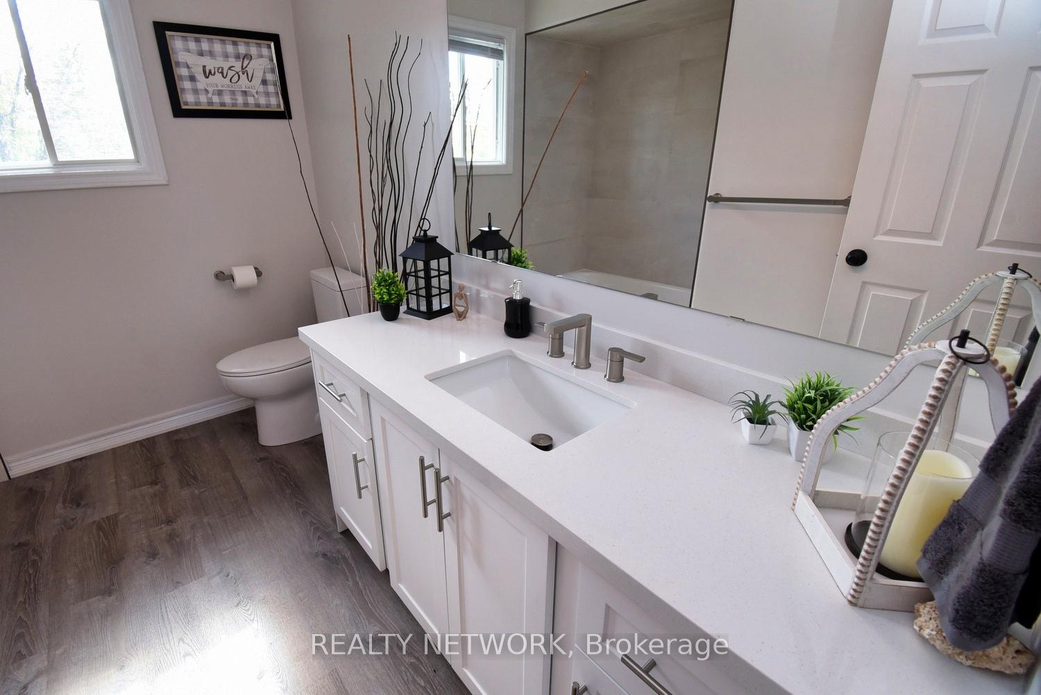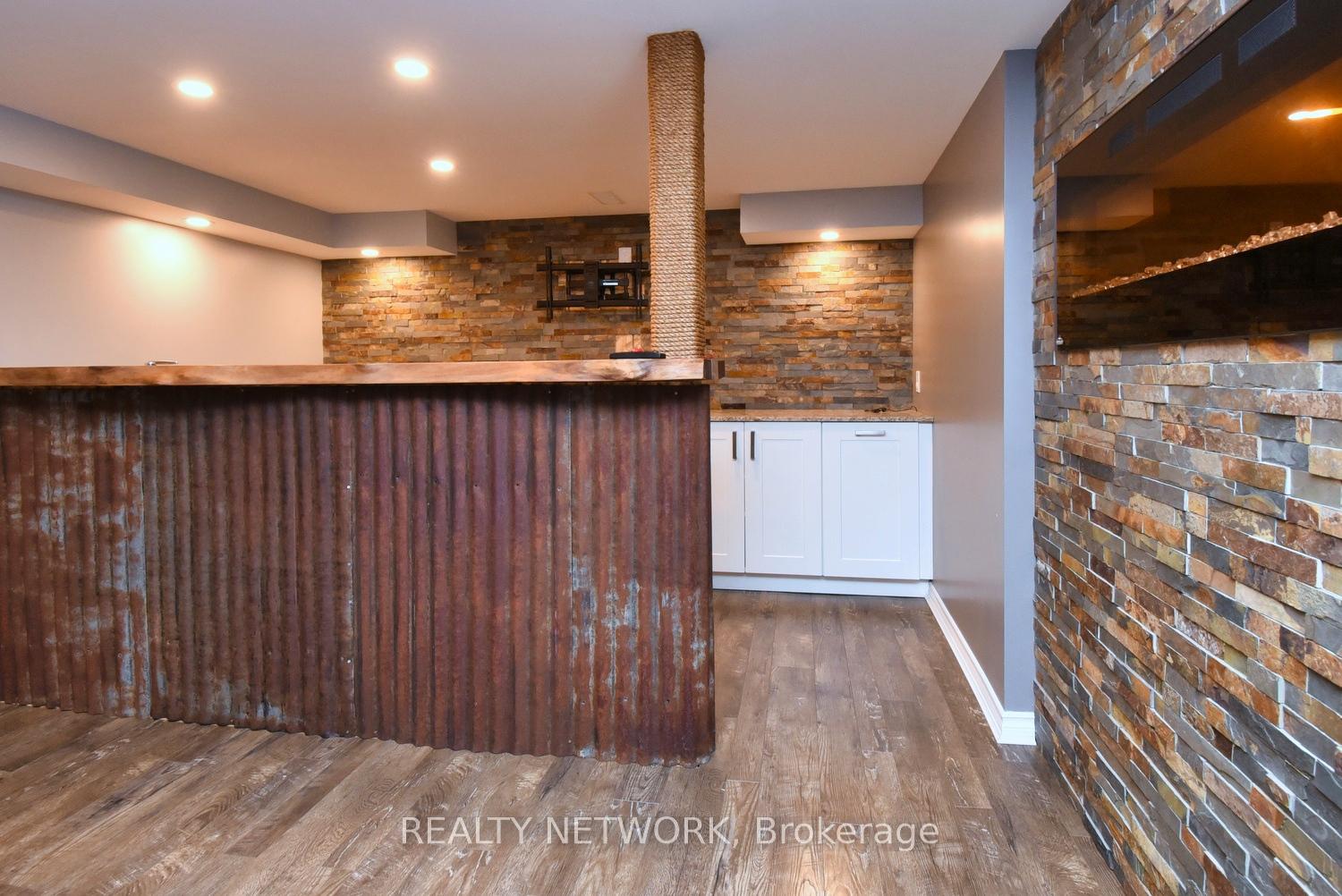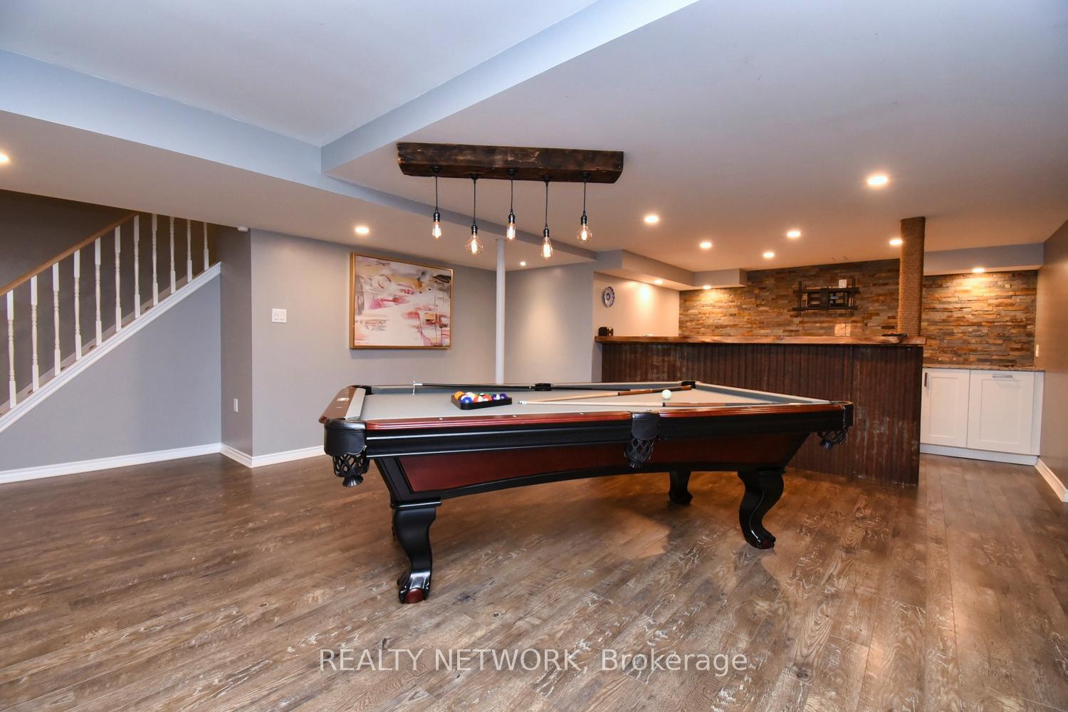 This beautiful 2 storey, 3.5 bathroom sits on pie shape lot in Prime Stoney Creek location. (36.52 x 172) 120 across in the back. Loads of features includes to brand new renovated upstairs bath & ensuite with his/hers sink with quartz counter tops, new flooring, paint, lighting, shower tile, facets. Hardwood floors & vinyl floors through-out (carpet free) beautiful staircase with iron spindles. Large sunken family room with gas fireplace. Bright large Eat-in Kitchen with stainless appliances. Totally finished lower level with vinyl flooring, pot lights, 3 piece bathroom, electric fireplace, wet bar and home theatre screen and projector. Beautiful modern kitchen with quartz counter tops. Heated garage. Large private pie shaped backyard to entertain your family & friends. Minutes to highway Toronto & Niagara, Costco and Lake. A must see, turn key move in condition.