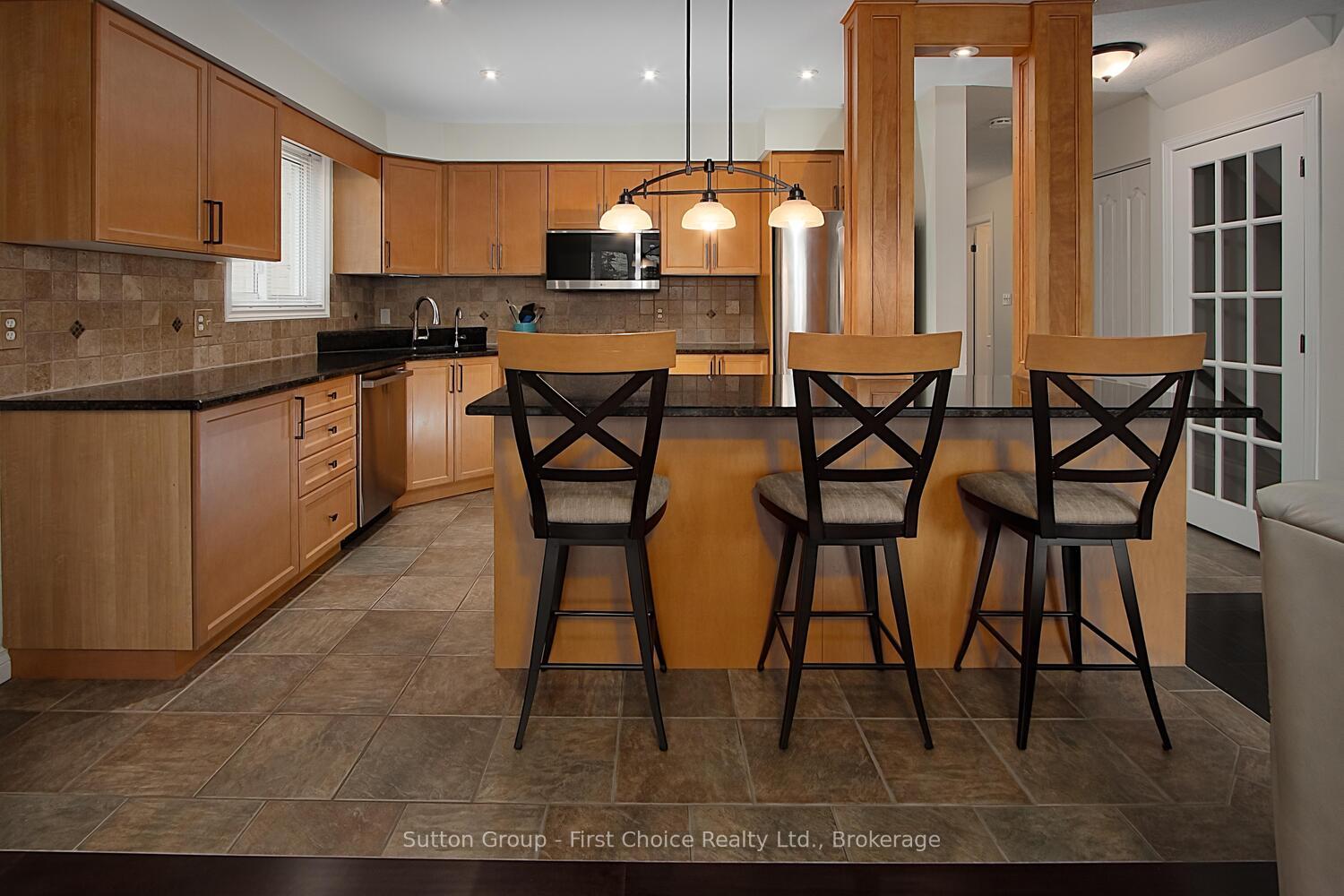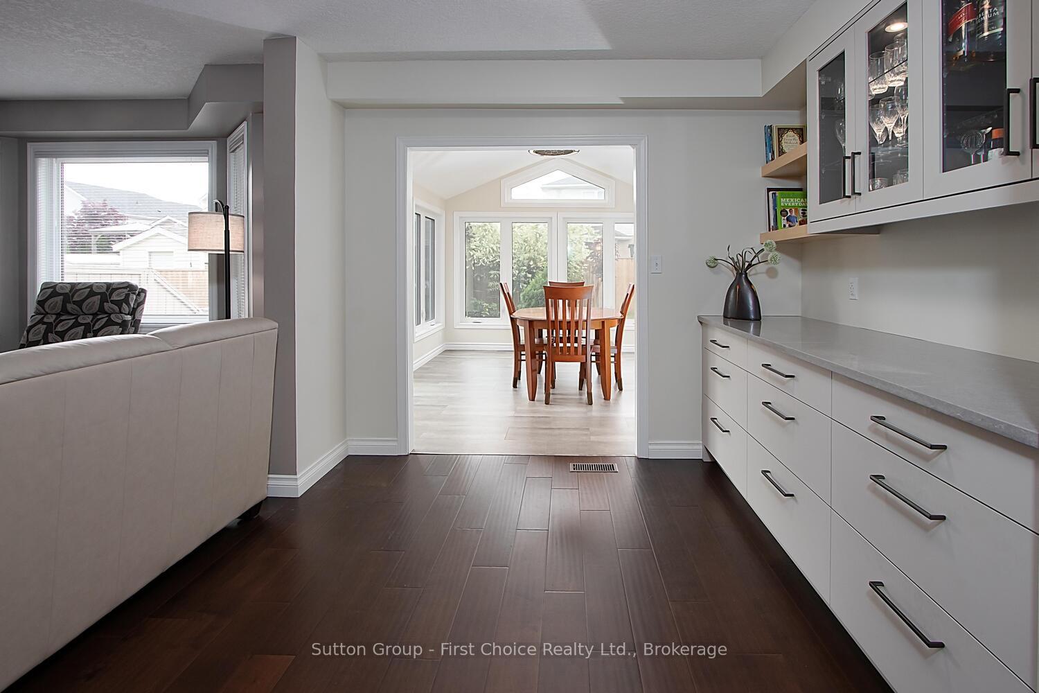 Beautifully Renovated Family Home with Bright Dining Room Addition on a Quiet Crescent! Welcome to this move-in-ready, updated single detached home with a large garage, located on a quiet crescent in one of Kitchener’s most sought-after family neighbourhoods. Just a short walk to excellent schools, parks, playgrounds, and trails, this home is perfect for growing families. The open concept main floor features a renovated maple kitchen with granite counters, stone backsplash, breakfast bar, and wine bar fridge. A stunning, professionally built dining room addition showcases high ceilings and large windows that fill the space with natural light, which is ideal for family meals and entertaining. The spacious living room features engineered hardwood flooring and flows to a fully fenced backyard with a pressure-treated deck and shed. A convenient 2-piece powder room completes the main level. Upstairs are three generous bedrooms with engineered hardwood flooring, an updated 4-piece bath with granite counters, and a built-in linen closet. The primary bedroom offers cathedral ceilings, California shutters, and a private 3-piece ensuite with quartz counters and glass shower. The finished basement includes a cozy rec room with a gas fireplace and stone mantel, a 2-piece bath, office or den, laundry room with cabinetry, utility room, and a fruit cellar. The spacious attached garage includes lots of bonus overhead storage. Located minutes from The Boardwalk, Costco, medical centres, movie theatres, transit, and expressway access — this home has it all. Book your private showing today, don’t miss your chance to own this beautiful family home!