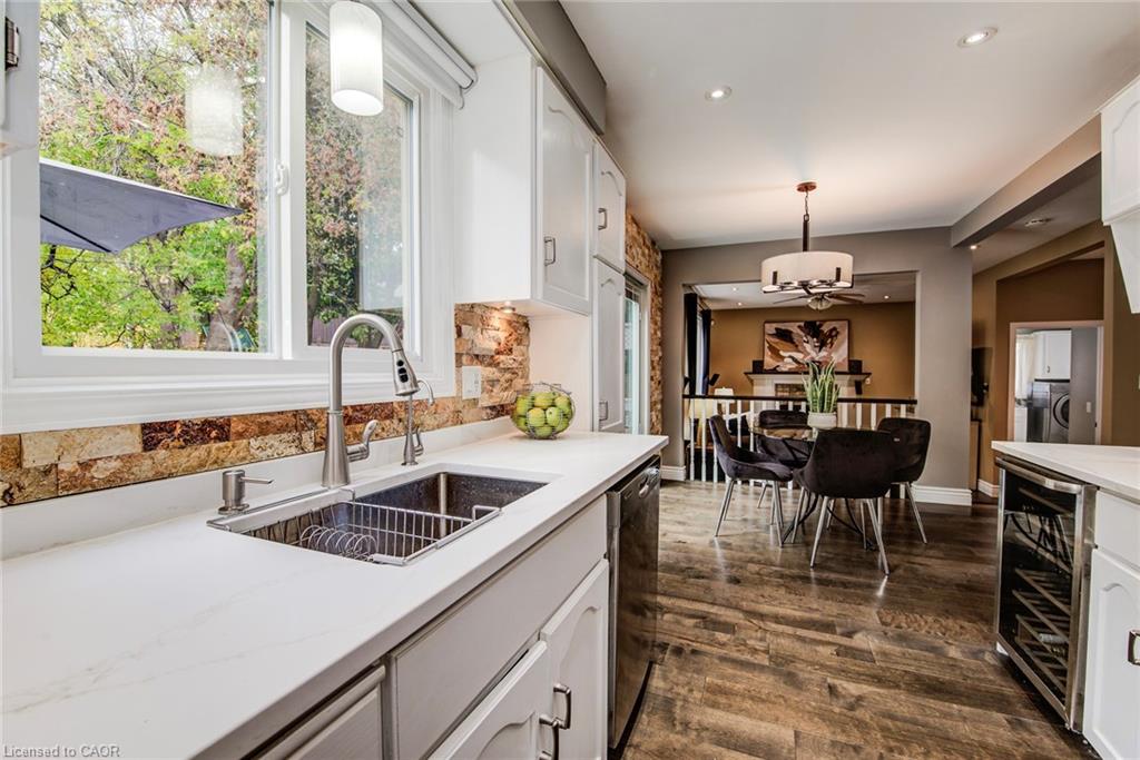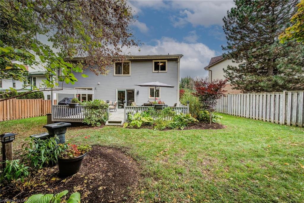 **OPEN HOUSE – Sun, Nov 23, 2-4 pm. Welcome to this beautifully updated home in prestigious Upper Beechwood! As you arrive at this charming 4 bedroom, 2-storey home with a double garage, you’ll immediately appreciate its perfect location on a pie-shaped cul-de-sac lot in one of Waterloo’s most desirable neighbourhoods. Walk through the front door and you’re greeted by a bright, welcoming space where the living and dining areas flow effortlessly together—perfect for hosting family gatherings or cozy evenings with friends. Step down to the sunken family room as you unwind by the gas fireplace, surrounded by the warmth of gleaming wide plank hardwood flooring. The heart of the home is the updated kitchen, featuring new quartz countertops and modern stainless steel appliances—a stove, fridge, built-in microwave, and wine fridge, all replaced in 2024. From the dinette, sliding doors lead you out to a spacious deck overlooking a lush, treed backyard—a serene outdoor retreat ideal for summer barbecues or morning coffee. Back inside, you’ll find a beautifully renovated main-floor powder room, a convenient laundry area and thoughtful updates that make everyday living effortless—including a new washer, dryer and water softener (2024). Upstairs, the three generous bedrooms feature brand-new carpeting, while the primary suite offers a peaceful escape with a large walk-in closet and a private 4-piece ensuite. The fully finished basement adds even more living space with new flooring, a spacious recreation room, a den, an additional bedroom and a 3-piece bathroom—perfect for guests, hobbies, or movie nights. Every detail of this home blends comfort, style and function, all within the prestigious Upper Beechwood community—renowned for its mature trees, excellent schools, Home associations with pools and Tennis courts, wonderful welcoming neighbourhood vibes.