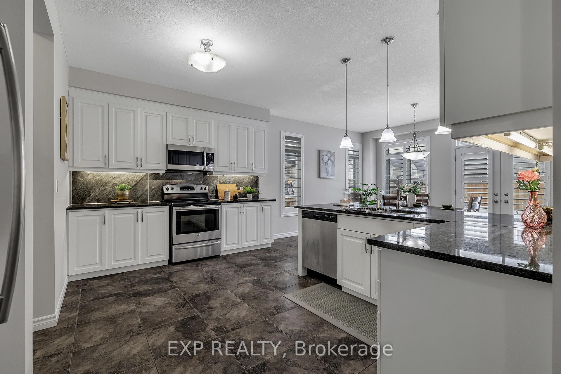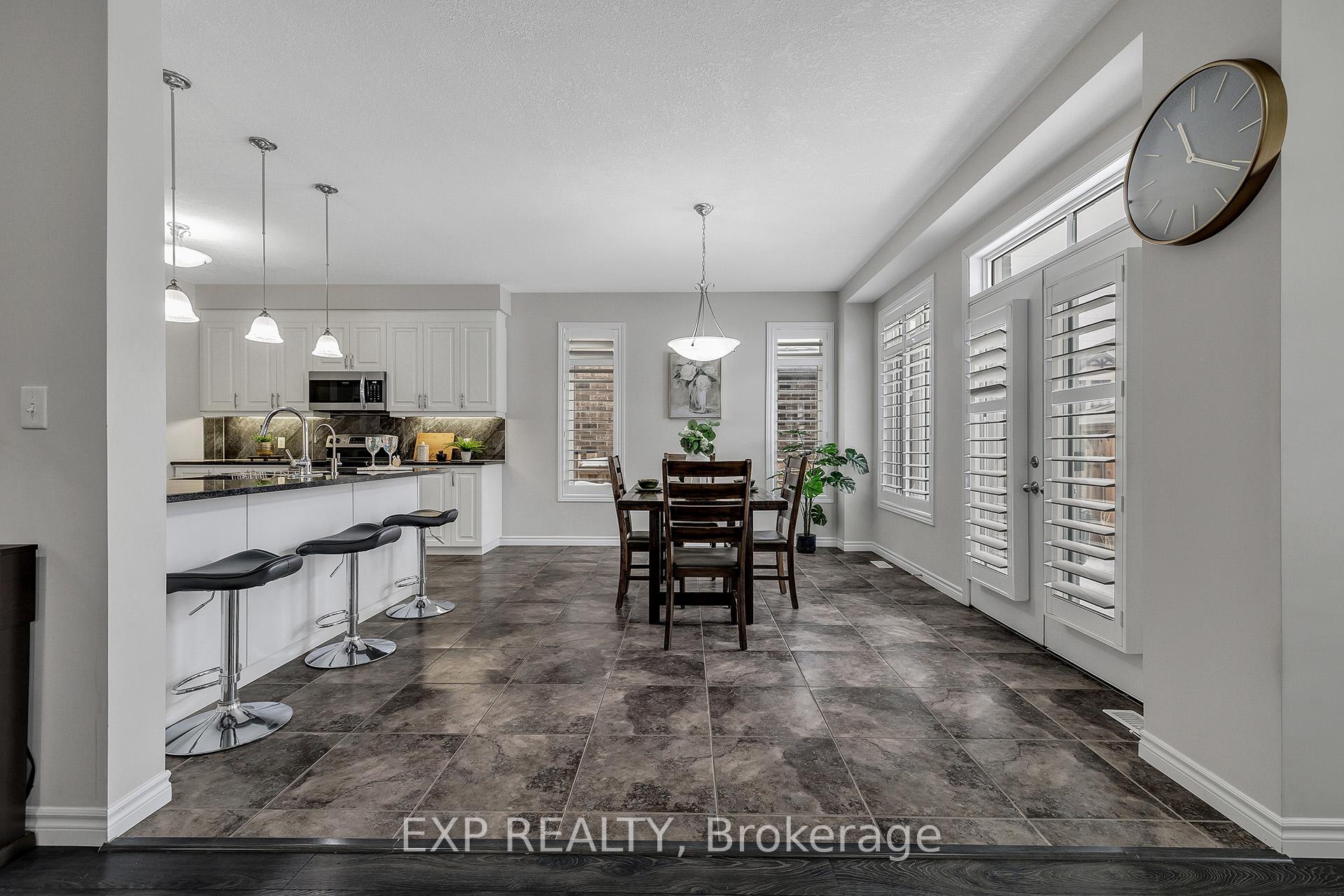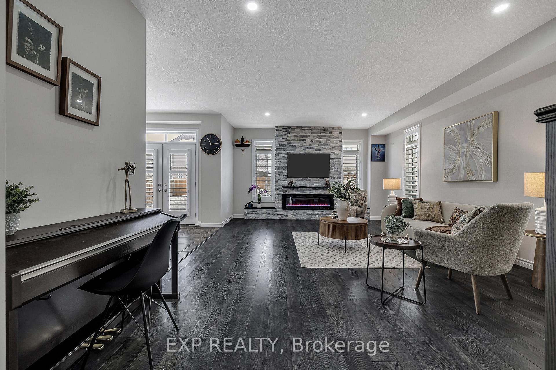 Welcome to 297 Thomas Slee Drive in Kitchener, a beautifully maintained 4-bedroom, 2.5-bathroom detached home built in 2016, located in the highly desirable Doon South / Pioneer Park neighbourhood. Just steps from Groh Public School and minutes to Highway 401, this home offers an ideal setting for families and commuters alike. Offering approximately 2,700 sq ft of above-grade living space, the bright main floor features spacious living areas filled with natural light and enhanced by 9-foot ceilings. Elegant California shutters throughout the main and second floor provide timeless style and privacy. An electric fireplace creates a warm focal point, perfect for relaxing evenings or entertaining guests. The kitchen includes white cabinetry, black granite countertops, under-cabinet lighting, and a generous walk-in pantry, providing both style and function. Upstairs, you’ll find four generously sized bedrooms and well-appointed bathrooms designed for comfortable family living. The unfinished basement offers excellent potential for additional finished living space or possible secondary use, subject to city approvals. Outside, the exposed concrete triple-wide driveway and matching backyard patio create impressive curb appeal and outdoor entertaining space. The fully fenced yard offers privacy and room to grow. Additional upgrades include an approximately five-year-old air conditioner and owned water heater and water softener, eliminating rental fees and ongoing monthly costs. Located near parks, trails, shopping, transit, and major commuter routes, this move-in-ready home provides the perfect balance of peaceful residential living and everyday convenience in one of Kitchener’s most established family communities.