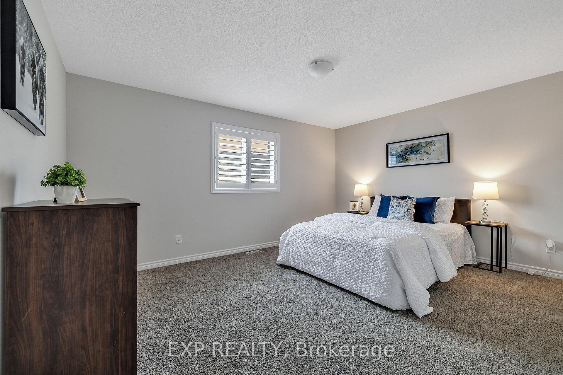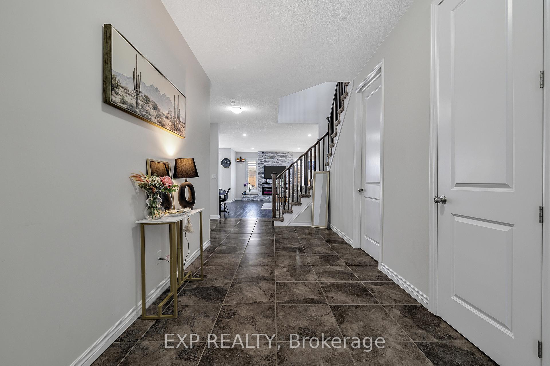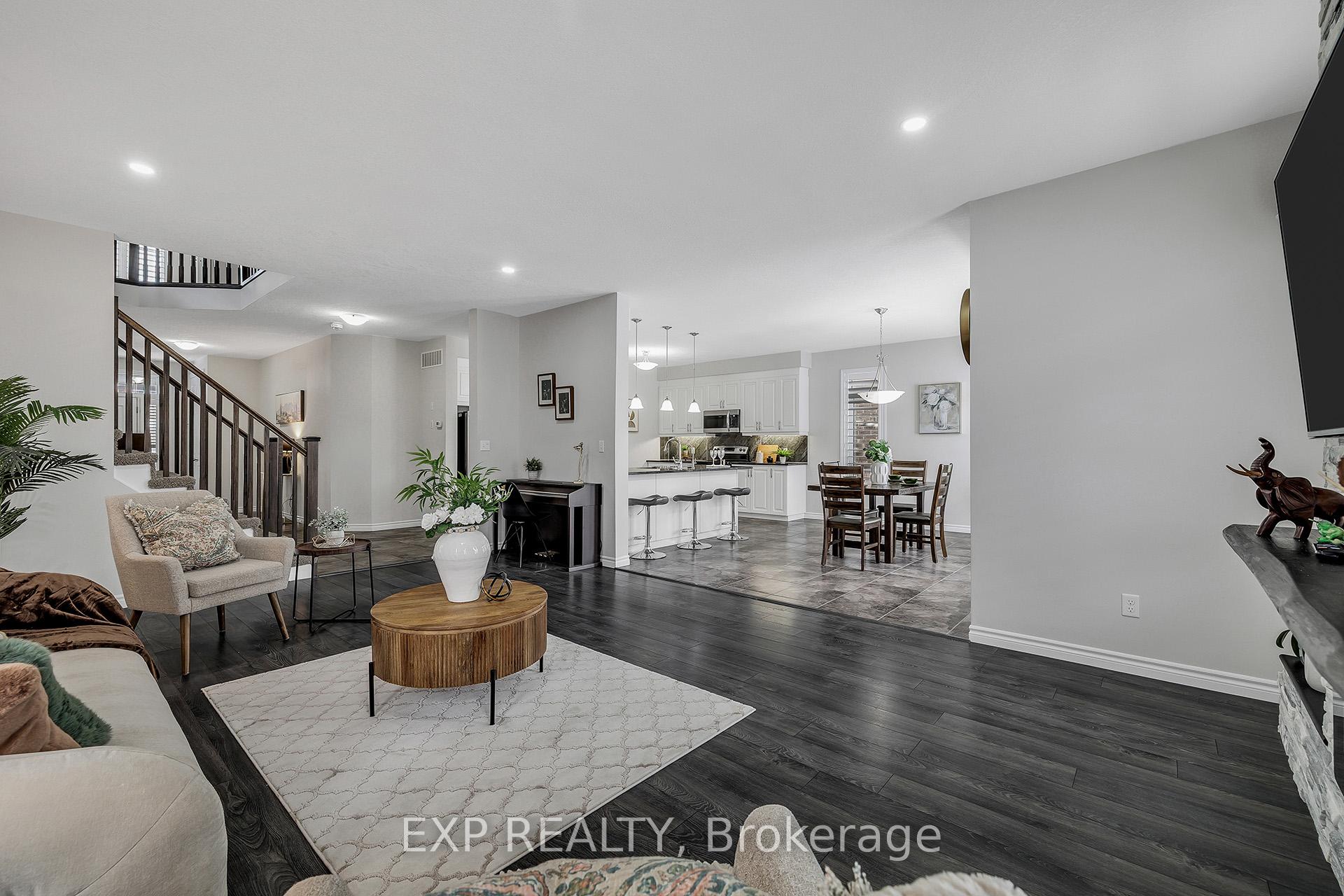 Welcome to 297 Thomas Slee Drive in Kitchener, a beautifully maintained 4-bedroom, 2.5-bathroom detached home built in 2016, located in the highly desirable Doon South / Pioneer Park neighbourhood. Just steps from Groh Public School and minutes to Highway 401, this home offers an ideal setting for families and commuters alike. Offering approximately 2,700 sq ft of above-grade living space, the bright main floor features spacious living areas filled with natural light and enhanced by 9-foot ceilings. Elegant California shutters throughout the main and second floor provide timeless style and privacy. An electric fireplace creates a warm focal point, perfect for relaxing evenings or entertaining guests. The kitchen includes white cabinetry, black granite countertops, under-cabinet lighting, and a generous walk-in pantry, providing both style and function. Upstairs, you’ll find four generously sized bedrooms and well-appointed bathrooms designed for comfortable family living. The unfinished basement offers excellent potential for additional finished living space or possible secondary use, subject to city approvals. Outside, the exposed concrete triple-wide driveway and matching backyard patio create impressive curb appeal and outdoor entertaining space. The fully fenced yard offers privacy and room to grow. Additional upgrades include an approximately five-year-old air conditioner and owned water heater and water softener, eliminating rental fees and ongoing monthly costs. Located near parks, trails, shopping, transit, and major commuter routes, this move-in-ready home provides the perfect balance of peaceful residential living and everyday convenience in one of Kitchener’s most established family communities.