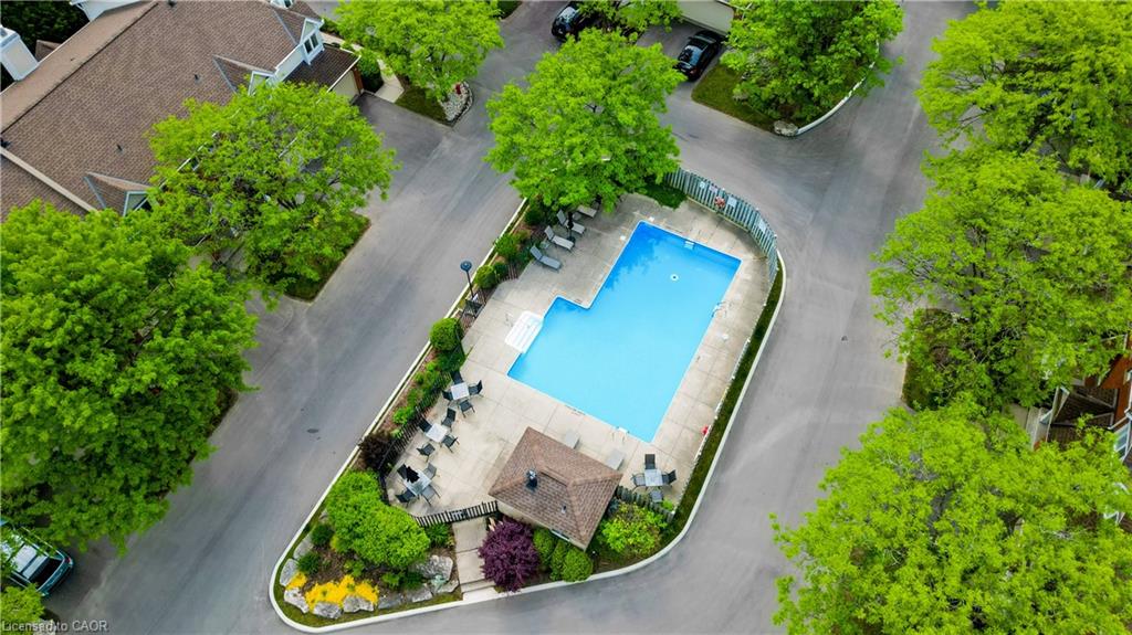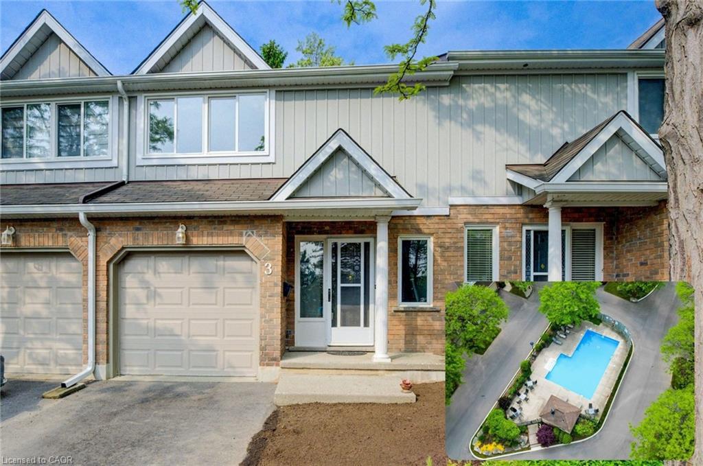 overlooking tranquil greenspace. A convenient two-piece bath completes the main floor. Upstairs, you’ll find three generously sized bedrooms, including a primary suite with its own ensuite and large closets. With snow removal included in the winter and access to a private community pool in the summer, this home offers the perfect blend of comfort, convenience, and carefree living in one of