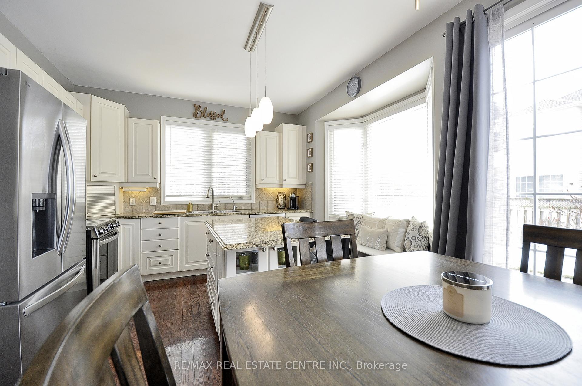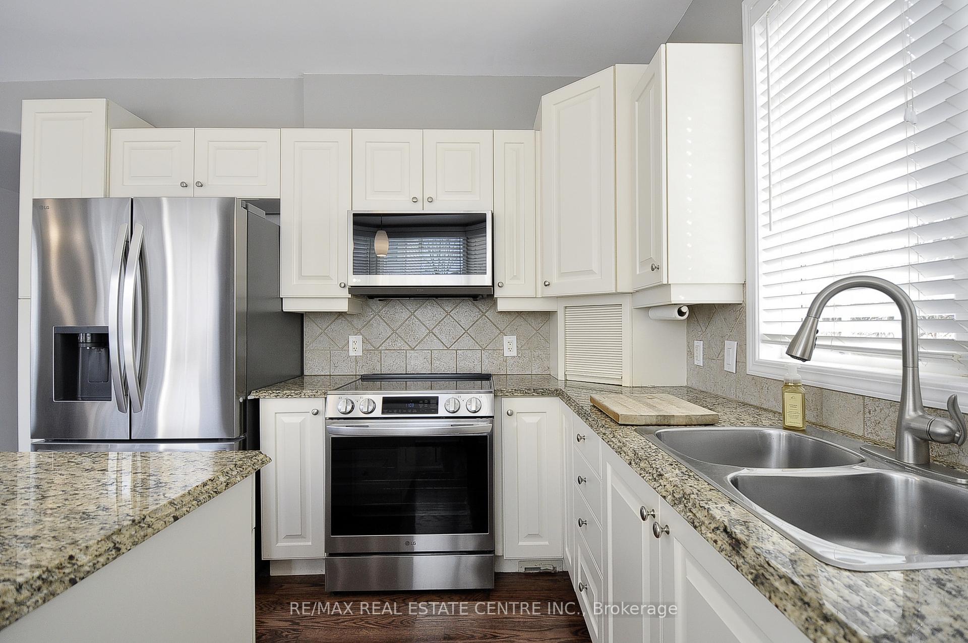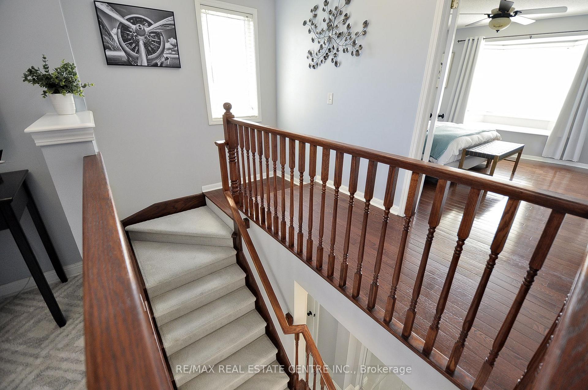 Prime Commuter location, this beautifully updated 5-bedroom, 4-bathroom two-storey home has been meticulously maintained, updated and upgraded. Completely move-in ready. Features include real hardwood flooring, not laminate and a bright, open-concept layout designed for both everyday living and effortless entertaining. The kitchen is the heart of the home, featuring granite counters & updated appliances (2024), with a view to the family room with an updated gas fireplace (new fan, sensors, and line), creating a cozy gathering space The main floor updates include a redesigned powder room, new tile, shiplap accents, updated casing and baseboards, and professionally painted – delivering a clean, contemporary aesthetic while maintaining warmth and character. Upstairs, the spacious primary retreat offers a charming bay window, glass shower ensuite, and granite countertops – a true private escape. In addition to 4 bedrooms, the upstairs has a versatile office space at the top of the stairs (complete with closet) provides flexibility for work-from-home, reading nook or craft area. Convenient second-floor laundry includes updated washer and dryer (2024). And there’s a double linen closet. In addition to a 5th bedroom, the finished basement continues the home’s quality finishes with real hardwood flooring, pot lights, heated bathroom floor, hobby/storage space, two oversized storage closets, and large windows that invite natural light. Out back, enjoy a private backyard with easy to maintain landscaping and large concrete patio which has been meticulously maintained – stained and resealed annually – Top to bottom there is pride of ownership you can see. Additional features include: New carpet runner (2024) New glass inserts in rear sliding door Tankless water heater Owned water softener CAT5 wiring throughout Every detail reflects care, maintenance, and thoughtful upgrading. This is more than a house – it’s a home designed to grow with you.