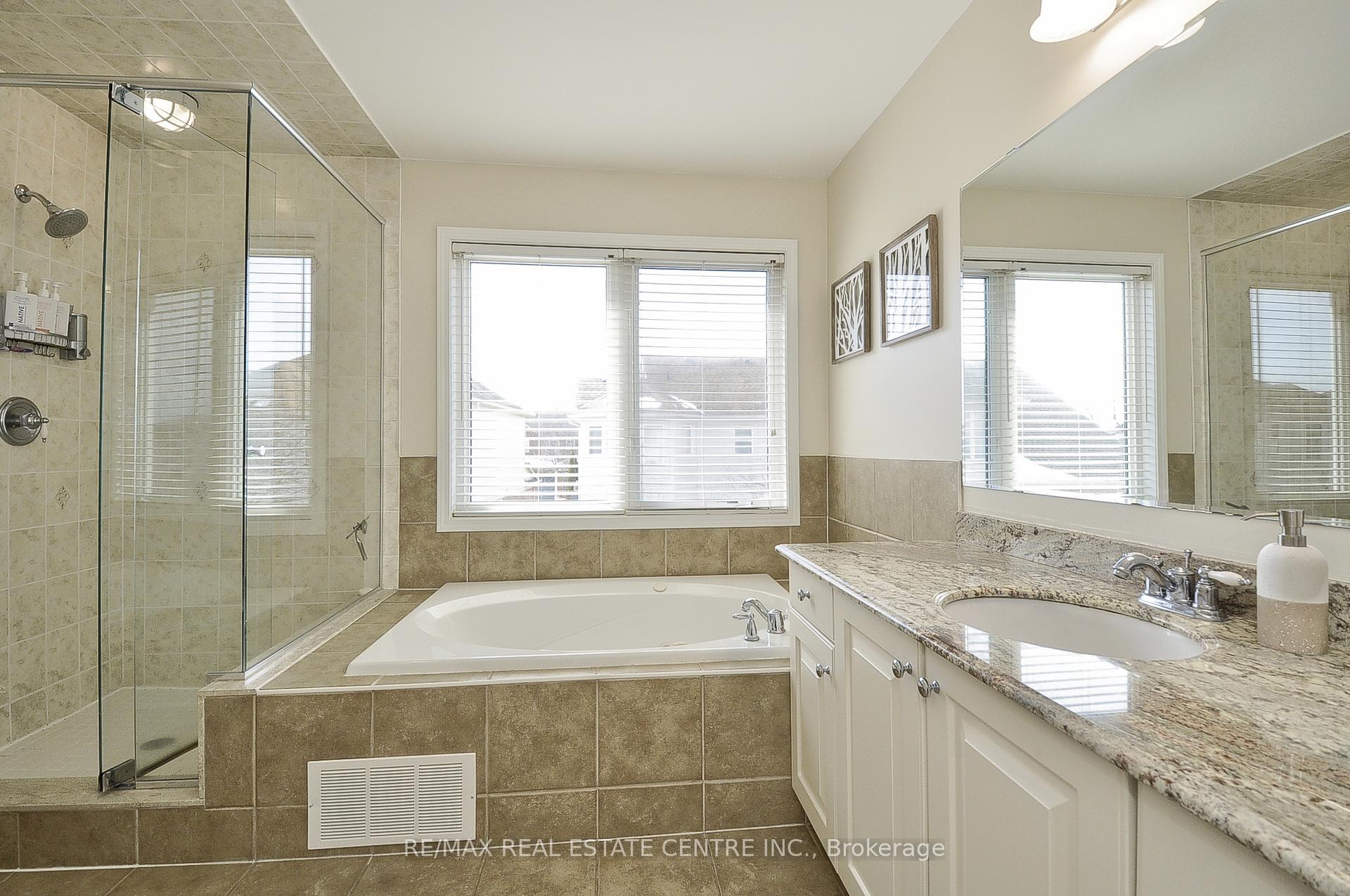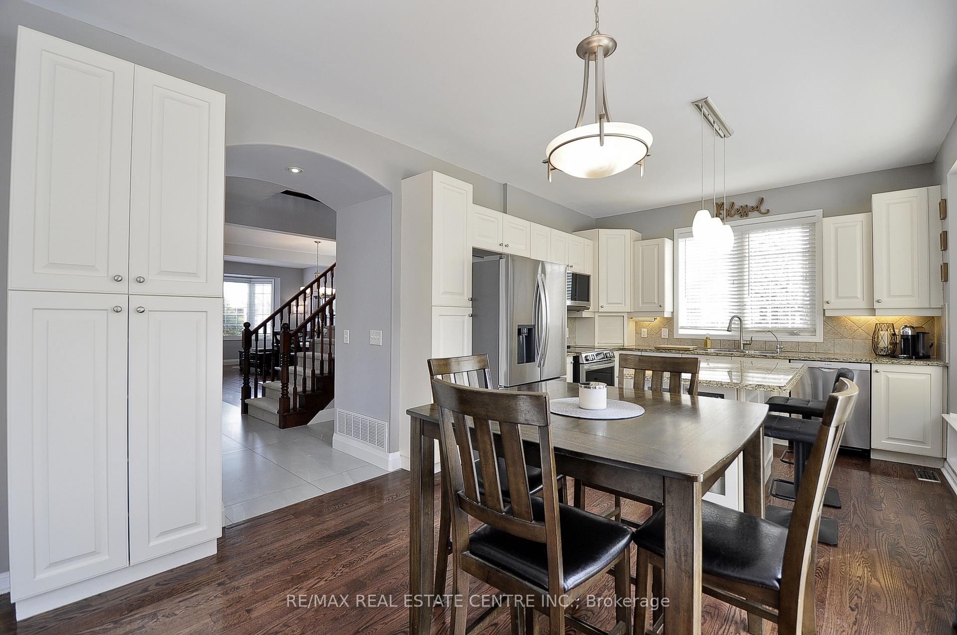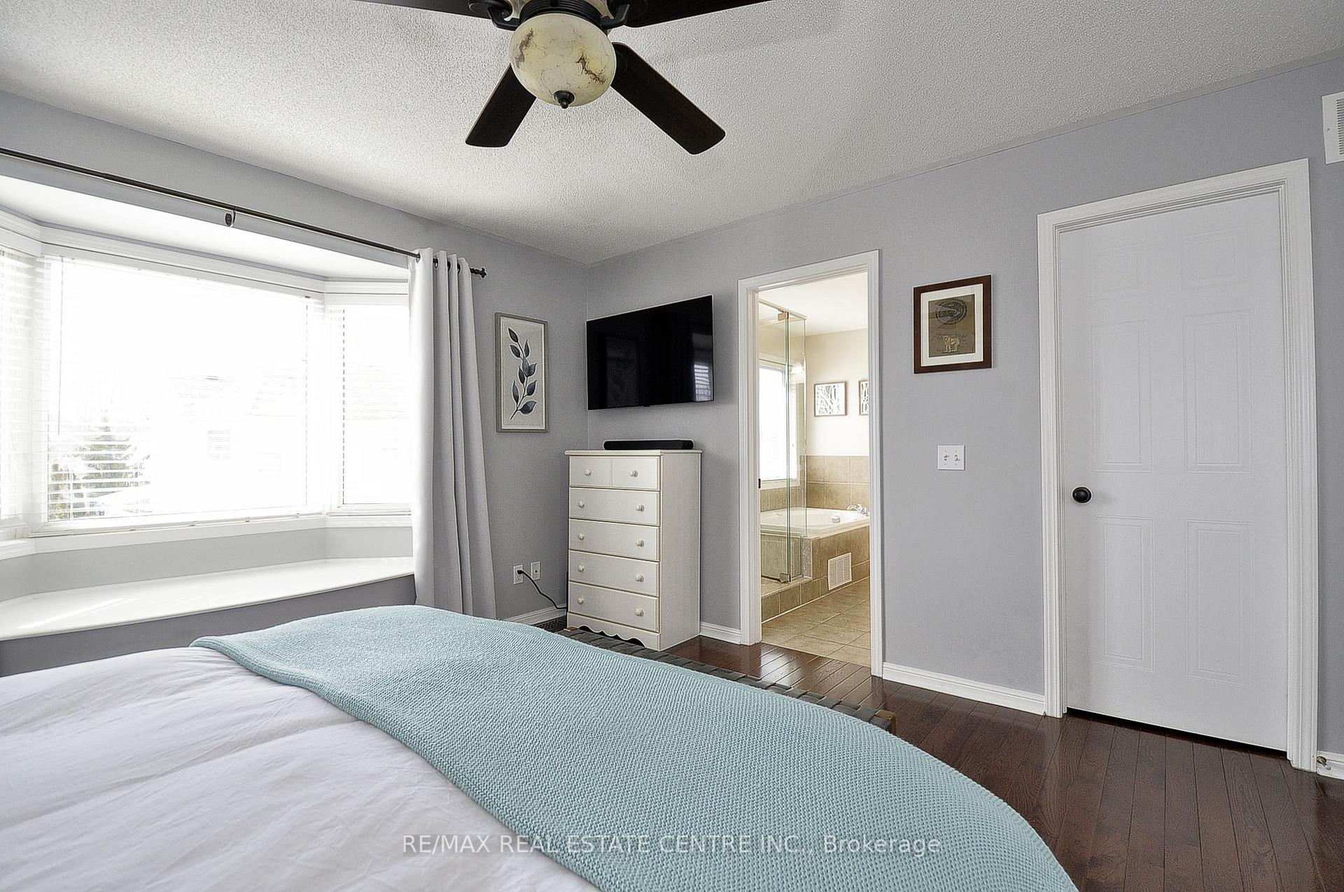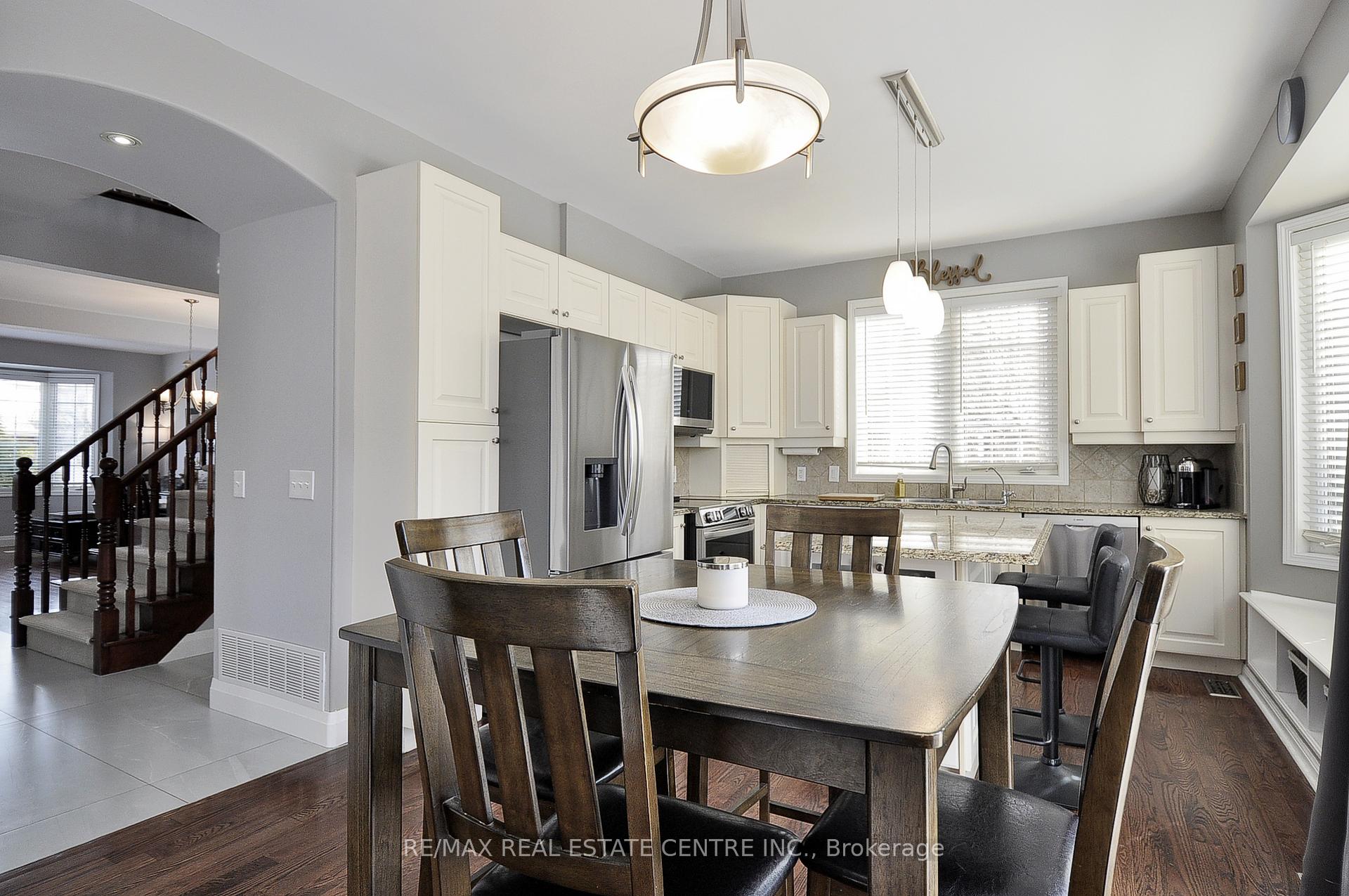 Prime Commuter location, this beautifully updated 5-bedroom, 4-bathroom two-storey home has been meticulously maintained, updated and upgraded. Completely move-in ready. Features include real hardwood flooring, not laminate and a bright, open-concept layout designed for both everyday living and effortless entertaining. The kitchen is the heart of the home, featuring granite counters & updated appliances (2024), with a view to the family room with an updated gas fireplace (new fan, sensors, and line), creating a cozy gathering space The main floor updates include a redesigned powder room, new tile, shiplap accents, updated casing and baseboards, and professionally painted – delivering a clean, contemporary aesthetic while maintaining warmth and character. Upstairs, the spacious primary retreat offers a charming bay window, glass shower ensuite, and granite countertops – a true private escape. In addition to 4 bedrooms, the upstairs has a versatile office space at the top of the stairs (complete with closet) provides flexibility for work-from-home, reading nook or craft area. Convenient second-floor laundry includes updated washer and dryer (2024). And there’s a double linen closet. In addition to a 5th bedroom, the finished basement continues the home’s quality finishes with real hardwood flooring, pot lights, heated bathroom floor, hobby/storage space, two oversized storage closets, and large windows that invite natural light. Out back, enjoy a private backyard with easy to maintain landscaping and large concrete patio which has been meticulously maintained – stained and resealed annually – Top to bottom there is pride of ownership you can see. Additional features include: New carpet runner (2024) New glass inserts in rear sliding door Tankless water heater Owned water softener CAT5 wiring throughout Every detail reflects care, maintenance, and thoughtful upgrading. This is more than a house – it’s a home designed to grow with you.