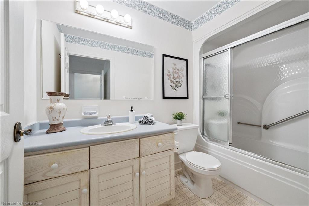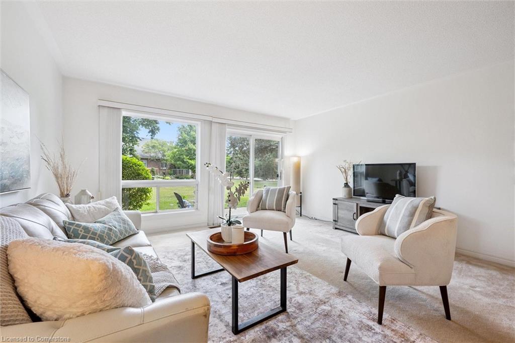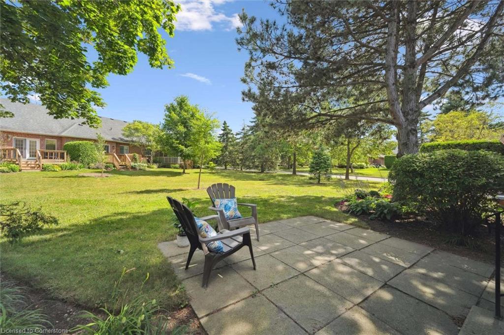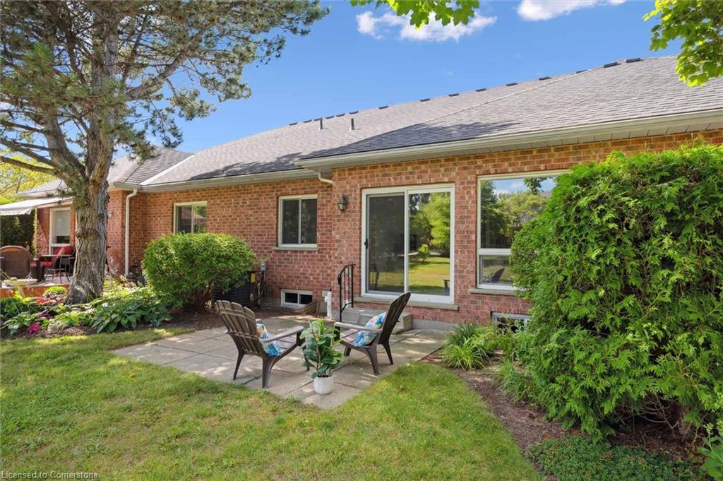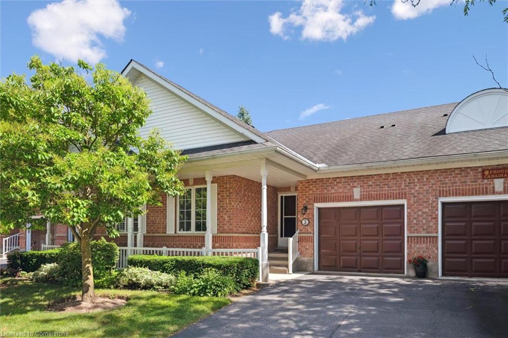 Welcome to 3 Gardenview Crt, a charming 2-bedroom, 2.1-bathroom red brick bungalow townhouse nestled in Guelph’s prestigious adult lifestyle community, The Village by the Arboretum! A welcoming front porch, mature trees & attached 1-car garage create a warm first impression. Inside the spacious kitchen boasts abundant cabinetry, ample counter space & white tiled backsplash. It seamlessly connects to a sunlit open-concept living & dining area, where a full wall of windows frames peaceful views of the inviting backyard, flooding the space W/natural light—ideal for cozy evenings & entertaining guests. The generous primary suite features large window, W/I closet & 4pc ensuite W/oversized vanity & shower/tub combo. A second spacious bedroom offers generously sized window & double closet W/easy access to the main 4pc bathroom—perfect as guest suite, home office or hobby room. Convenient main-floor laundry room is completely accessible & provides extra storage space W/cabinets above the washer & dryer. Finished basement expands the living space W/massive rec area & 2pc bathroom—ideal for home gym, media room, craft studio or playful space for grandchildren. A cold room adds practical storage. Step outside to enjoy a serene backyard retreat featuring lovely patio, beautifully maintained gardens & mature trees. A generous grassy area offers room for pets to roam or family visits to be enjoyed in peace & privacy. The Village by the Arboretum is more than a community—it’s a lifestyle! Residents enjoy access to over 90 clubs & social activities, plus 43,000sqft of resort-style amenities including indoor pool, hot tub, sauna, fitness centre, tennis courts, putting green, billiards, library & more! Safe, vibrant & welcoming it’s the perfect place to thrive. Just mins from Stone Rd Mall & array of everyday conveniences, this home also enjoys close proximity to renowned University of Guelph Arboretum—a 400-acre botanical haven W/trails, educational programs & serene natural beauty.