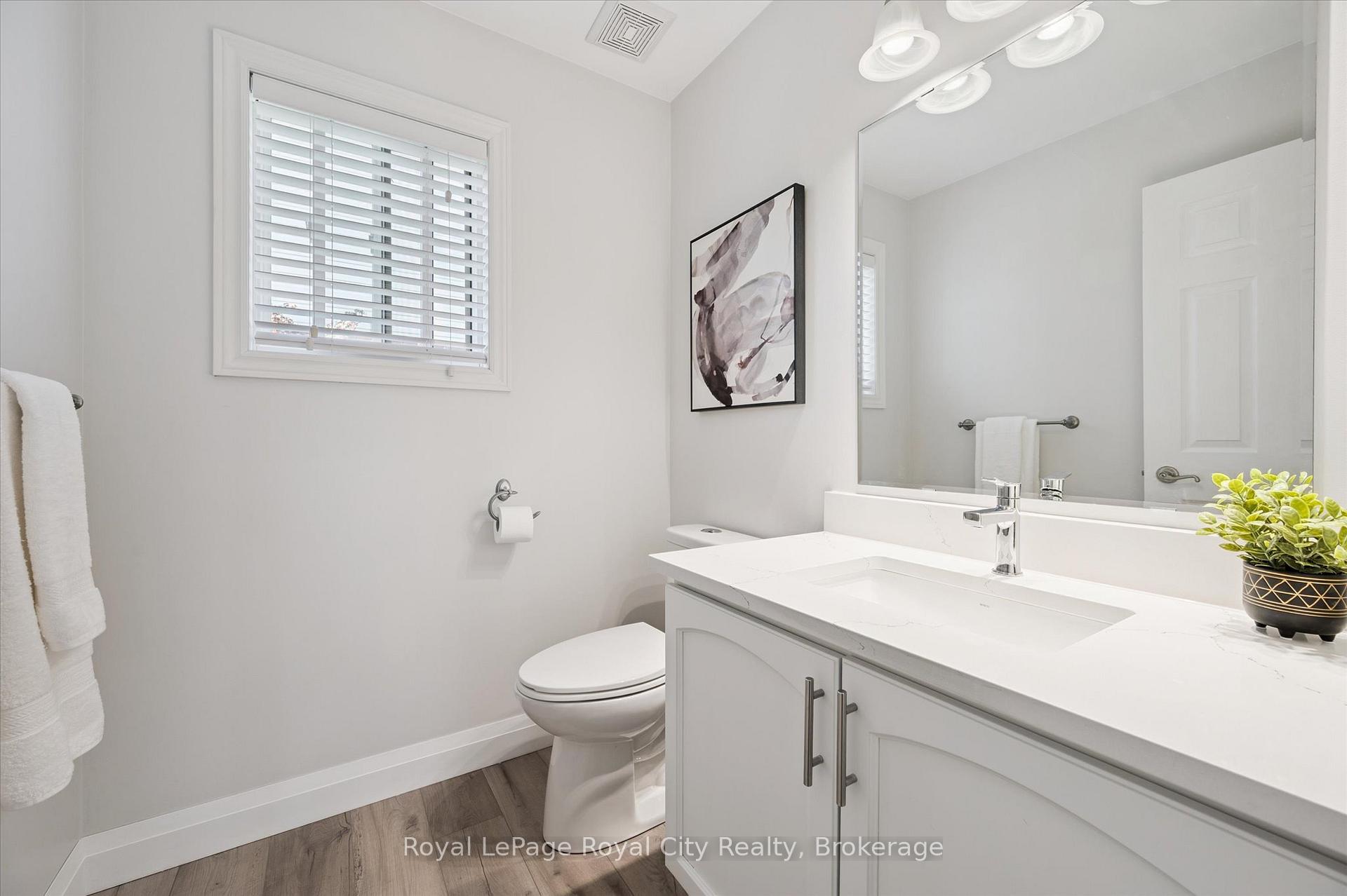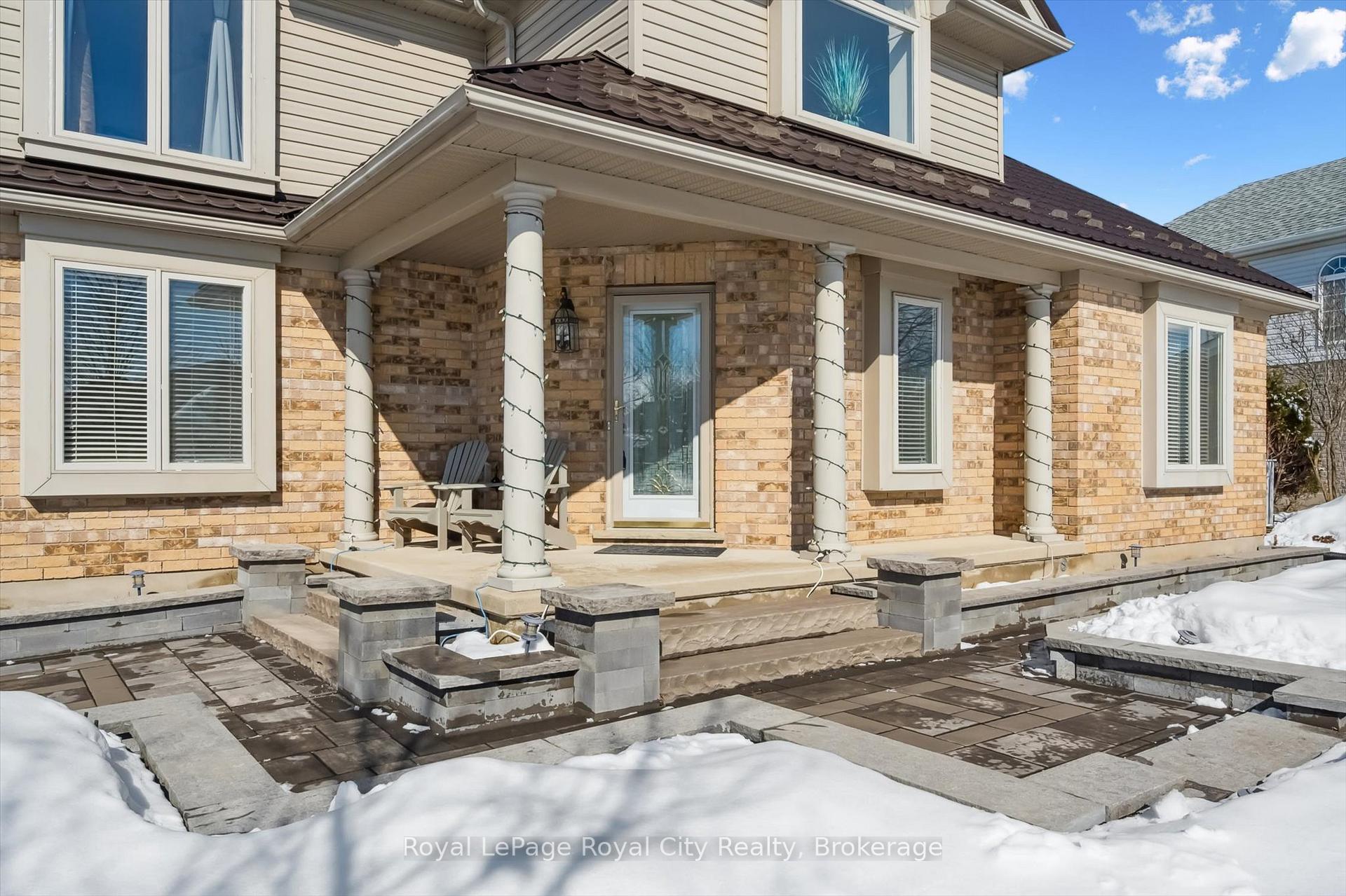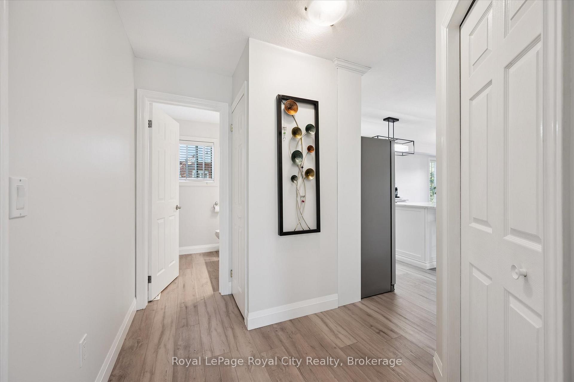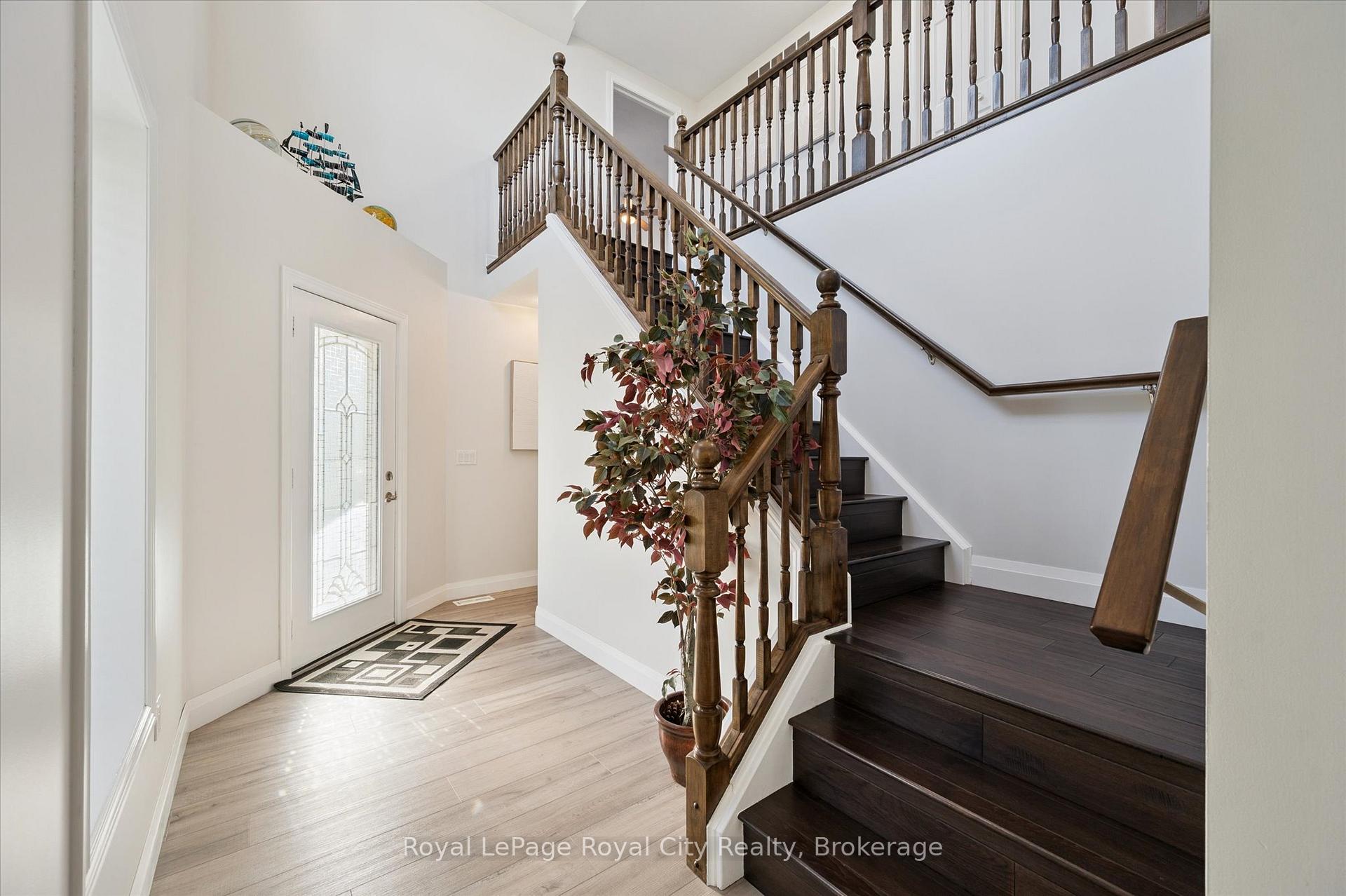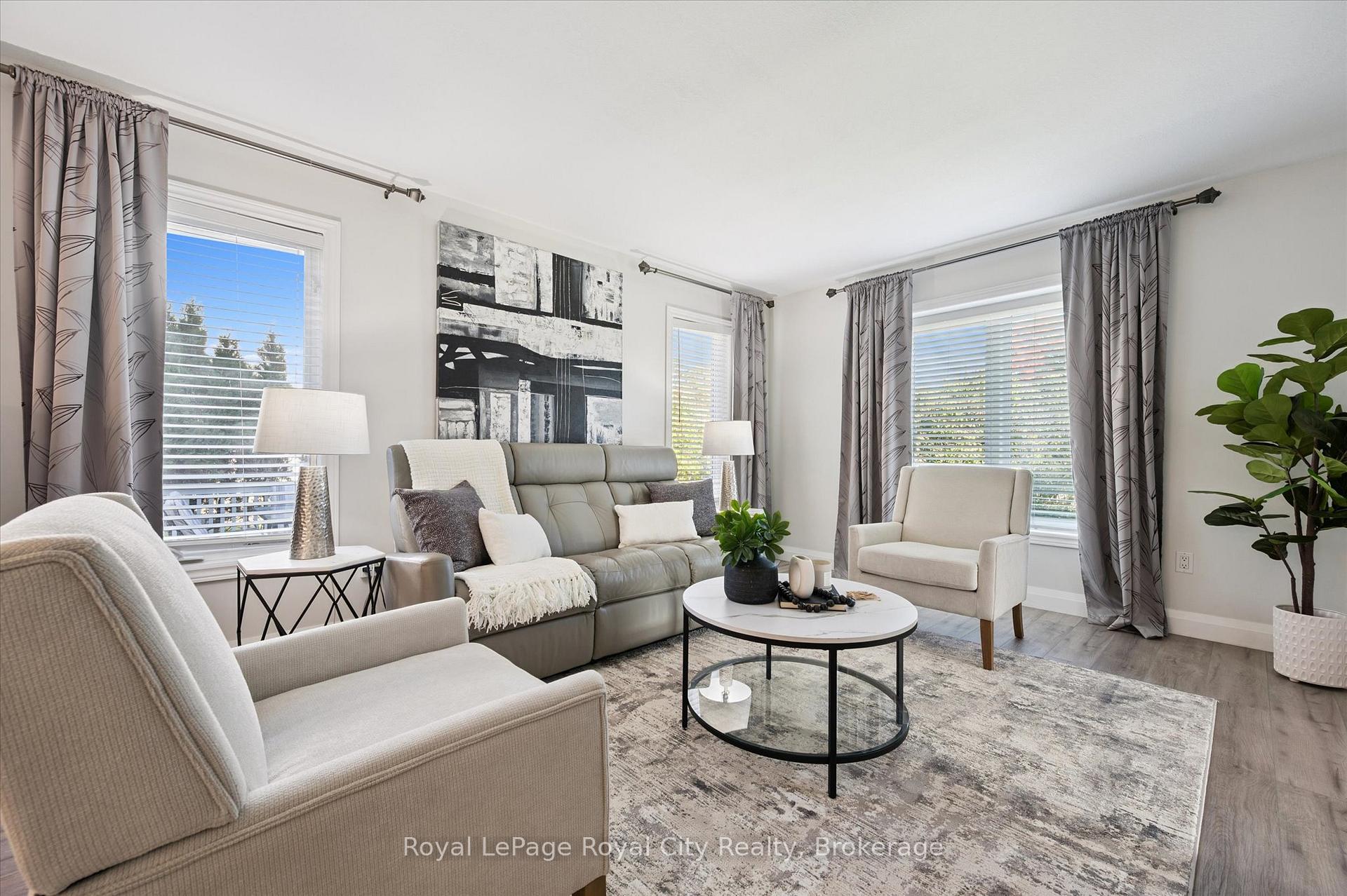 Transformed inside and out, this stunning south-end home is a showcase of quality craftsmanship, thoughtful design, and extensive upgrades. Located in one of Pine Ridge’s most desirable neighbourhoods, it offers exceptional curb appeal and a truly move-in-ready experience. Purchased in 2017 and extensively reimagined since, nearly every inch has been upgraded. The redesigned driveway, hardscape, and professional landscaping complement the home’s distinctive architecture. Inside, brand-new vinyl flooring (2025) anchors the open-concept main level. The fully renovated kitchen features quartz countertops, full-height cabinetry with glass accents, a walk-in pantry, centre island, and stainless steel appliances (2020-21). A three-sided fireplace connects the kitchen and living room, while patio doors open to a spacious deck ideal for entertaining. Upstairs, hardwood flooring replaces all carpet, including the staircase. The primary suite offers engineered hardwood, a walk-in closet, replaced arched windows, and an updated ensuite with quartz vanity and jetted tub. Two additional bedrooms with hardwood floors share a fully renovated main bath. The finished basement adds a rec room, laundry with cabinetry and sink, built-in shelving in the cold room, generous storage, a bathroom rough-in, and a rare attic-style loft for additional storage. Major system upgrades include furnace, A/C, and tankless water heater (2018), metal roof, replaced windows, owned water softener, refreshed paint, and built-in garage shelving. This is not simply a well-cared-for home – it is a thoroughly renovated residence where the investment has already been made for you! Located on a quiet street in Guelph’s sought-after south end, just steps to conservation lands, scenic trails, excellent schools, parks, and everyday amenities, this home delivers location, luxury, and lasting value. This is more than an upgrade – it’s a complete transformation!