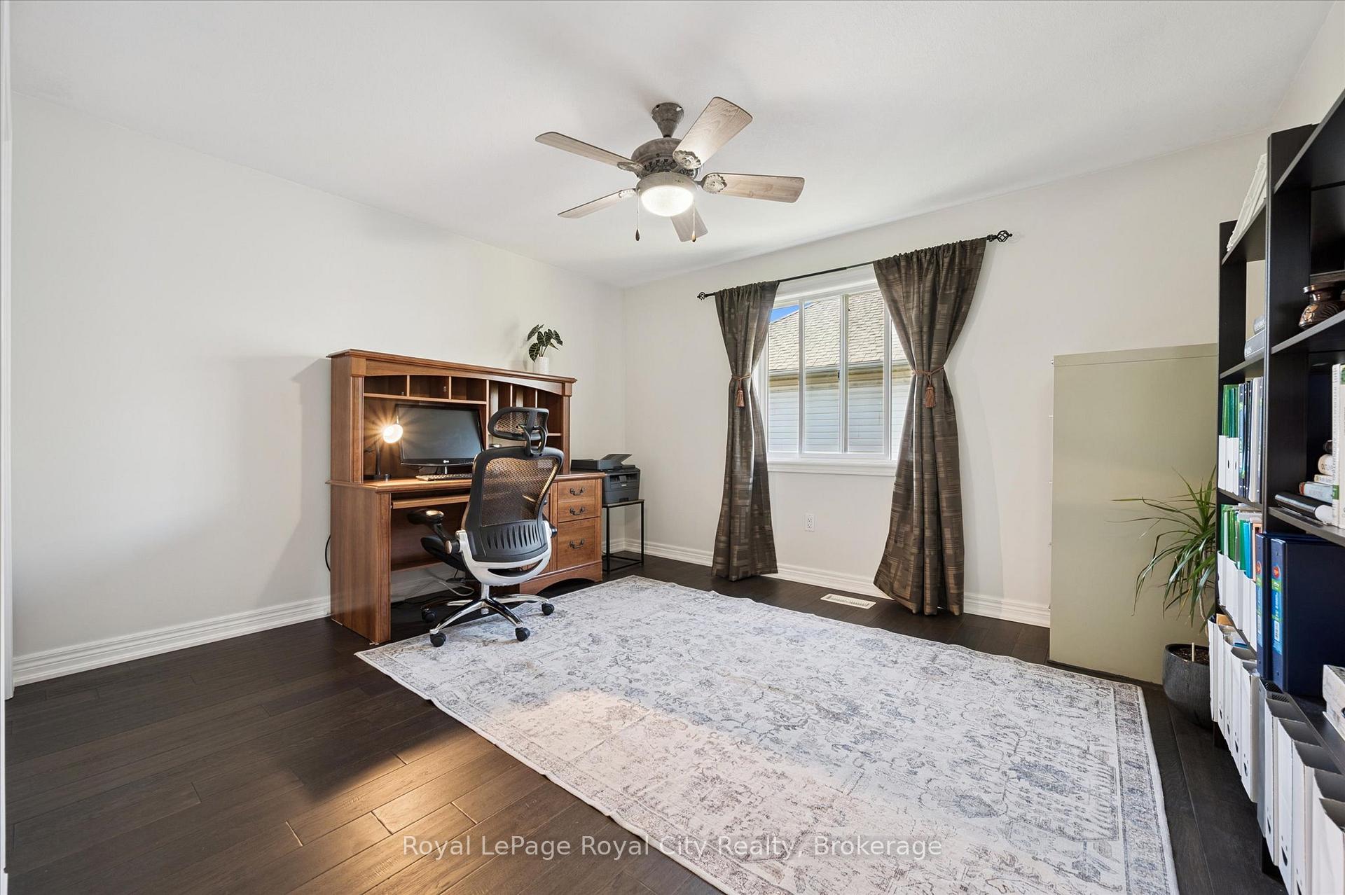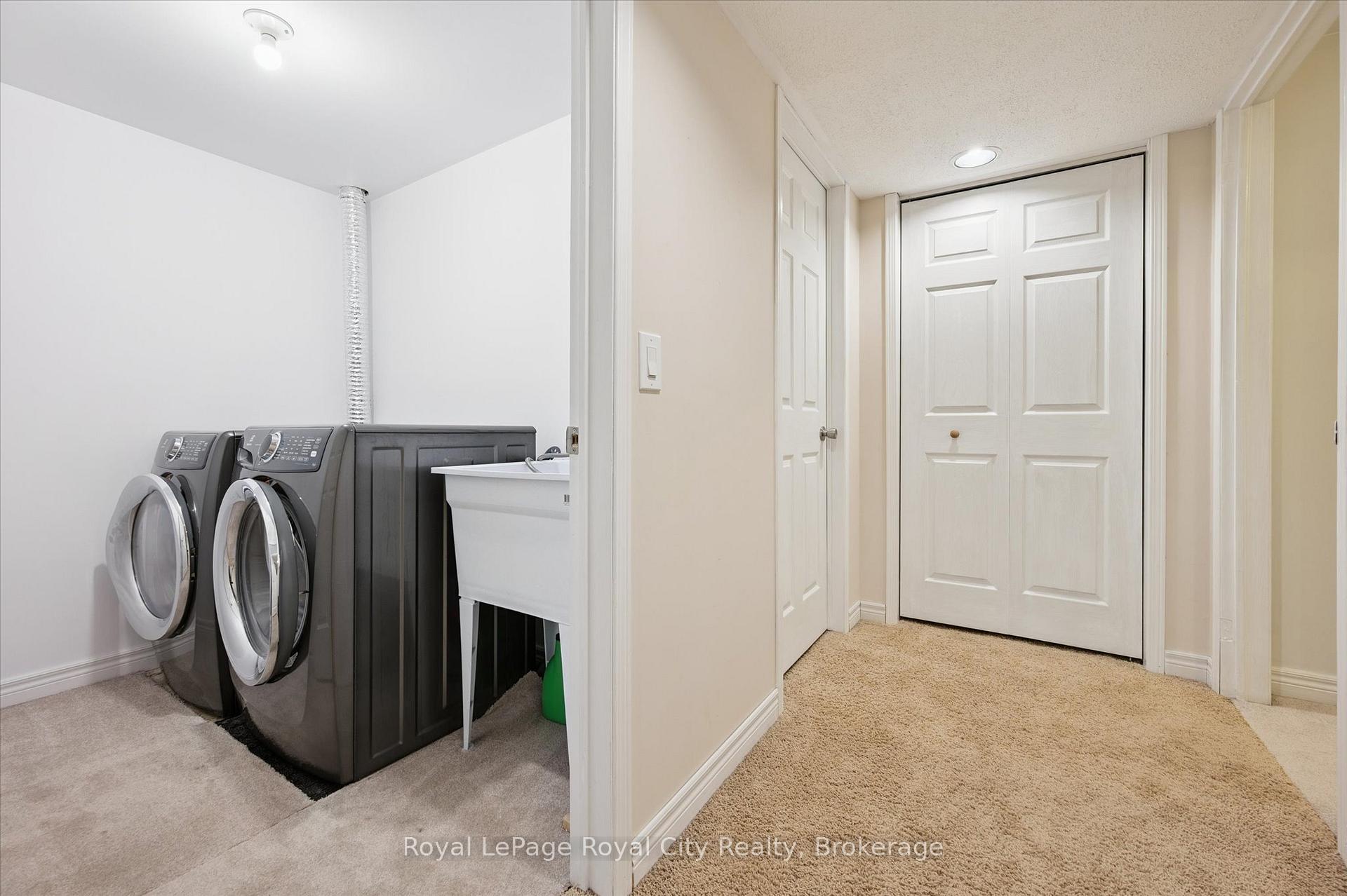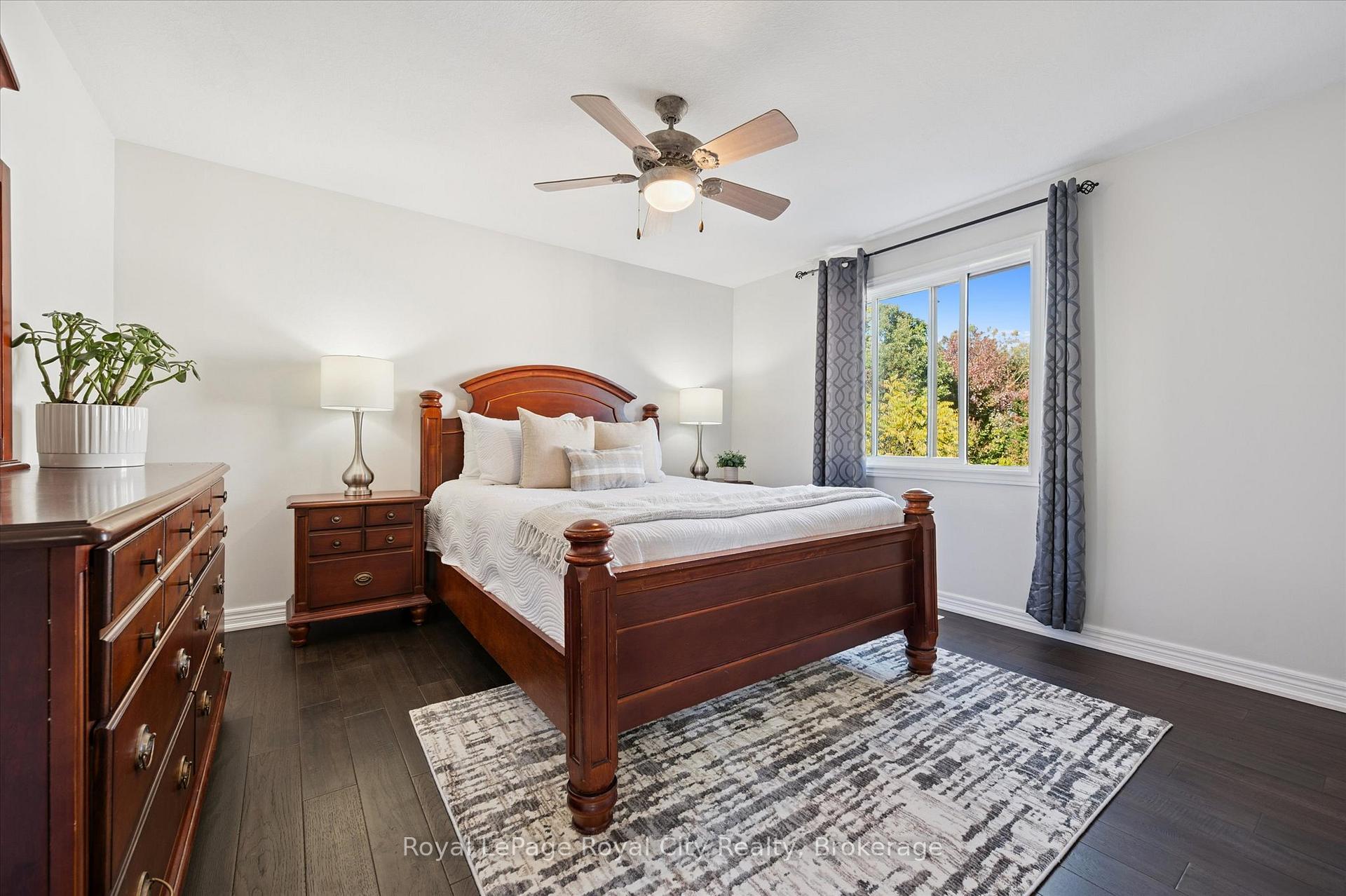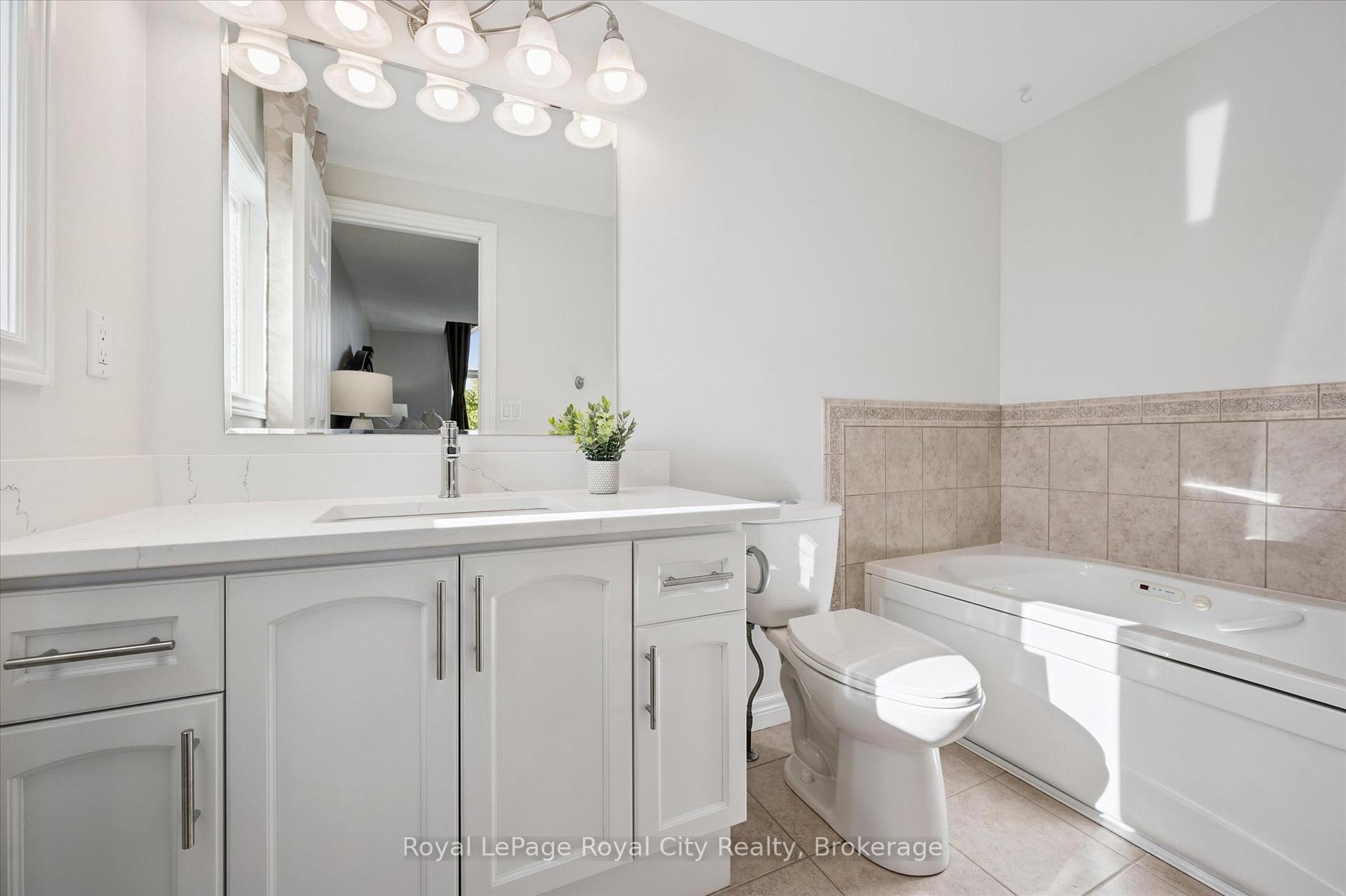 Transformed inside and out, this stunning south-end home is a showcase of quality craftsmanship, thoughtful design, and extensive upgrades. Located in one of Pine Ridge’s most desirable neighbourhoods, it offers exceptional curb appeal and a truly move-in-ready experience. Purchased in 2017 and extensively reimagined since, nearly every inch has been upgraded. The redesigned driveway, hardscape, and professional landscaping complement the home’s distinctive architecture. Inside, brand-new vinyl flooring (2025) anchors the open-concept main level. The fully renovated kitchen features quartz countertops, full-height cabinetry with glass accents, a walk-in pantry, centre island, and stainless steel appliances (2020-21). A three-sided fireplace connects the kitchen and living room, while patio doors open to a spacious deck ideal for entertaining. Upstairs, hardwood flooring replaces all carpet, including the staircase. The primary suite offers engineered hardwood, a walk-in closet, replaced arched windows, and an updated ensuite with quartz vanity and jetted tub. Two additional bedrooms with hardwood floors share a fully renovated main bath. The finished basement adds a rec room, laundry with cabinetry and sink, built-in shelving in the cold room, generous storage, a bathroom rough-in, and a rare attic-style loft for additional storage. Major system upgrades include furnace, A/C, and tankless water heater (2018), metal roof, replaced windows, owned water softener, refreshed paint, and built-in garage shelving. This is not simply a well-cared-for home – it is a thoroughly renovated residence where the investment has already been made for you! Located on a quiet street in Guelph’s sought-after south end, just steps to conservation lands, scenic trails, excellent schools, parks, and everyday amenities, this home delivers location, luxury, and lasting value. This is more than an upgrade – it’s a complete transformation!