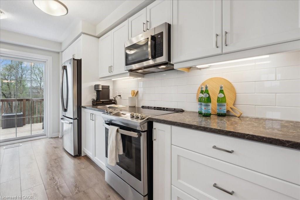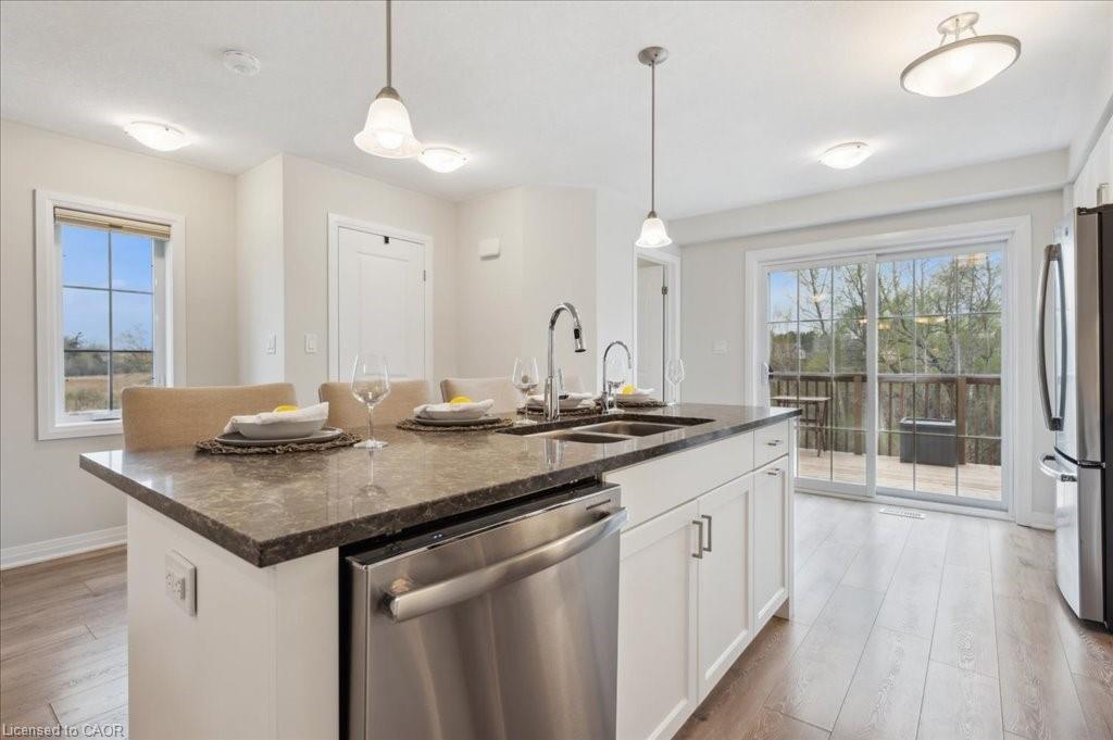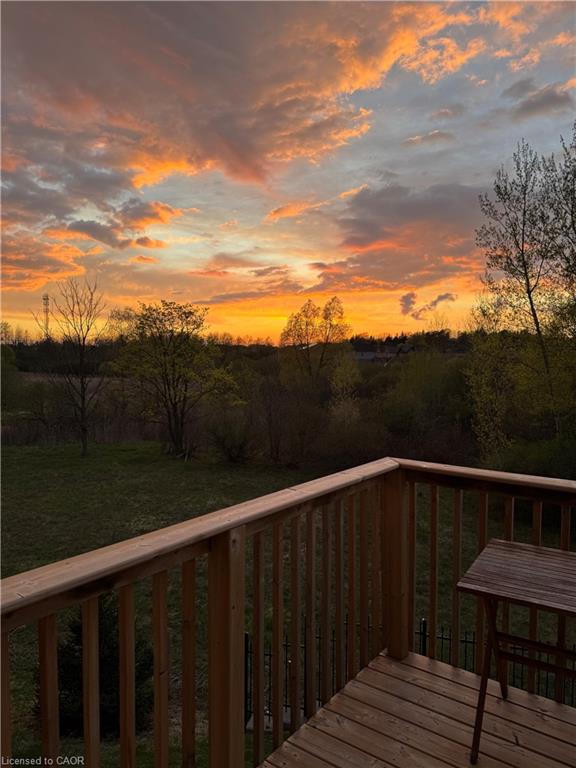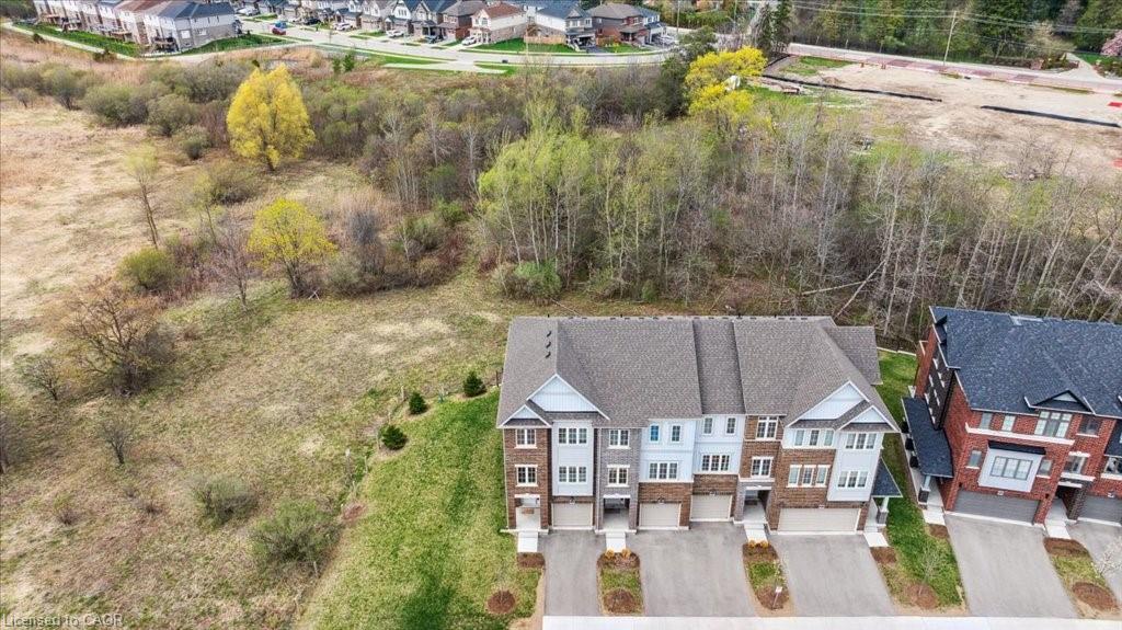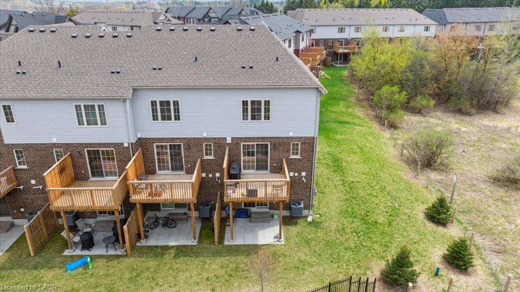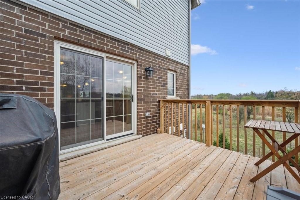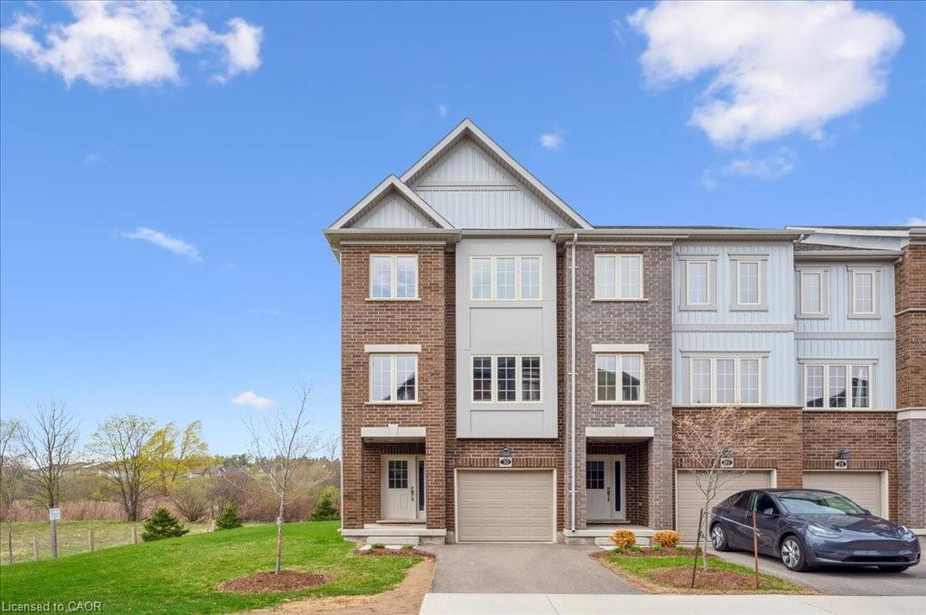 Amazing views, sunsets and privacy! Welcome to #30-311 Woolwich Street in River Ridge, one of Waterloo’s most desirable enclaves where upscale living and natural beauty meet. This spacious 3-storey end-unit townhome offers over 2,000 sq ft of modern living space, thoughtfully designed for everyday comfort and function. The second level boasts a bright, open-concept living and dining area, complete with a chef-inspired kitchen featuring quartz countertops, stainless steel appliances, a large island with bar seating, ample storage, and sliding doors leading to an oversized deck that overlooks the fields and trees of the conservation area. A convenient 2-piece powder room completes this level, perfect for entertaining. Upstairs, you’ll find three bedrooms, including a primary suite with a walk-in closet and ensuite with glass shower, plus a stylish main bath for family or guests. The ground level includes direct garage access, coat closet, utility room, and a flexible bonus space ideal for a home gym, office, or den, with a walkout to a private lower patio. With end unit perks of amazing natural light while also being situated next to greenspace, the daily tree lined views, makes this property truly something special! Located just minutes from Kiwanis Park, the Grand River, scenic trails, top-rated schools, shopping, highway access, and a short commute to Guelph, this home offers executive living with unbeatable views and a nature-rich lifestyle that you don’t want to miss out on!