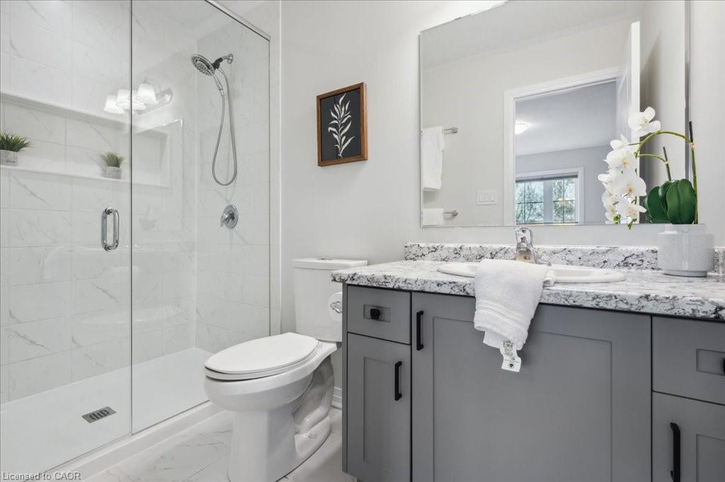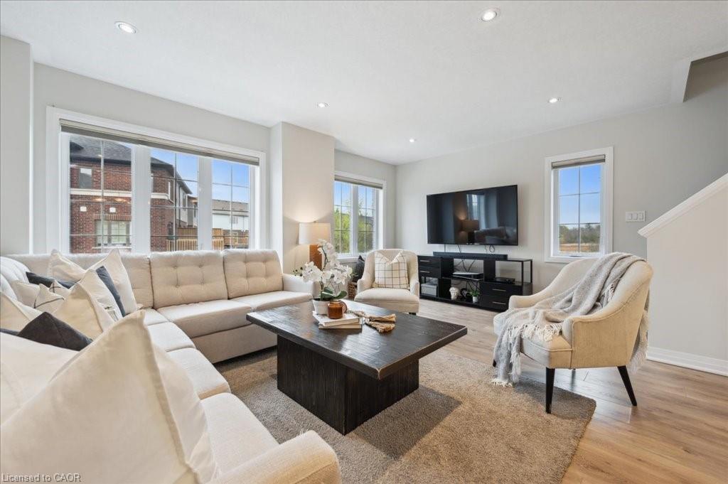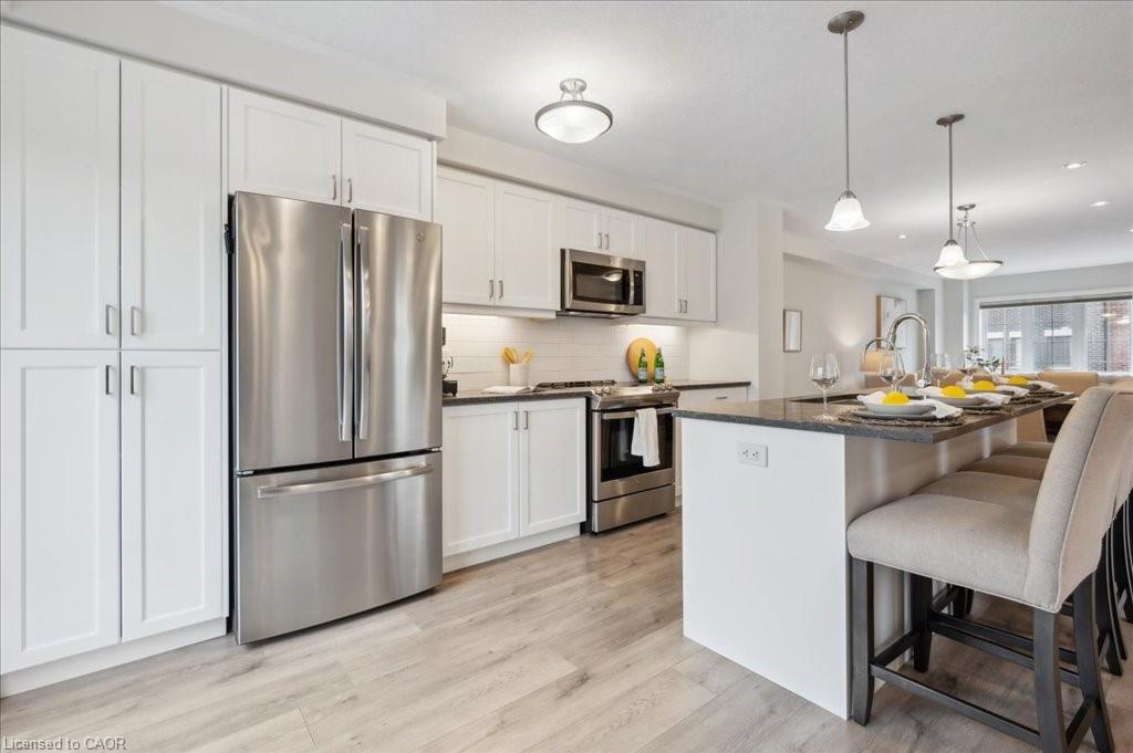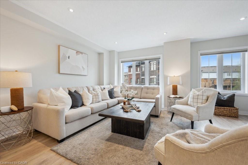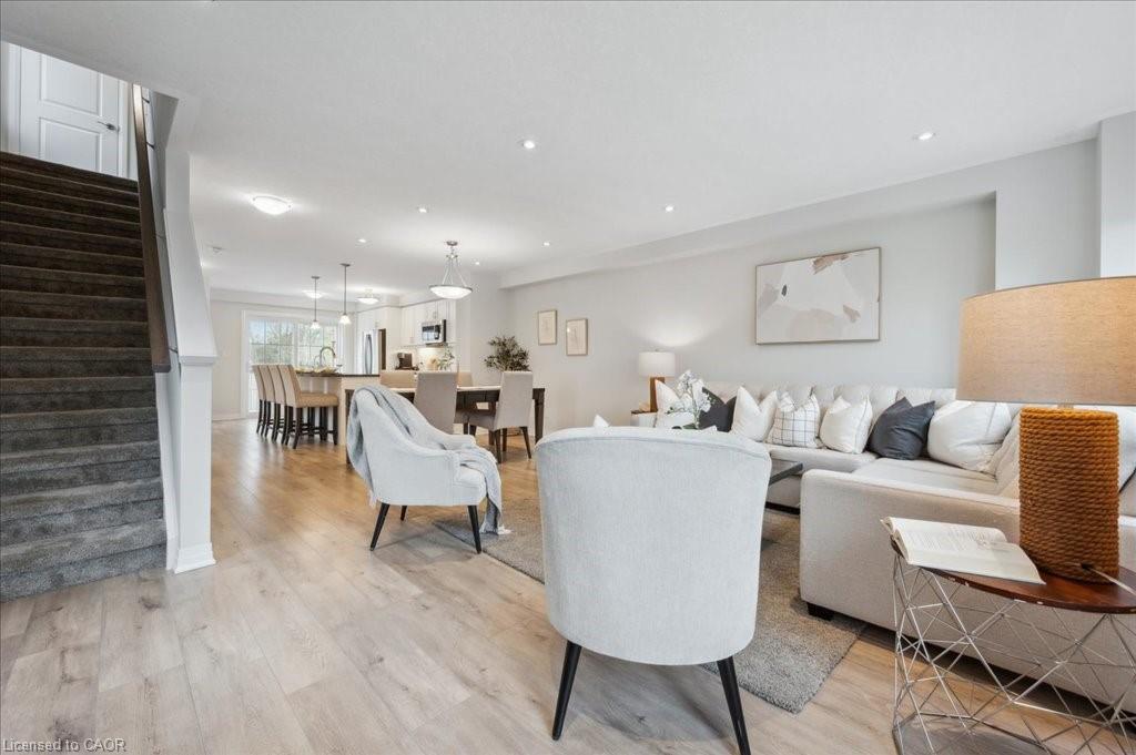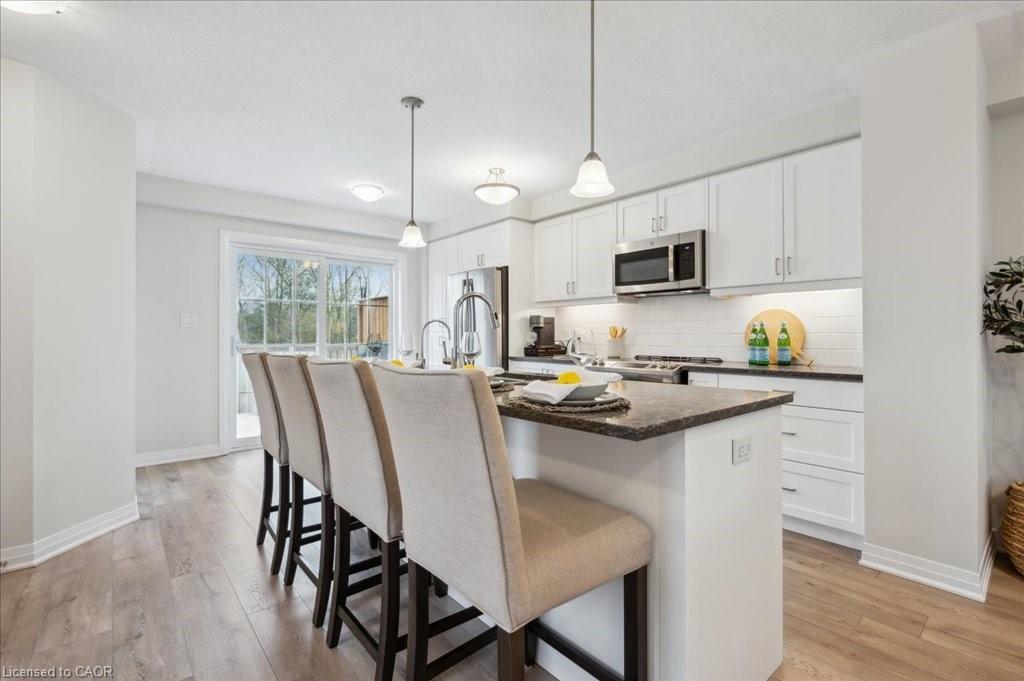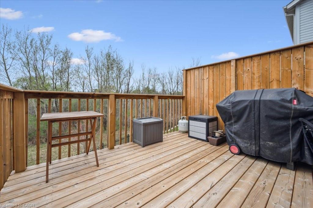 Amazing views, sunsets and privacy! Welcome to #30-311 Woolwich Street in River Ridge, one of Waterloo’s most desirable enclaves where upscale living and natural beauty meet. This spacious 3-storey end-unit townhome offers over 2,000 sq ft of modern living space, thoughtfully designed for everyday comfort and function. The second level boasts a bright, open-concept living and dining area, complete with a chef-inspired kitchen featuring quartz countertops, stainless steel appliances, a large island with bar seating, ample storage, and sliding doors leading to an oversized deck that overlooks the fields and trees of the conservation area. A convenient 2-piece powder room completes this level, perfect for entertaining. Upstairs, you’ll find three bedrooms, including a primary suite with a walk-in closet and ensuite with glass shower, plus a stylish main bath for family or guests. The ground level includes direct garage access, coat closet, utility room, and a flexible bonus space ideal for a home gym, office, or den, with a walkout to a private lower patio. With end unit perks of amazing natural light while also being situated next to greenspace, the daily tree lined views, makes this property truly something special! Located just minutes from Kiwanis Park, the Grand River, scenic trails, top-rated schools, shopping, highway access, and a short commute to Guelph, this home offers executive living with unbeatable views and a nature-rich lifestyle that you don’t want to miss out on!