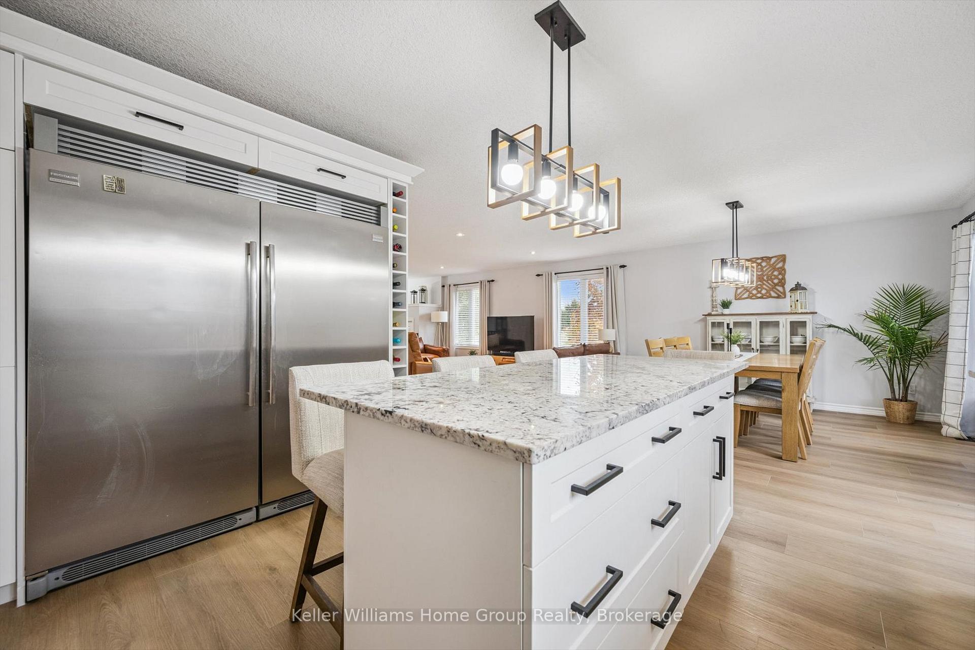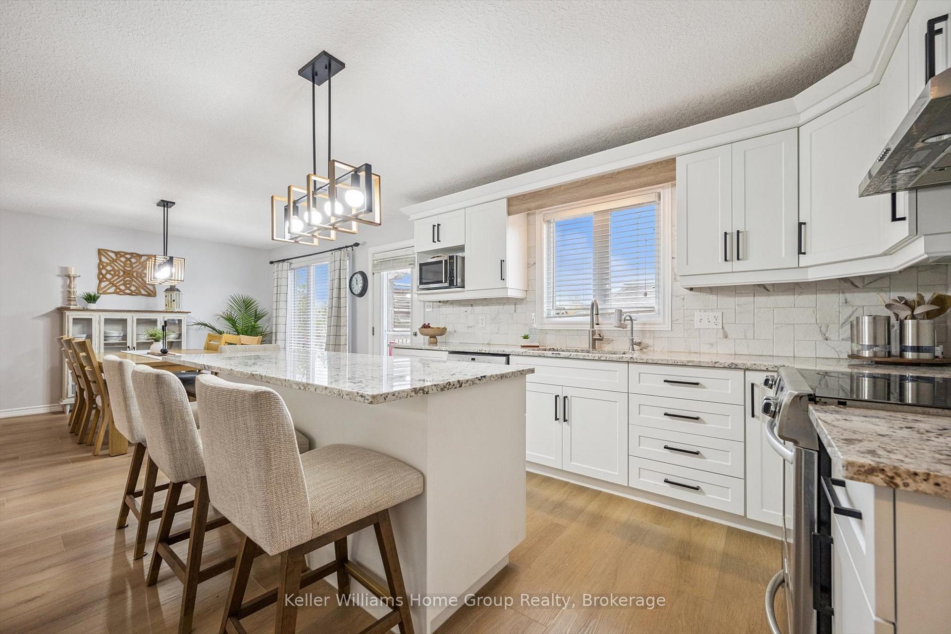 Luxurious Living on a Prime Corner Lot in Beautiful Elora. Welcome to this exceptional, newly upgraded bungalow nestled on a sought-after corner lot in the heart of Elora. This meticulously renovated home offers an impressive blend of modern design, functionality, and luxury – perfect for families, multi-generational living, or discerning buyers seeking elegance and space. Step inside to an open-concept main floor flooded with natural light, where a brand-new designer kitchen awaits – complete with gleaming granite countertops, sleek cabinetry, and premium fixtures. The expansive living and dining areas feature seamless flow and are anchored by stylish new luxury vinyl plank flooring throughout. Offering two spacious bedrooms upstairs, including a primary retreat with its own ensuite, and a three-bedroom lower level, this home effortlessly accommodates larger households or guest stays. The lower level continues to impress with a fully finished oversized recreation room, an additional 3-piece bathroom, and abundant storage. A standout feature is the oversized attached double garage – not only spacious enough for two vehicles but also equipped with a bonus workshop area, ideal for hobbyists or home-based professionals. Outdoors, enjoy the beautifully tiered backyard oasis featuring two expansive decks (16’x12′ and 12’x12′), perfect for hosting gatherings or enjoying peaceful mornings in privacy. Located minutes from Elora’s vibrant downtown, walking trails, and schools, this home truly offers the best of serene suburban living with refined finishes and thoughtful upgrades throughout.