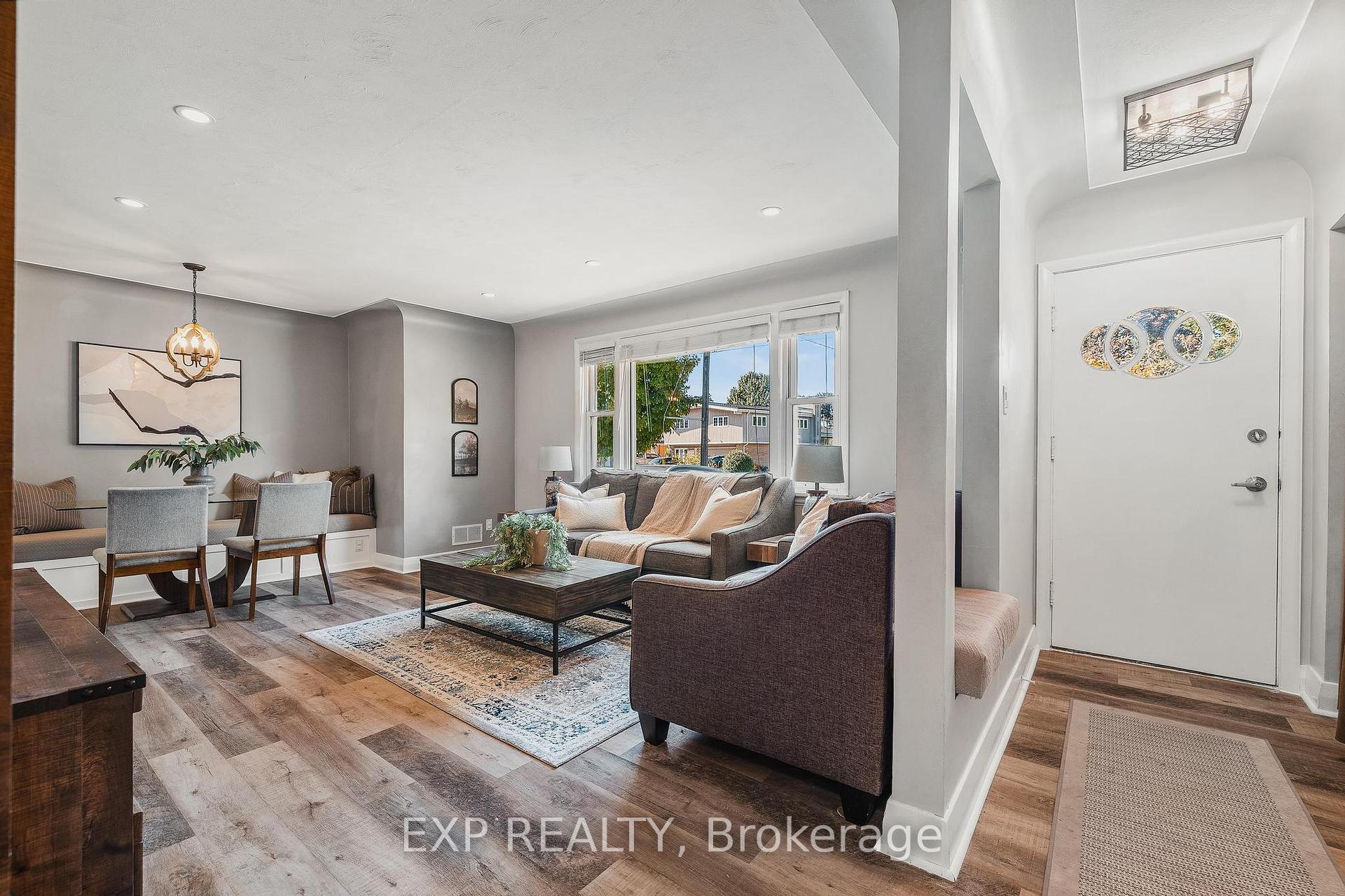 Welcome to 300 Melrose Avenue in Kitchener. This updated bungalow offers a blend of charm and modern convenience, set on a generous lot with extra parking and a backyard designed for both relaxation and play. Inside, the home features a refreshed kitchen, updated bathroom, new flooring, pot lighting, and stylish fixtures, along with all new appliances. The partially finished basement provides flexible space to suit your needs. Recent upgrades include a high-efficiency furnace and central air (2025), a wrapped foundation, sump pump, and a widened driveway completed in 2022. Outside, youll find maple trees in both the front and backyard, along with a dedicated play space featuring certified playground mulch. Located within walking distance to schools, shopping, the LRT, and the Kitchener Memorial Auditorium, this home combines a convenient lifestyle with thoughtful updates throughout.