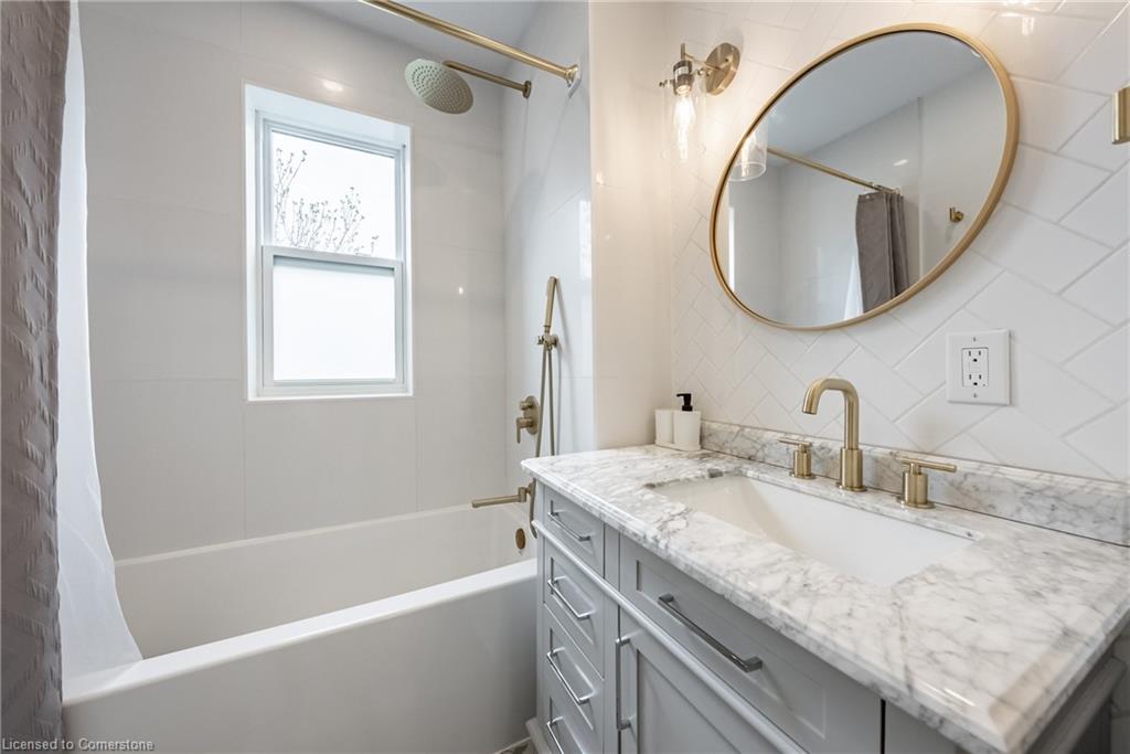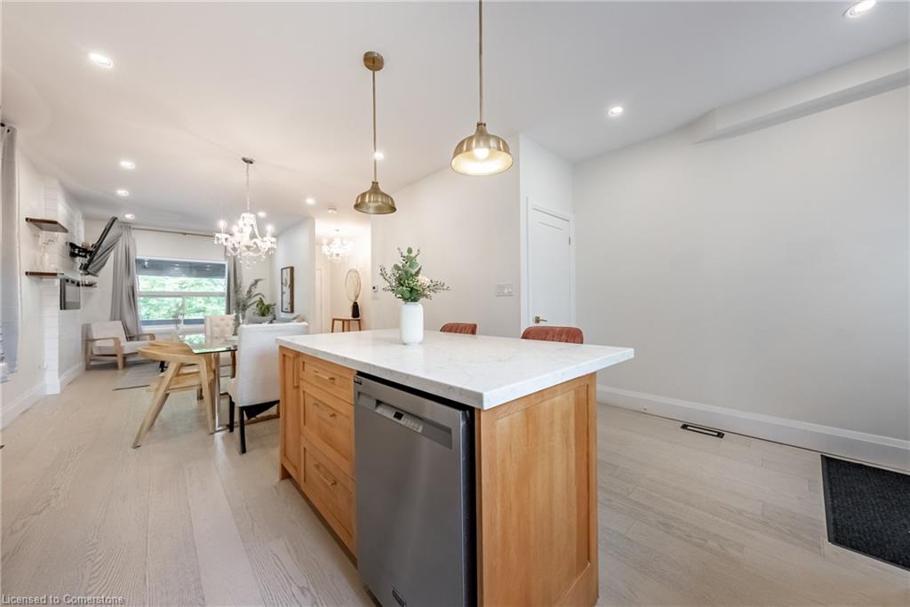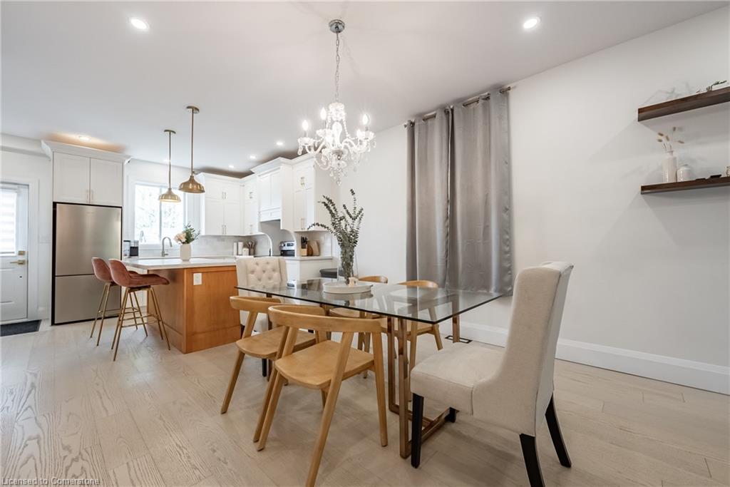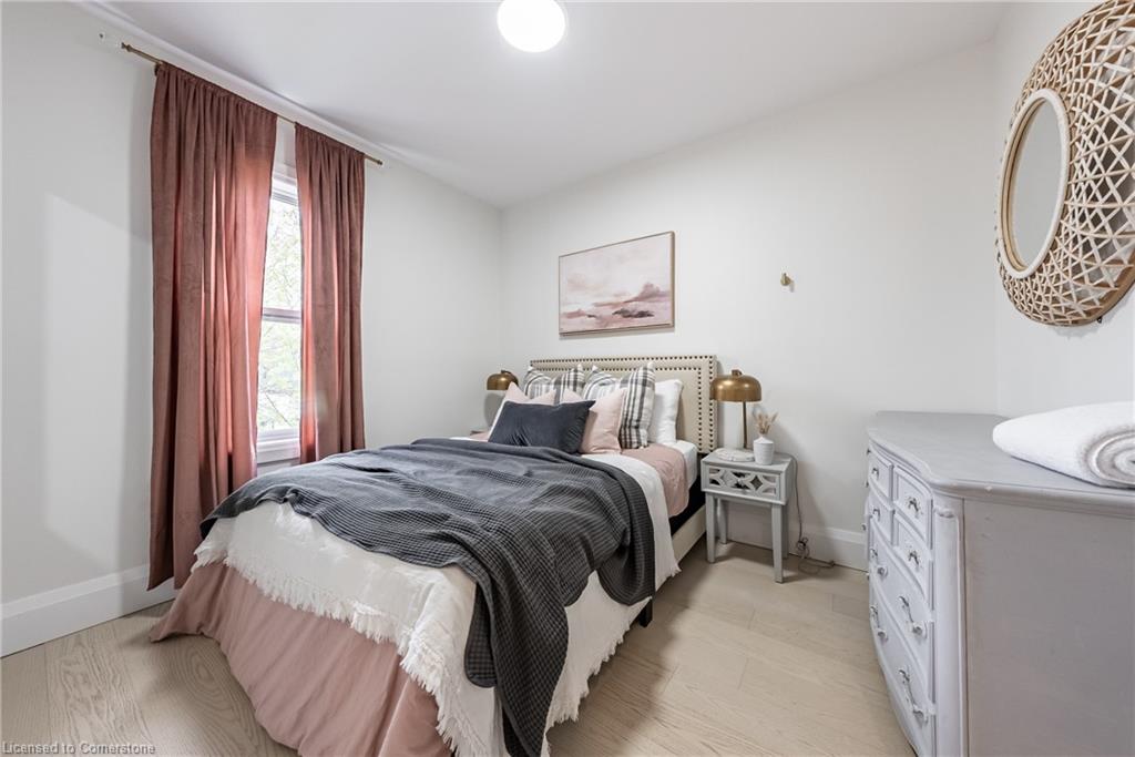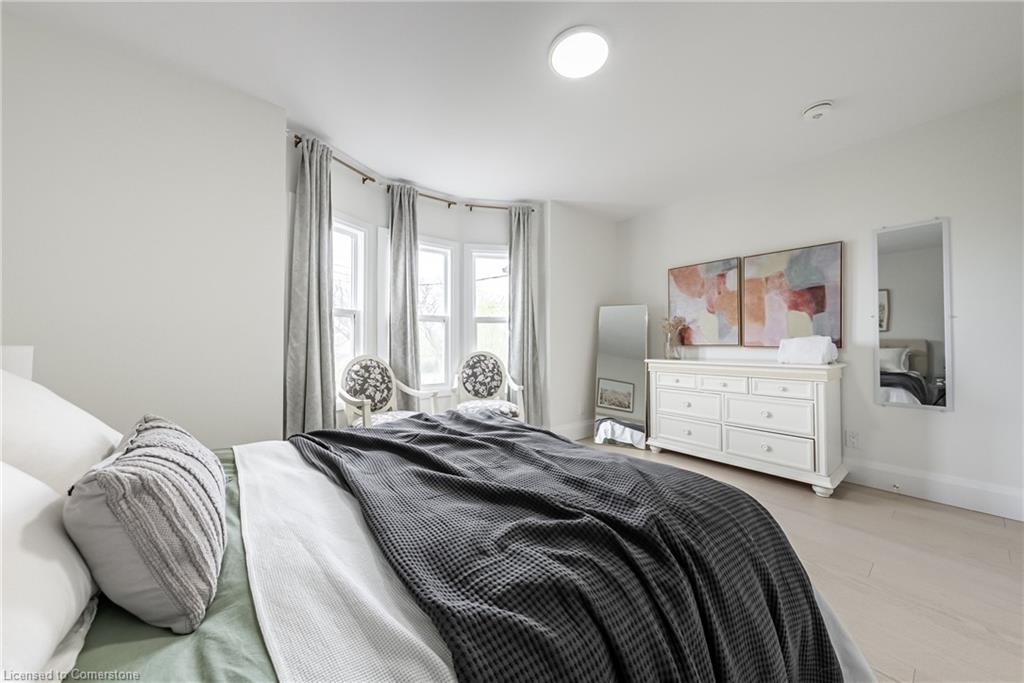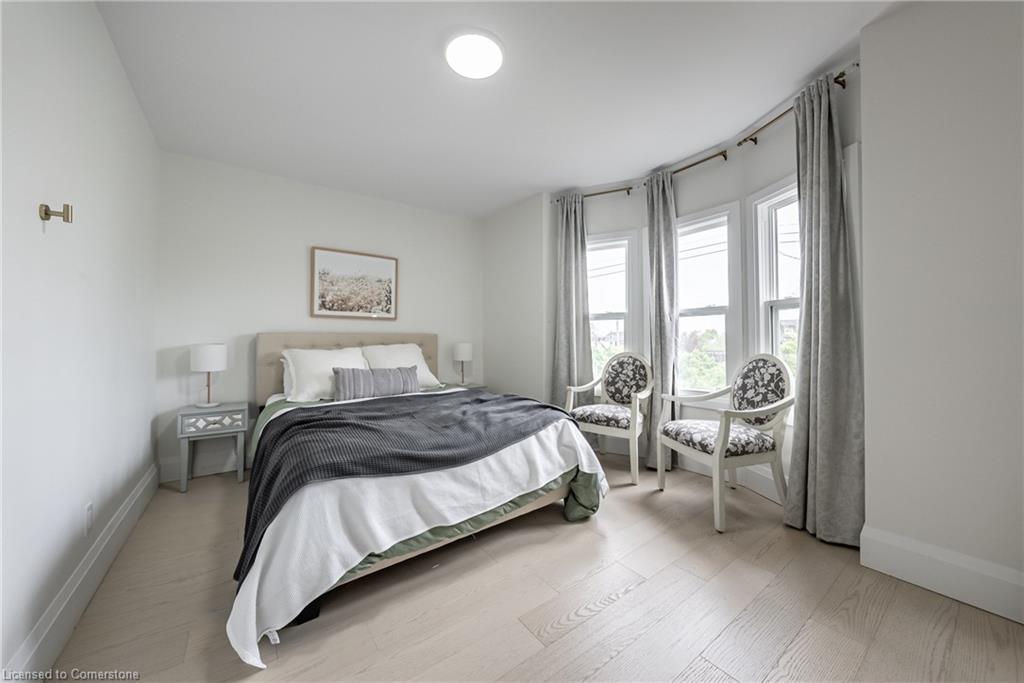 A truly breathtaking, fully renovated century home offering 5 spacious bedrooms and 2 beautifully appointed bathrooms! With its stunning and private curb appeal, this home exudes elegance and charm. Inside, you’ll be captivated by the high-quality finishes, including engineered hardwood flooring, custom cabinetry, and a stunning quartz countertop with an oak-wood island complemented by stylish pendant lighting. The top-of-the-line stainless steel appliances, pot lighting, and built-in electric fireplace with shiplap surround elevate the space to a whole new level. On the second floor, you’ll find 3 generously sized bedrooms, each featuring large windows and ample closet space. A luxurious 4-piece bathroom adds to the sense of sophistication. The second and third floors showcase black spindles and a modern railing, with 2 additional bedrooms that can easily double as a home office, recreation area, or exercise rooms, perfect for versatile living spaces. The full, partially finished basement features a separate entrance, large windows that fill the space with natural light, freshly updated flooring, a convenient laundry area, and a gorgeous 2-piece bathroom.