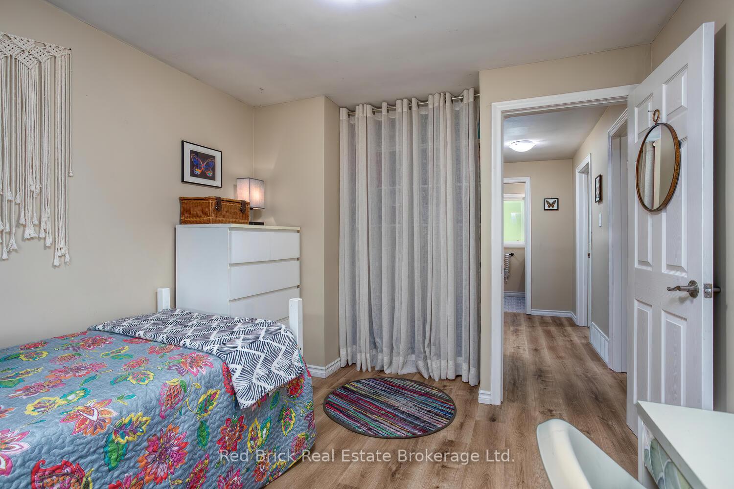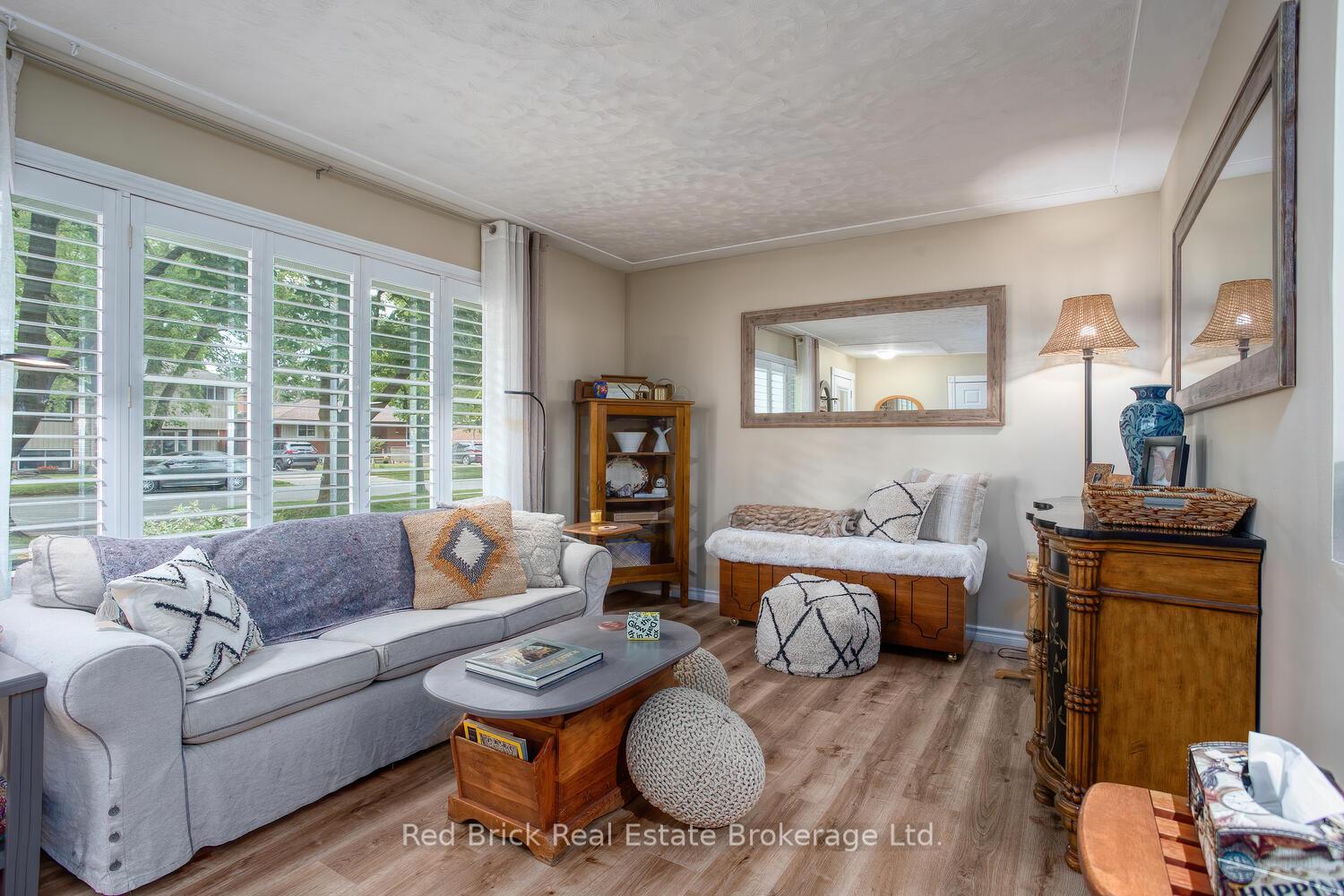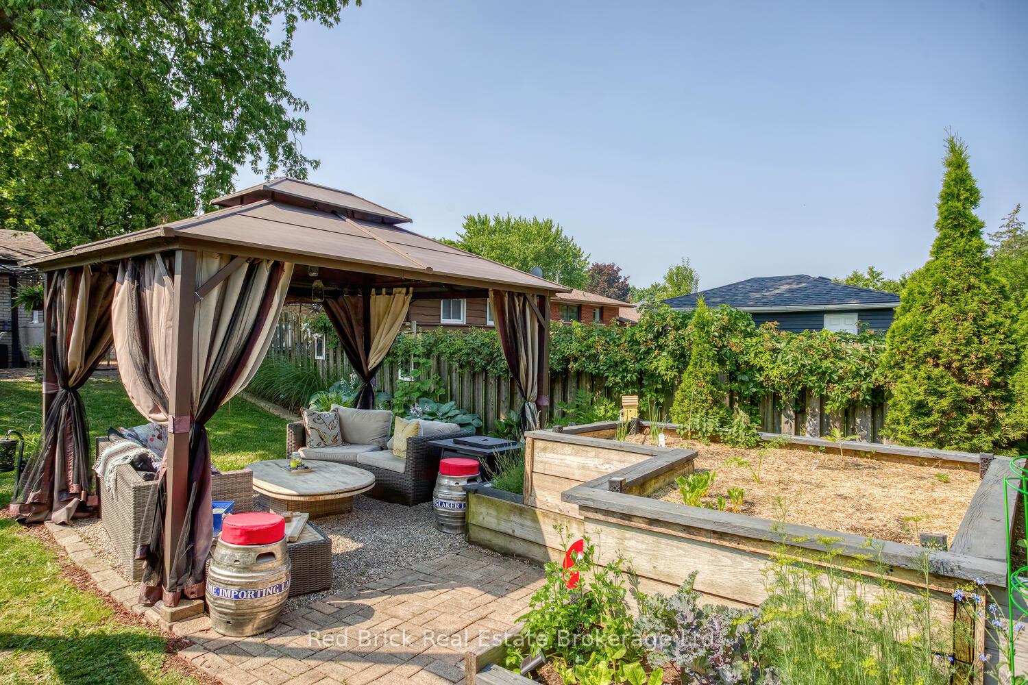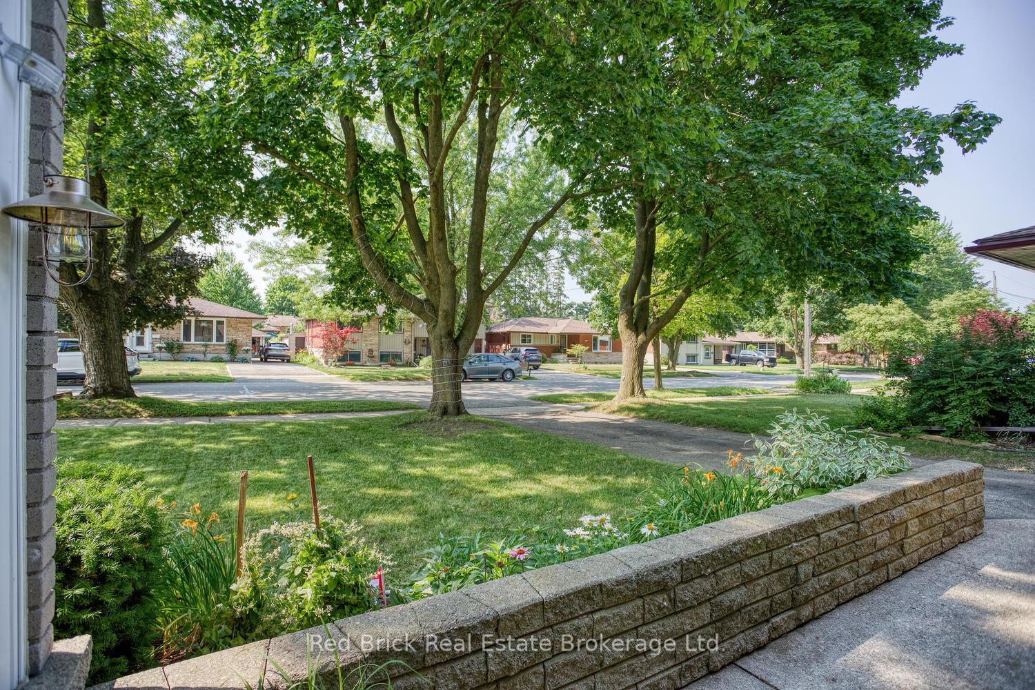 Updated 3 Bedroom SideSplit in Stanley Park with backyard oasis! Perfectly located in the leafy, friendly Stanley Park neighborhood, walk to schools, parks, shopping and conservation area. This updated 3 bedroom sidesplit has a bright, open main floor layout, a huge eat in kitchen with new sliding glass doors, 3 generous bedrooms (the principle bedroom fits a king size bed!), an updated bathroom, and ample closet and storage spaces. The basement is nice and bright thanks to two big windows and has a large finished rec room big enough to also be an office, gym or guest bedroom. The unfinished portion has great storage ( a fabulous crawl storage space under the kitchen) and a huge built in work bench. This home boasts a glorious 56×134 ft lot, fully fenced with delightful play structure, greenhouse, chicken coop and sheds surrounded by mature perennial gardens. Many places to sit and enjoy your privacy or host friends and family for a bbq, picnic or garden party. You may never want to leave your backyard! Furnace and AC 2018, sliding glass doors 2025, luxury vinyl plank flooring 2025, freshly painted throughout. Come and see it today!