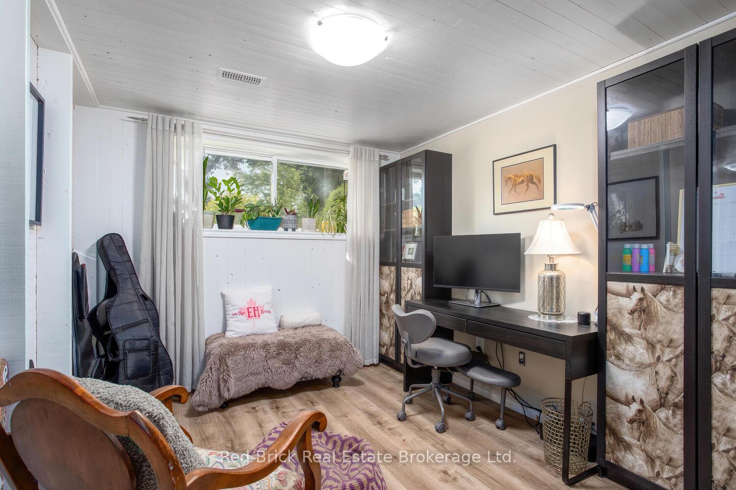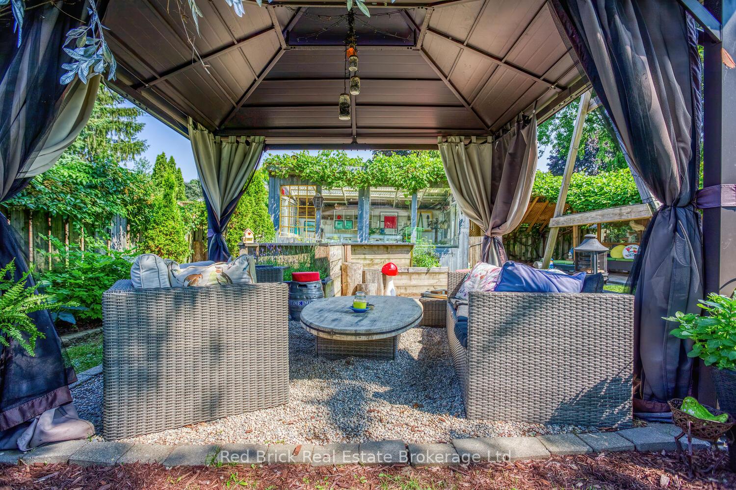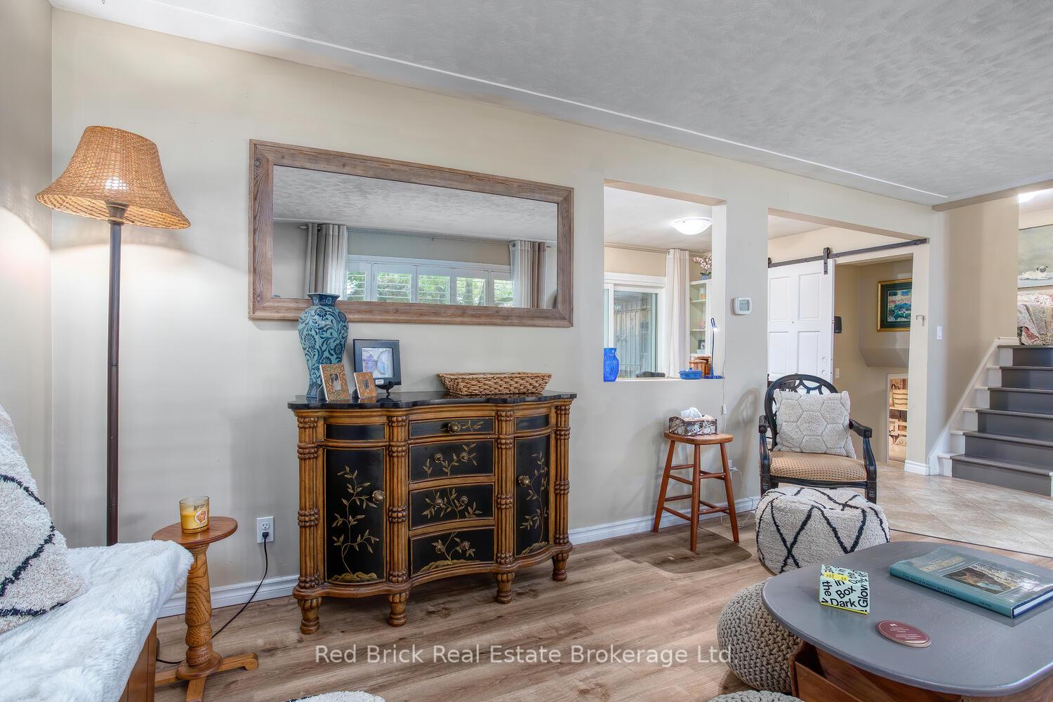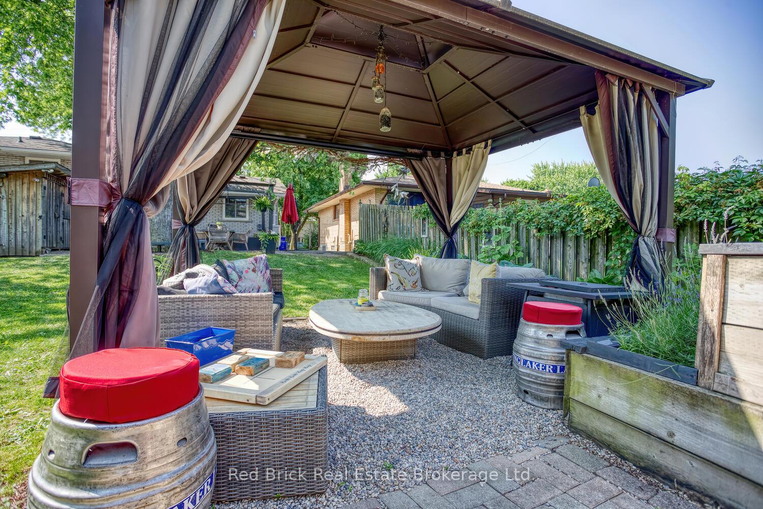 Updated 3 Bedroom SideSplit in Stanley Park with backyard oasis! Perfectly located in the leafy, friendly Stanley Park neighborhood, walk to schools, parks, shopping and conservation area. This updated 3 bedroom sidesplit has a bright, open main floor layout, a huge eat in kitchen with new sliding glass doors, 3 generous bedrooms (the principle bedroom fits a king size bed!), an updated bathroom, and ample closet and storage spaces. The basement is nice and bright thanks to two big windows and has a large finished rec room big enough to also be an office, gym or guest bedroom. The unfinished portion has great storage ( a fabulous crawl storage space under the kitchen) and a huge built in work bench. This home boasts a glorious 56×134 ft lot, fully fenced with delightful play structure, greenhouse, chicken coop and sheds surrounded by mature perennial gardens. Many places to sit and enjoy your privacy or host friends and family for a bbq, picnic or garden party. You may never want to leave your backyard! Furnace and AC 2018, sliding glass doors 2025, luxury vinyl plank flooring 2025, freshly painted throughout. Come and see it today!