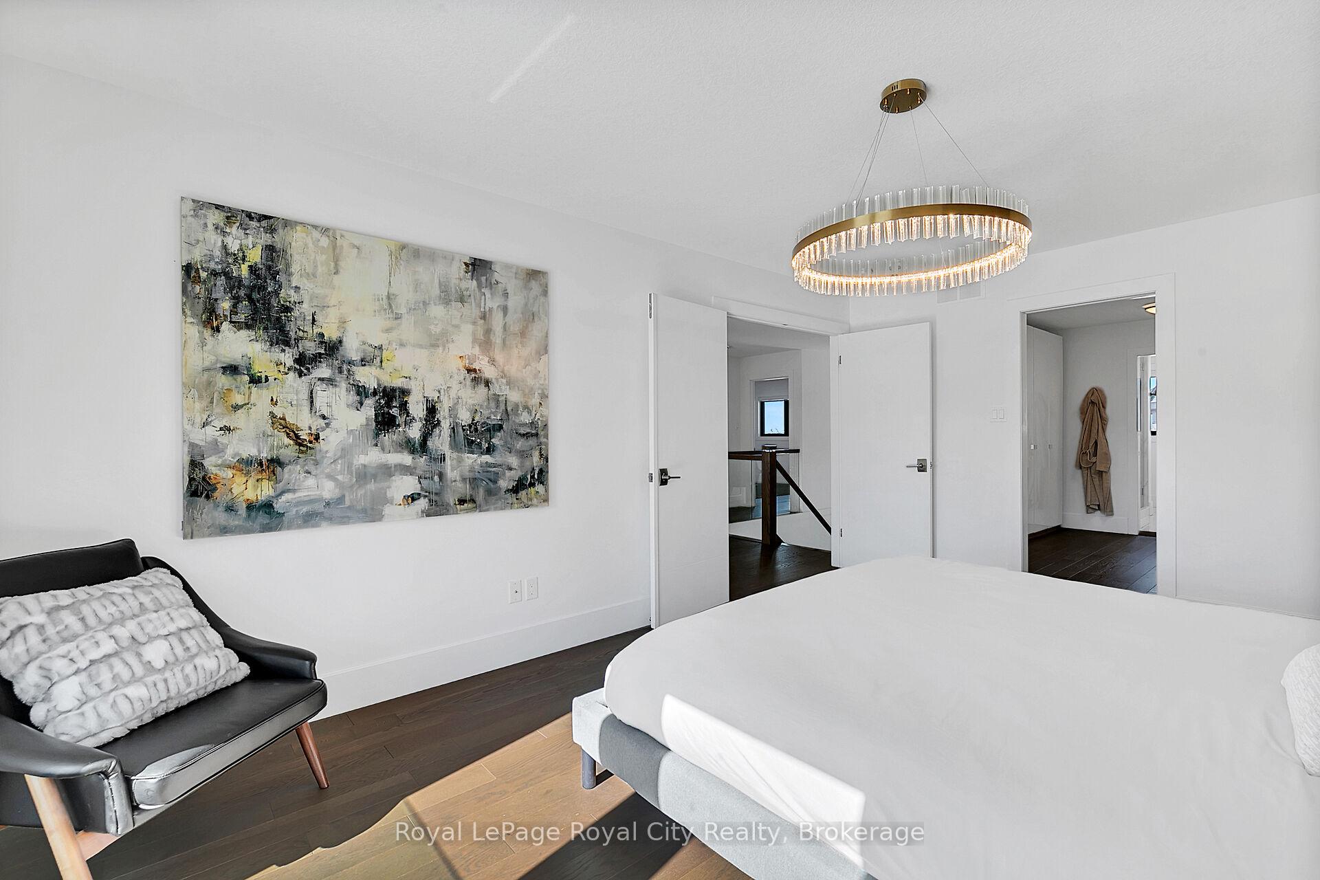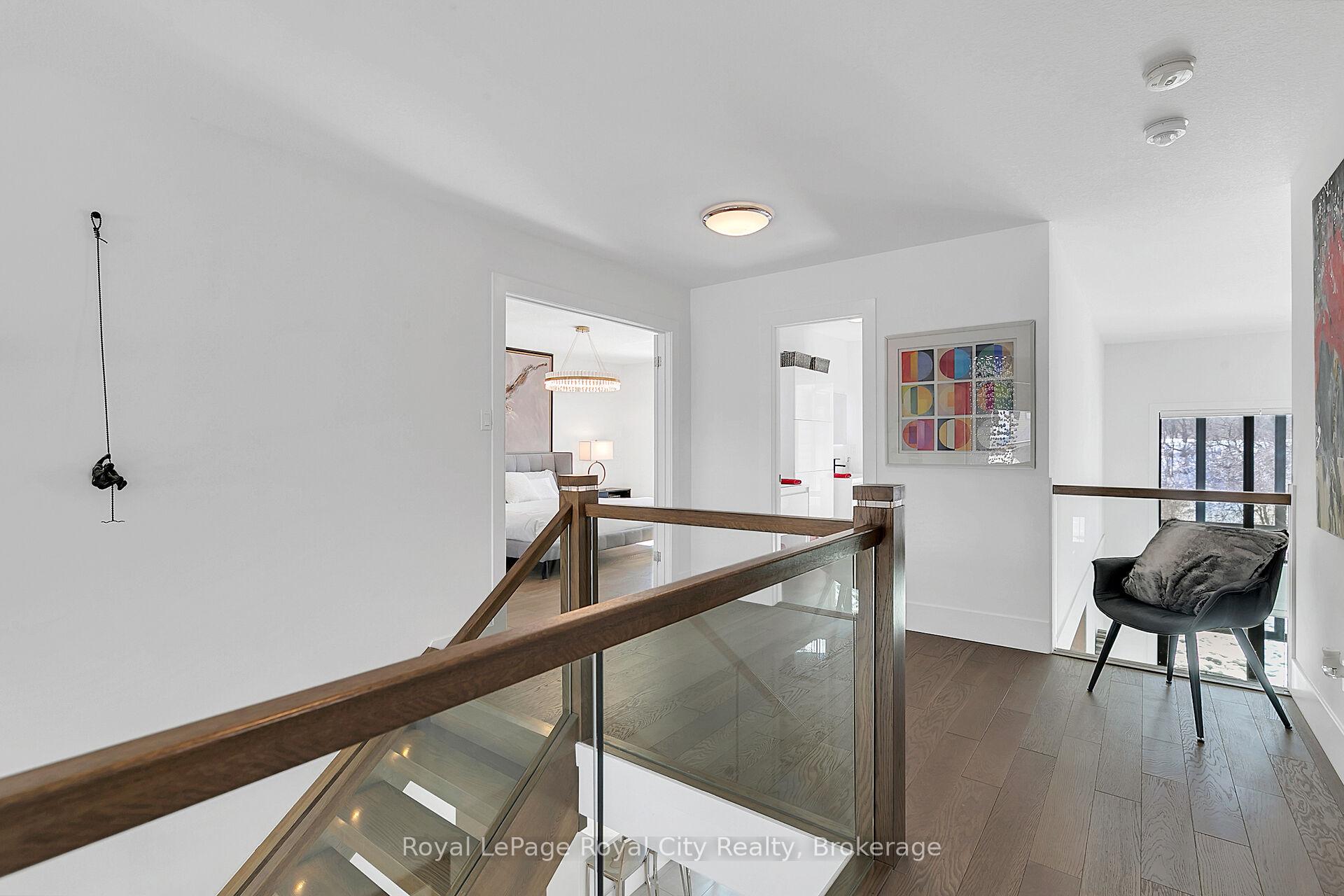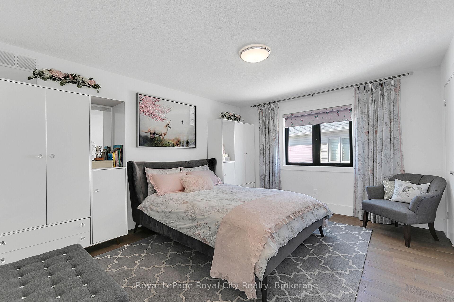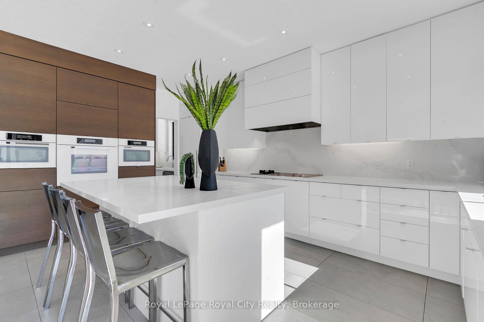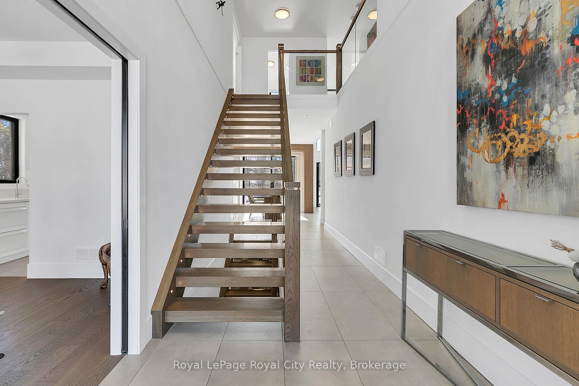 Incredibly rare south end offering! Few properties can equal the attention to detail you can expect to find in this exceptional residence. You’ll appreciate its proximity to schools, recreation, shopping and major transportation arteries, while being perfectly positioned on one of Guelphs premier south end crescents. This striking 2700+ sq ft 2 storey home is set on a massive pie shaped lot. Wait until you see the attention to the landscape design! I must say this family was well ahead of their time in design. It is hard to believe that this home has even been lived in, as it has been so meticulously maintained. Step inside and you will find a combination of a clean, understated and modern architecturally designed space for family living. As you enter, an impressive foyer showcases a grand staircase and there is a perfect home office or dining room with butlers pantry .you choose. From here, the gallery opens to the heart of the home. The custom kitchen with loads of cabinetry, granite countertops, high end appliances and breakfast island and connects to the great room and rear yard. The great room soars to 18′ and showcases handsome built-in cabinetry and custom 2 storey gas fireplace. A fabulous 2 storey sunroom complete with screens and glass provides panoramic views of the extensive landscape and enjoys perfect entertaining and dining opportunities to enjoy for 3 seasons. The scale is dramatic and the look is glamorous, but its warm and comfortable at the same time! A 2pc bath on this floor and your laundry room is convenient and accessible from the 2 car garage. Upstairs and you will find all bedrooms are a generous size. The master suite is an oasis with a luxurious spa-like bath and walk-in closet with built-ins. Two additional bedrooms on this floor share access to a 4pc bath. The bright basement offers an additional 1203 square feet including a gym, 4th bedroom, full bath, and recreation room.