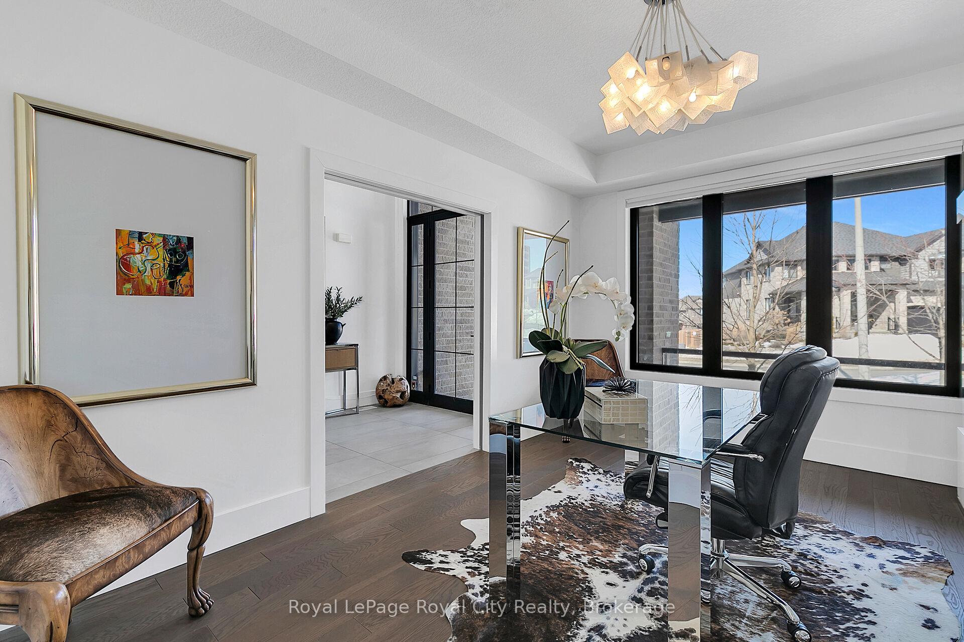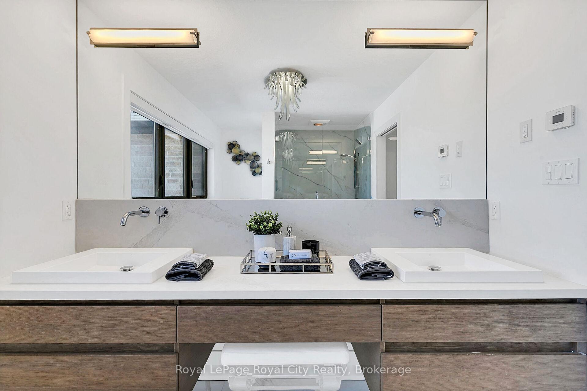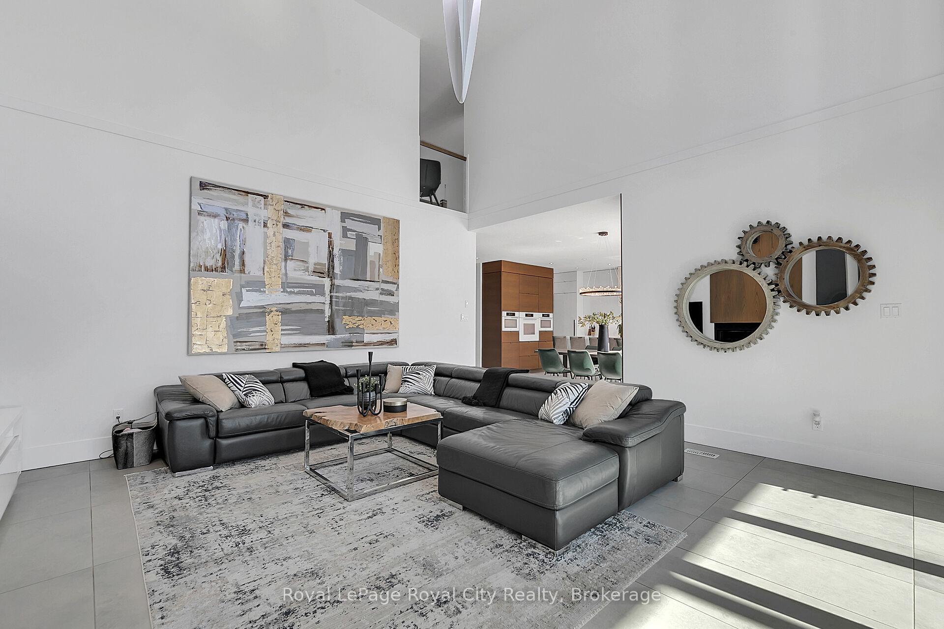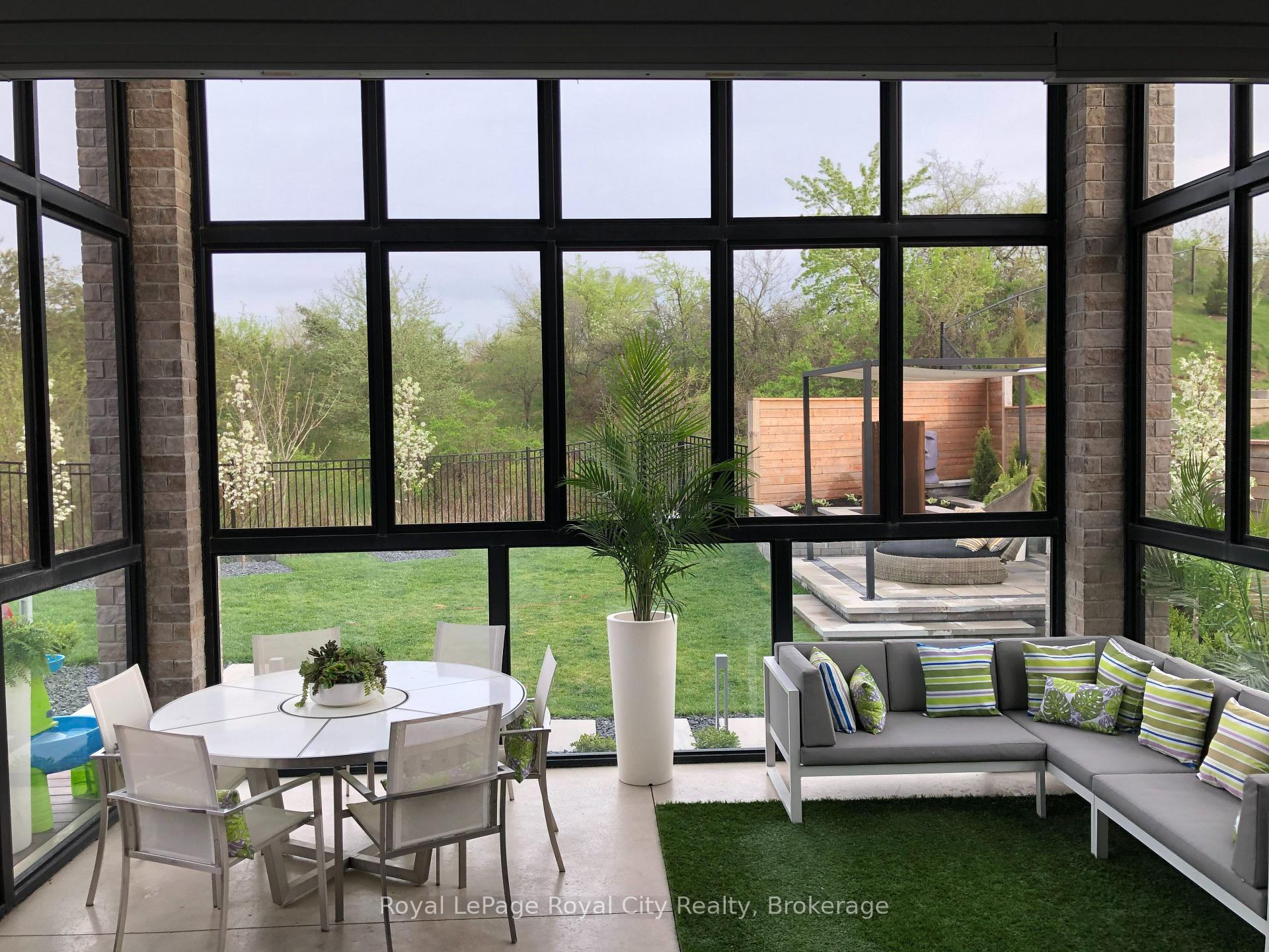 Incredibly rare south end offering! Few properties can equal the attention to detail you can expect to find in this exceptional residence. You’ll appreciate its proximity to schools, recreation, shopping and major transportation arteries, while being perfectly positioned on one of Guelphs premier south end crescents. This striking 2700+ sq ft 2 storey home is set on a massive pie shaped lot. Wait until you see the attention to the landscape design! I must say this family was well ahead of their time in design. It is hard to believe that this home has even been lived in, as it has been so meticulously maintained. Step inside and you will find a combination of a clean, understated and modern architecturally designed space for family living. As you enter, an impressive foyer showcases a grand staircase and there is a perfect home office or dining room with butlers pantry .you choose. From here, the gallery opens to the heart of the home. The custom kitchen with loads of cabinetry, granite countertops, high end appliances and breakfast island and connects to the great room and rear yard. The great room soars to 18′ and showcases handsome built-in cabinetry and custom 2 storey gas fireplace. A fabulous 2 storey sunroom complete with screens and glass provides panoramic views of the extensive landscape and enjoys perfect entertaining and dining opportunities to enjoy for 3 seasons. The scale is dramatic and the look is glamorous, but its warm and comfortable at the same time! A 2pc bath on this floor and your laundry room is convenient and accessible from the 2 car garage. Upstairs and you will find all bedrooms are a generous size. The master suite is an oasis with a luxurious spa-like bath and walk-in closet with built-ins. Two additional bedrooms on this floor share access to a 4pc bath. The bright basement offers an additional 1203 square feet including a gym, 4th bedroom, full bath, and recreation room.