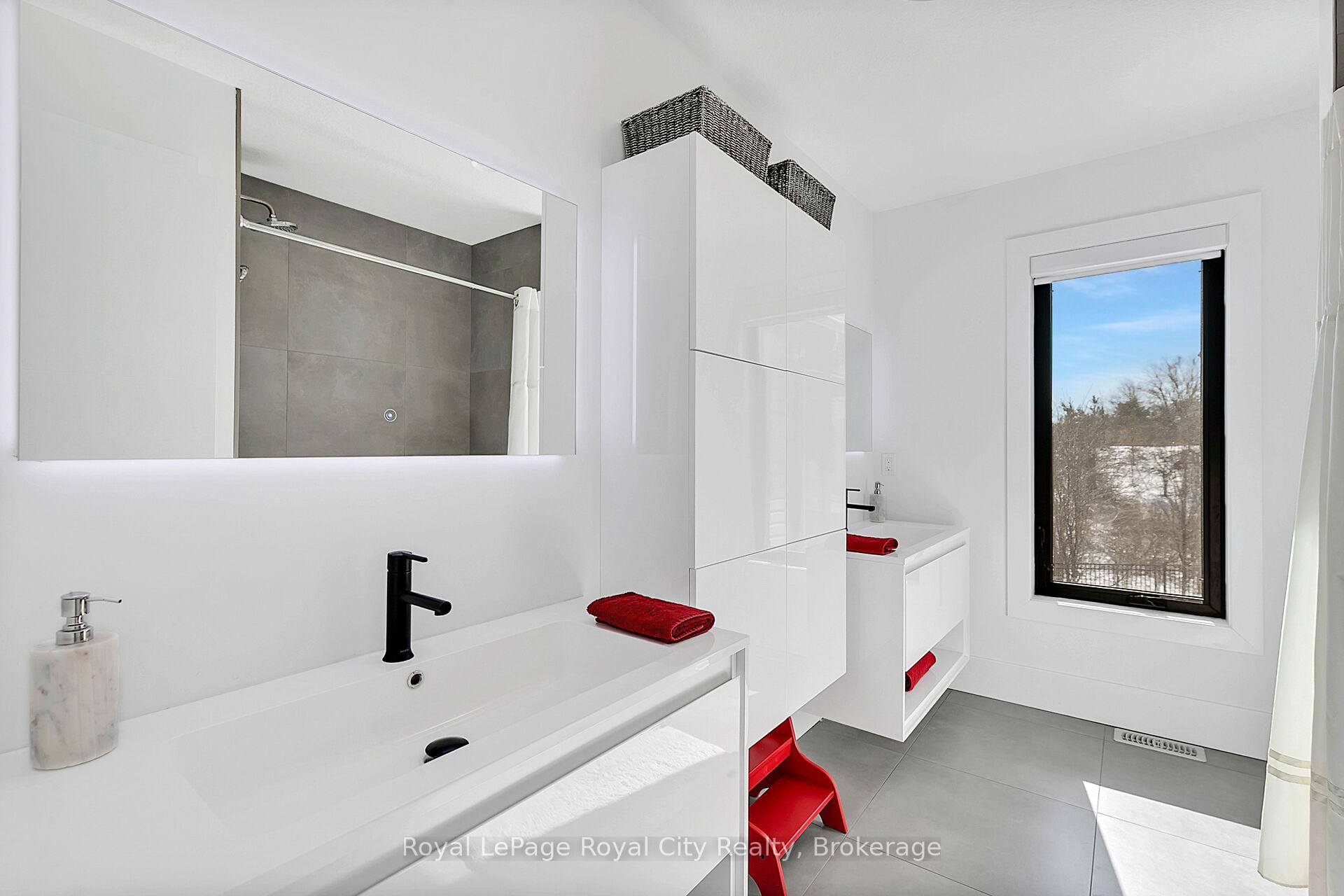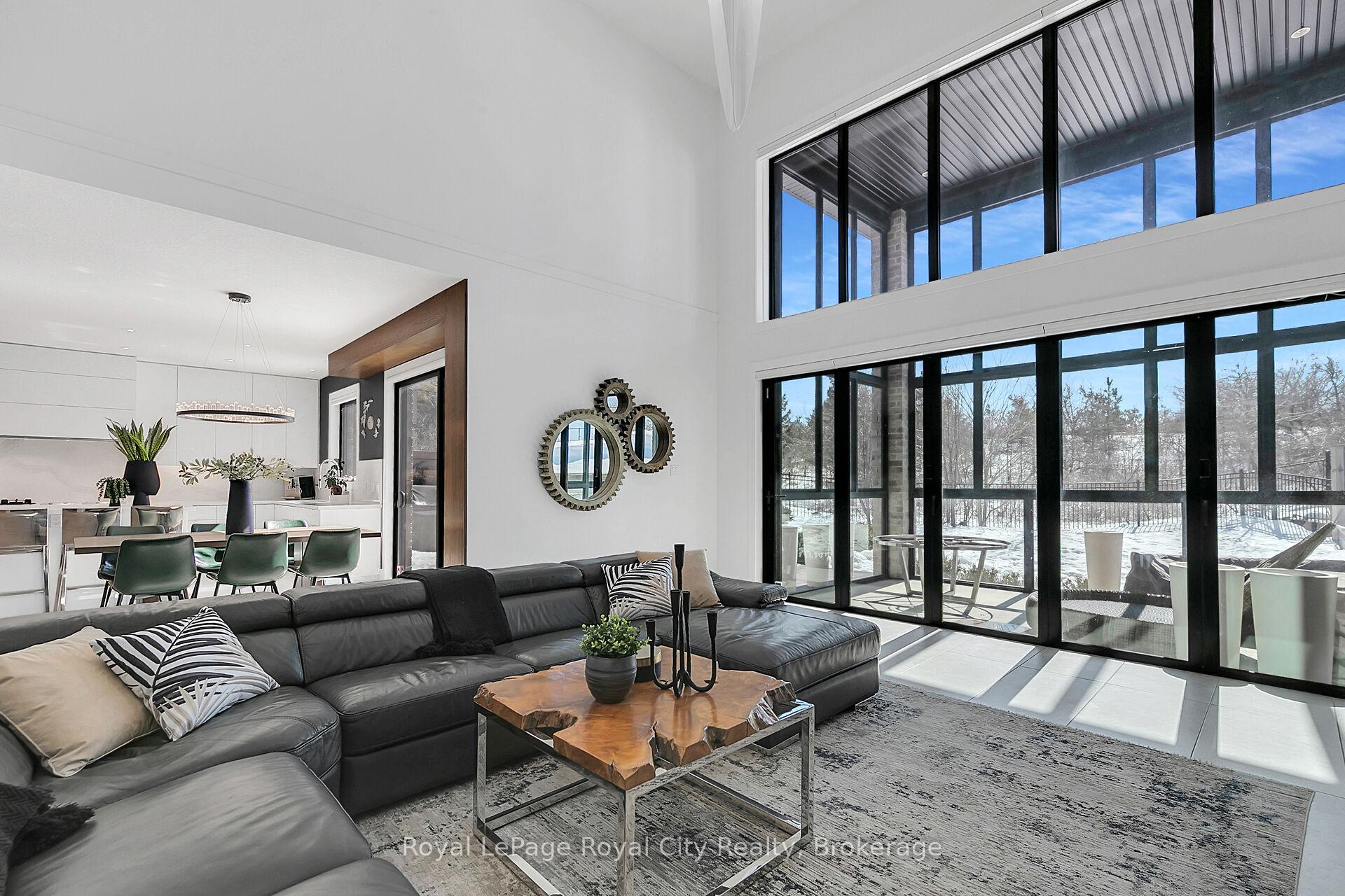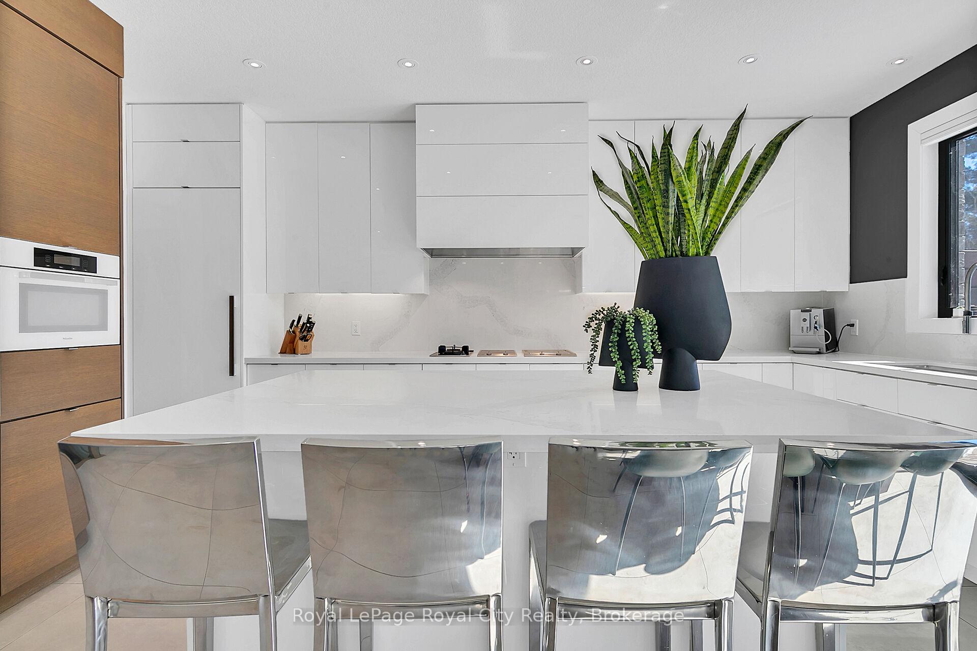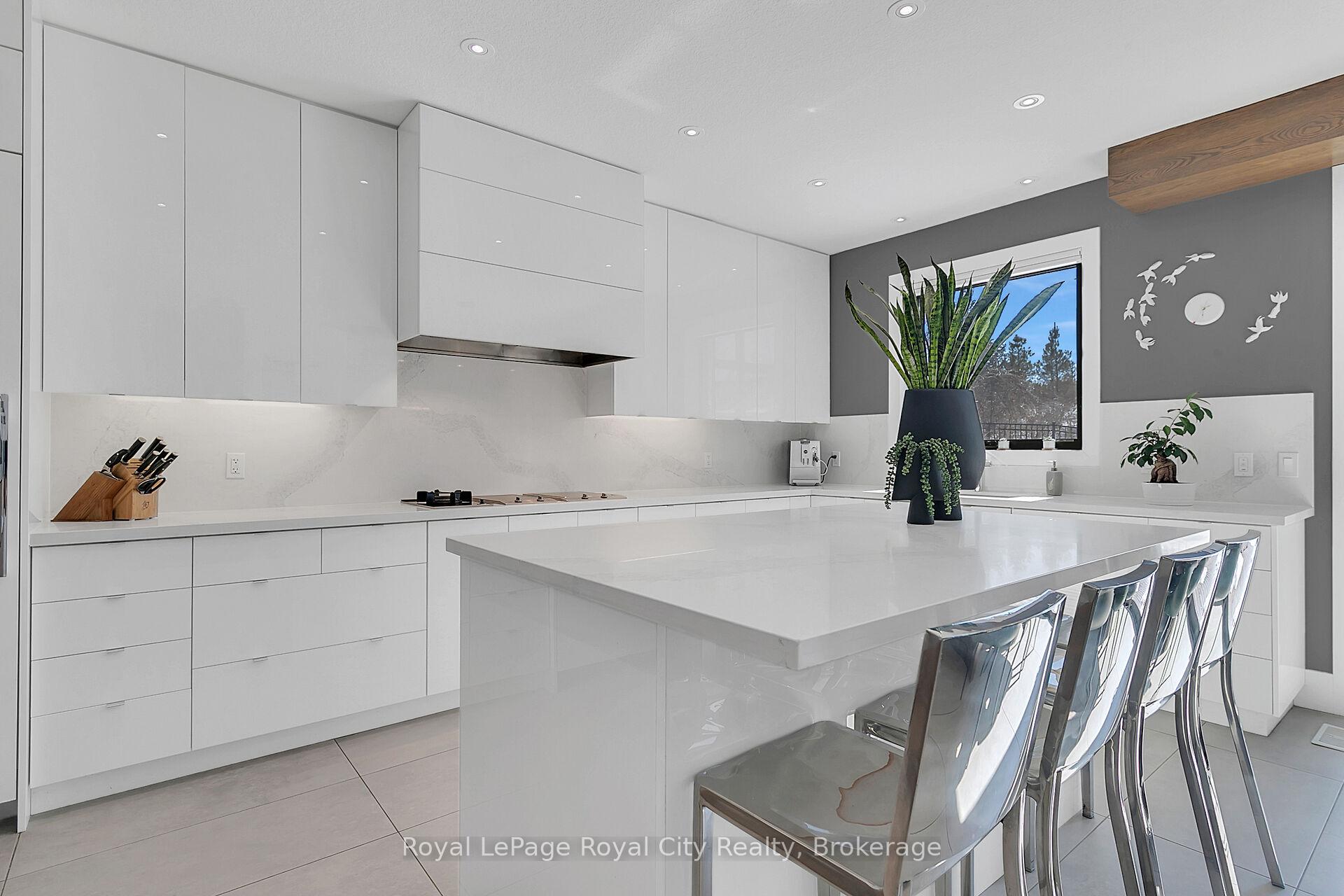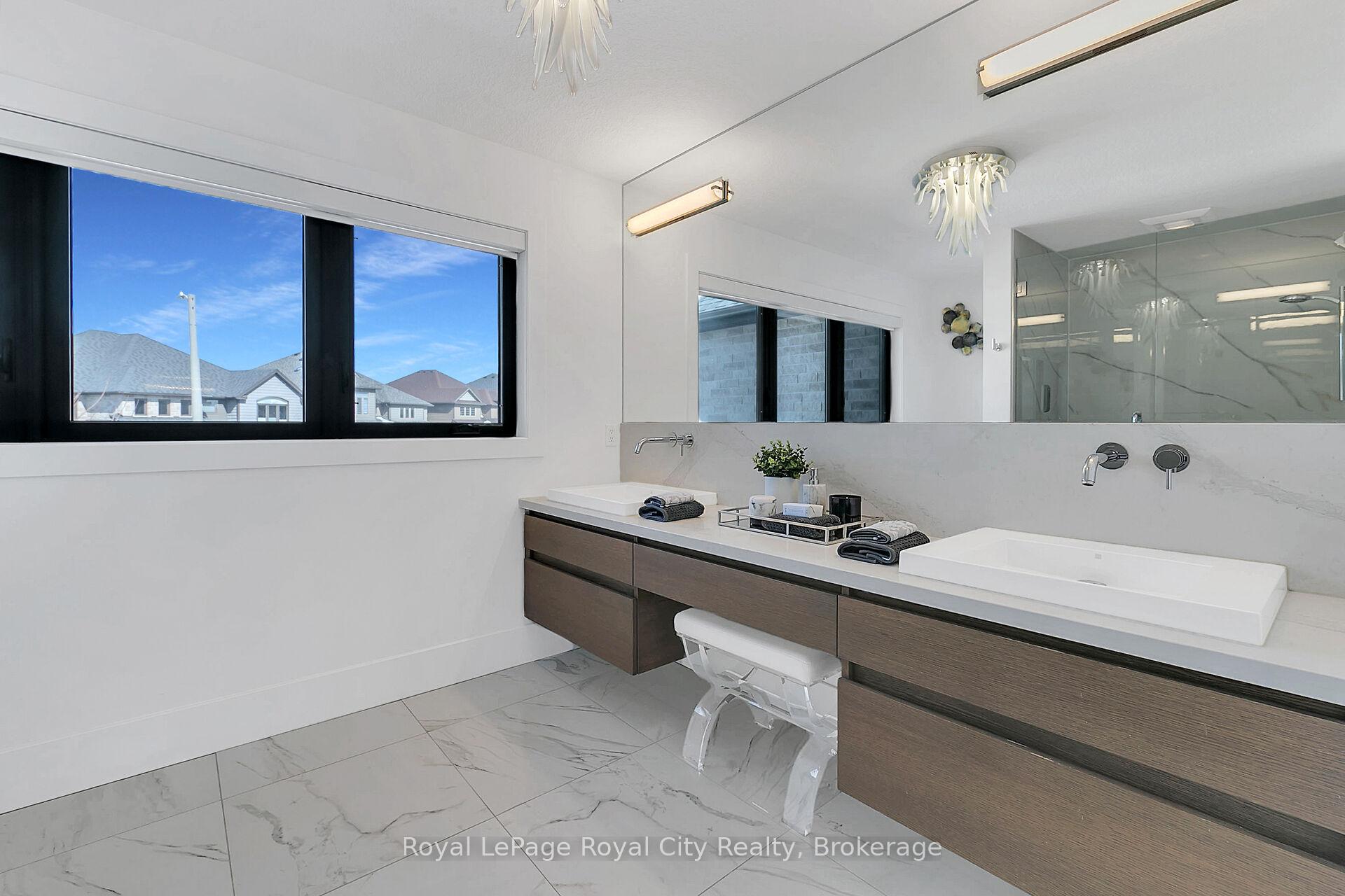 Incredibly rare south end offering! Few properties can equal the attention to detail you can expect to find in this exceptional residence. You’ll appreciate its proximity to schools, recreation, shopping and major transportation arteries, while being perfectly positioned on one of Guelphs premier south end crescents. This striking 2700+ sq ft 2 storey home is set on a massive pie shaped lot. Wait until you see the attention to the landscape design! I must say this family was well ahead of their time in design. It is hard to believe that this home has even been lived in, as it has been so meticulously maintained. Step inside and you will find a combination of a clean, understated and modern architecturally designed space for family living. As you enter, an impressive foyer showcases a grand staircase and there is a perfect home office or dining room with butlers pantry .you choose. From here, the gallery opens to the heart of the home. The custom kitchen with loads of cabinetry, granite countertops, high end appliances and breakfast island and connects to the great room and rear yard. The great room soars to 18′ and showcases handsome built-in cabinetry and custom 2 storey gas fireplace. A fabulous 2 storey sunroom complete with screens and glass provides panoramic views of the extensive landscape and enjoys perfect entertaining and dining opportunities to enjoy for 3 seasons. The scale is dramatic and the look is glamorous, but its warm and comfortable at the same time! A 2pc bath on this floor and your laundry room is convenient and accessible from the 2 car garage. Upstairs and you will find all bedrooms are a generous size. The master suite is an oasis with a luxurious spa-like bath and walk-in closet with built-ins. Two additional bedrooms on this floor share access to a 4pc bath. The bright basement offers an additional 1203 square feet including a gym, 4th bedroom, full bath, and recreation room.