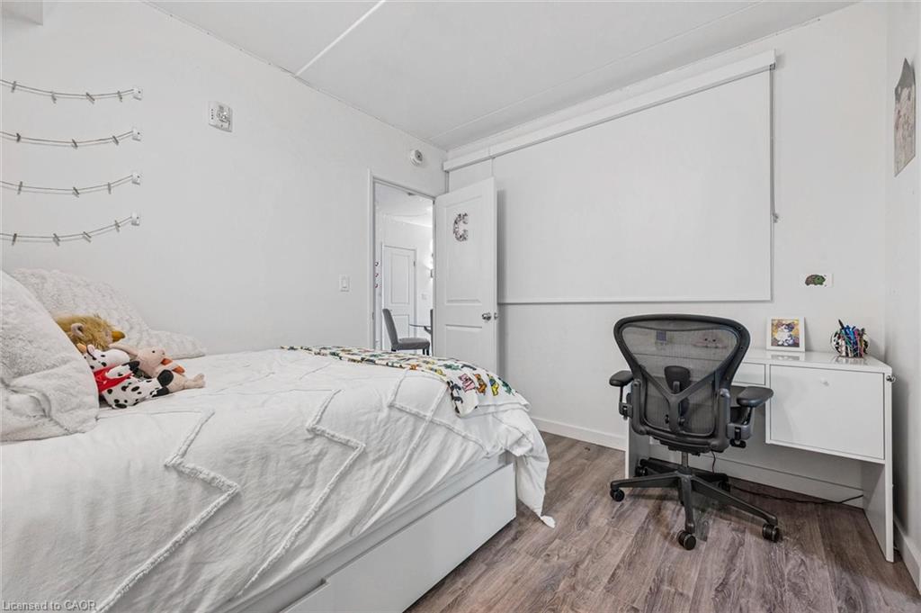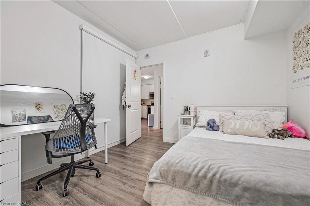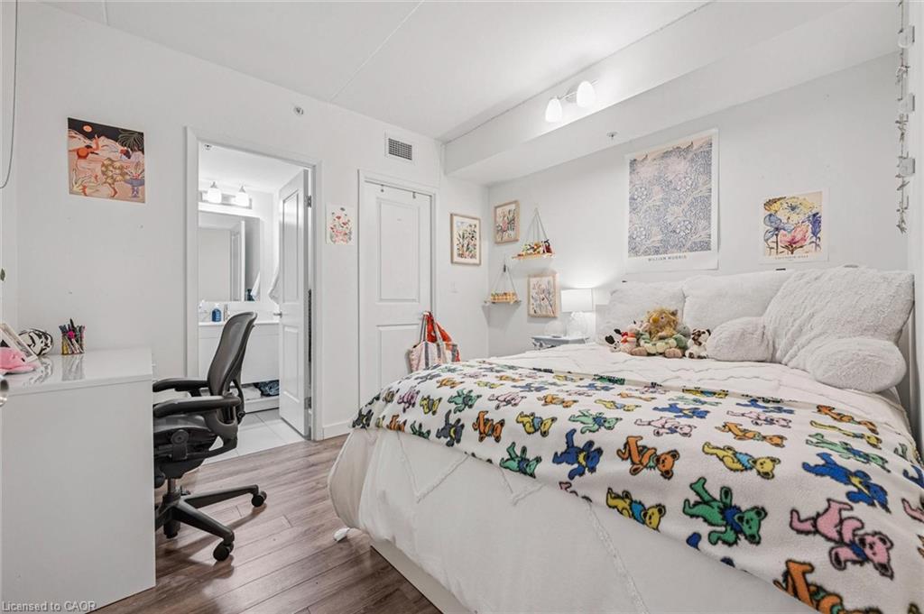 Turnkey Student Rental -Attention parents/all students & investors of University of Guelph a stunning 4-bedroom, 4-bathroom condo in one of Guelph’s most desirable rental buildings, offering guaranteed vacant possession end April 2026. Each bedroom features its own private 3 pc ensuite and generous closet space, while the bright open-concept living area and modern kitchen boast stainless steel appliances (Bosch dishwasher incl.), quartz countertops, subway tile backsplash, and trendy laminate flooring. In-suite laundry, titled parking, and oversized windows add everyday convenience and natural light. Residents enjoy premium amenities including a secured entrance, fitness center, rooftop terrace with conservation views, 24-hour WiFi study hall, media lounge, and gaming lounge with ping pong and foosball. Ideally located on a direct bus route to U of G and minutes from Stone Road Mall, grocery stores, restaurants, banks, and entertainment, this prime south-end property ensures strong rental demand and steady occupancy.
