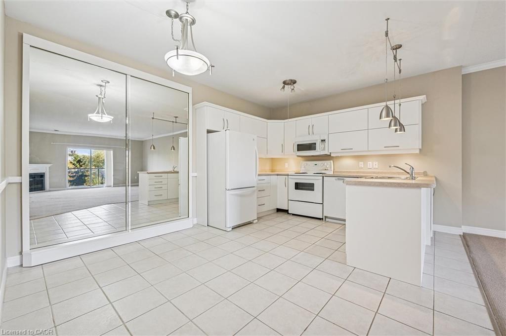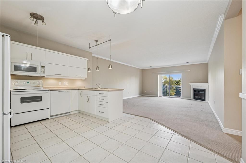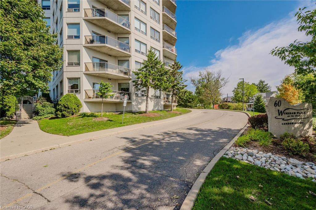 Welcome to 304-60 Wyndham Street S, where comfort, convenience, and charm come together in the heart of Guelph! This exceptionally spacious 2-bedroom, 2-bathroom condo offers 1171 interior square feet of thoughtfully designed living space, making it a rare find for first-time buyers, savvy investors, or those looking to downsize without compromise. Step inside and be greeted by an abundance of natural light streaming through large windows, illuminating the bright and airy open-concept living area. Imagine cozy evenings curled up by the fireplace, or mornings sipping coffee at the breakfast bar as the sun rises. The kitchen flows seamlessly into the living and dining spaces, perfect for entertaining friends or enjoying quiet nights in. Both bedrooms are generously sized, each featuring walk-in closets for all your storage needs. The primary suite offers a private 3-piece ensuite with a convenient walk-in shower – your own personal retreat at the end of the day. There’s even a separate storage room just off the foyer, adding to the condo’s incredible functionality. Step out onto your private balcony and take in the beautifully landscaped grounds, a testament to the pride of ownership in this quiet, well-maintained building. Enjoy the peaceful surroundings, or take a short stroll to the picturesque Speed River and the iconic covered bridge. Treat yourself to a sweet treat at the Boathouse Ice Cream Parlour, just a stone’s throw away. This unit comes with a coveted underground parking space, ensuring your vehicle is safe and secure year-round. The building itself boasts a wealth of amenities, including a guest suite for visiting family and friends, a party room/library for gatherings, an exercise room to keep you active, and a serene outdoor patio area for relaxing afternoons. Schedule your private viewing today and discover why 304-60 Wyndham Street S is the perfect place to call home!