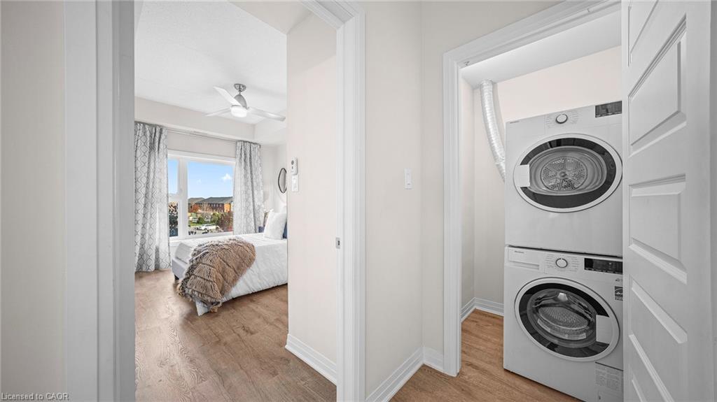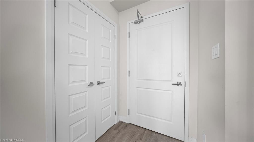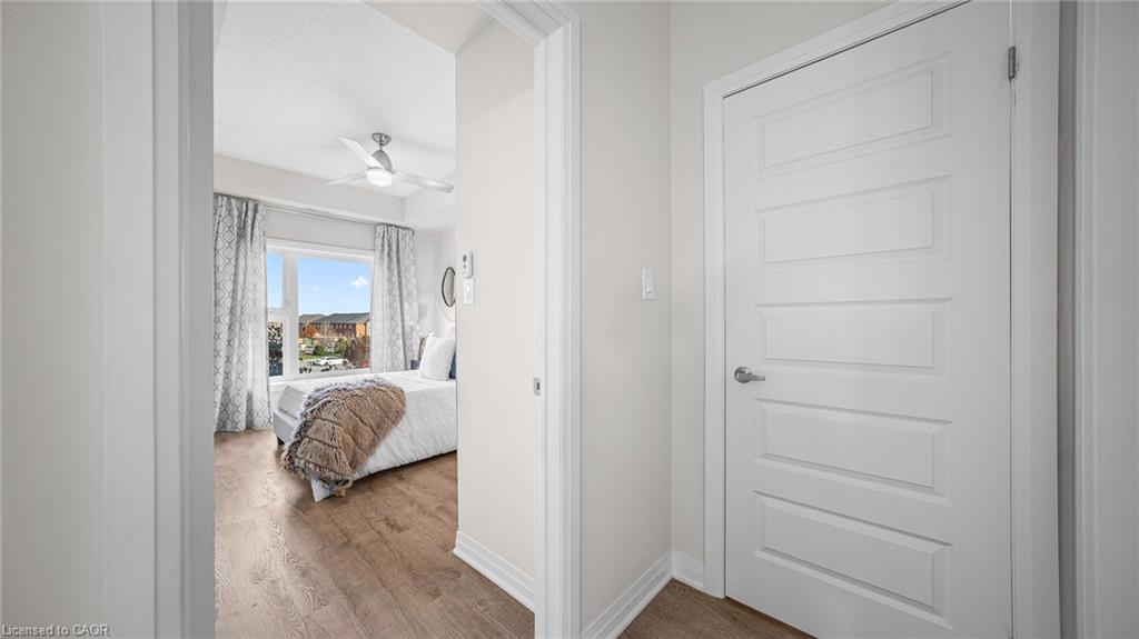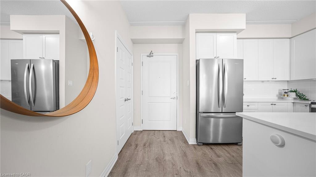 Welcome to this stylish and refined 1-bedroom, 1-bath suite in Milton’s boutique condominium by 6 Ten. This condo features an open-concept layout enhanced by 9 ft ceilings and LVP flooring throughout. The modern eat-in kitchen is appointed with quartz countertops, stainless steel appliances, and a convenient breakfast bar. The unit offers generous living space with excellent closet storage, in-suite laundry, an open balcony, parking, and a locker. Building amenities include a fitness centre, party/media room, and a fenced dog park. Ideally situated in the heart of Milton, you’re just moments from shopping, major highways, golf courses, and scenic parks.