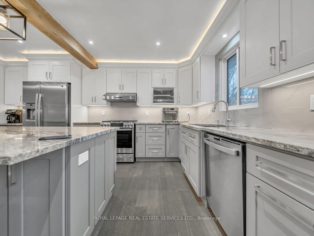 Welcome to this beautifully upgraded home, thoughtfully designed with luxury, comfort, and efficiency in every detail-truly move-in ready. The partially finished basement features updated wall studs, insulation, 12 ft high ceiling and completed electrical, making it fully prepared for drywall installation. Enjoy long-term peace of mind with a brand-new high-efficiency Trane furnace and air conditioner (installed July 2025), backed by a 10-year parts and labour warranty. Additional upgrades include a new water softener with chlorine remover and a fully updated, ESA-approved 200 AMP electrical system.Modern pot lighting illuminates both the interior and exterior soffits, creating a warm and inviting ambiance day and night. Elegant plaster crown moulding enhances every room, while decorative plaster beams bring timeless character to the dining area. Step outside to beautifully landscaped grounds featuring paver-stone walkways and patios that surround the front, side, and backyard. The property offers parking for five or more vehicles, including two covered spaces for added convenience. Inside, porcelain tile flooring adds durability to hallways and bathrooms, while engineered hardwood spans the main living areas, kitchen, and stairs. The heated garage includes its own 100 AMP panel for EV charging, along with a side door and window for added functionality. This property is located just minutes from the university of Guelph with easy access to Kortright Road West , providing a direct route to the university and other city amenities. Quick connection to highway 401 add convenience, while nearby green spaces and quiet streets enhance the neighbourhood. The seller is willing to install a wooden fence in the backyard to provide additional privacy.