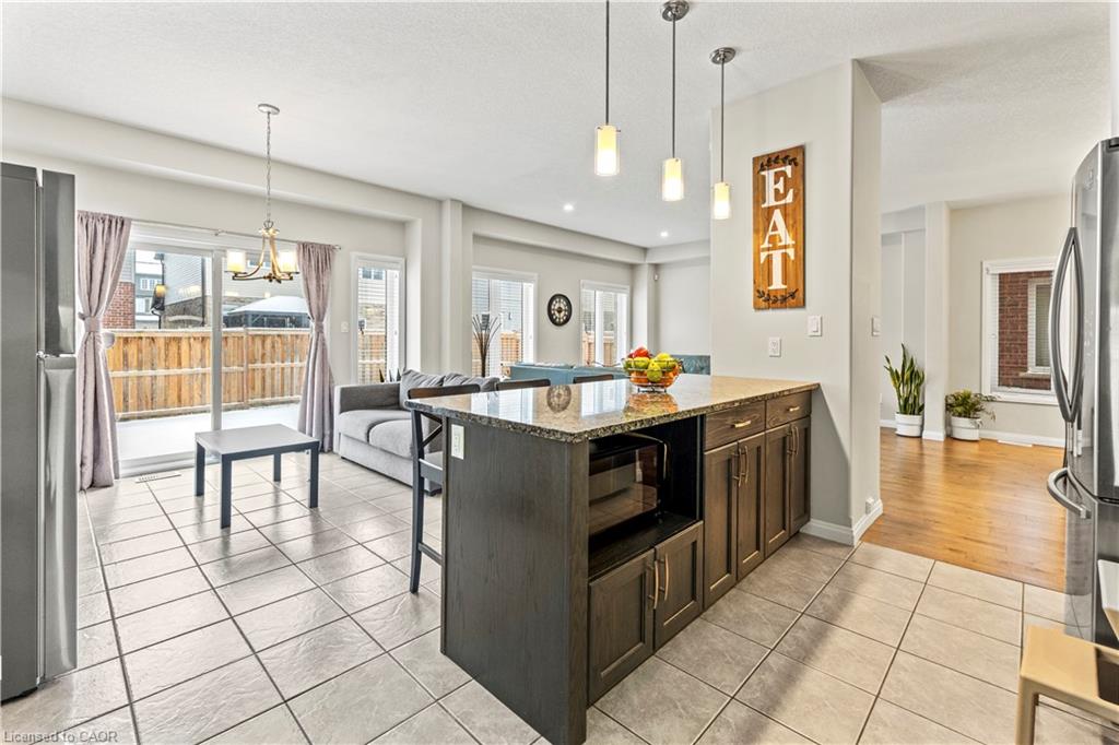 Inside, 9-ft ceilings and hardwood floor welcome you into an open-concept layout. The chef-inspired kitchen boasts a 7-ft granite island, upgraded cabinetry with under-cabinet lighting, pot lights, and a smart design perfect for entertaining and everyday life. The family room, warmed by sunlit living areas offer a serene atmosphere.