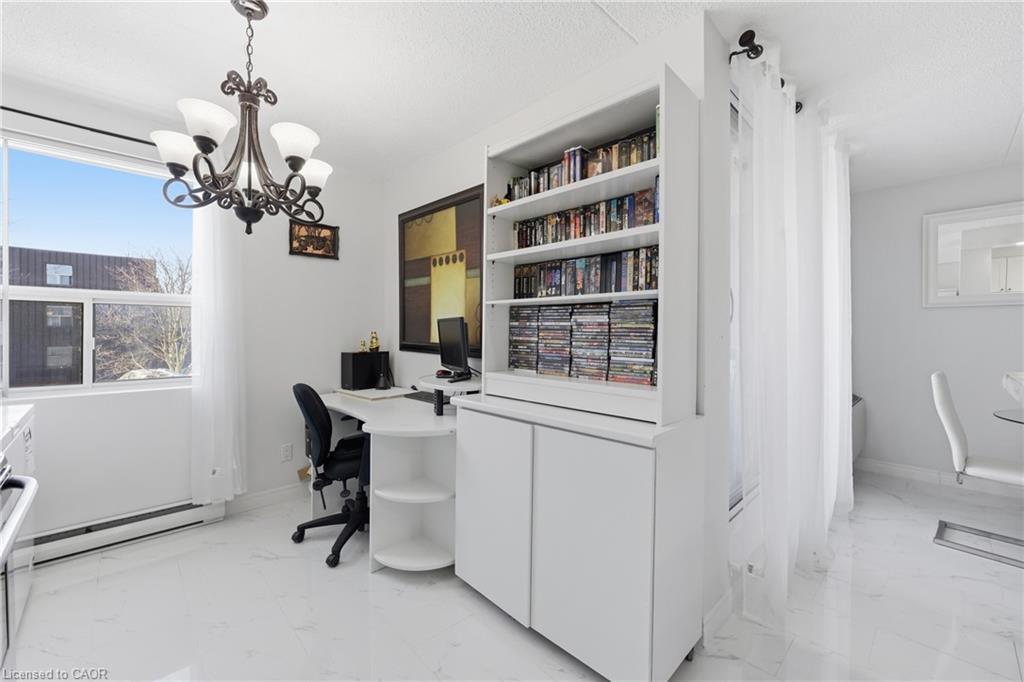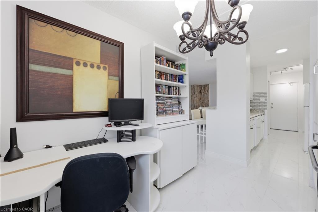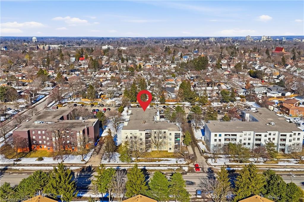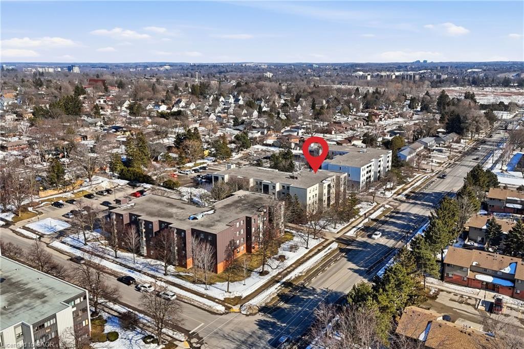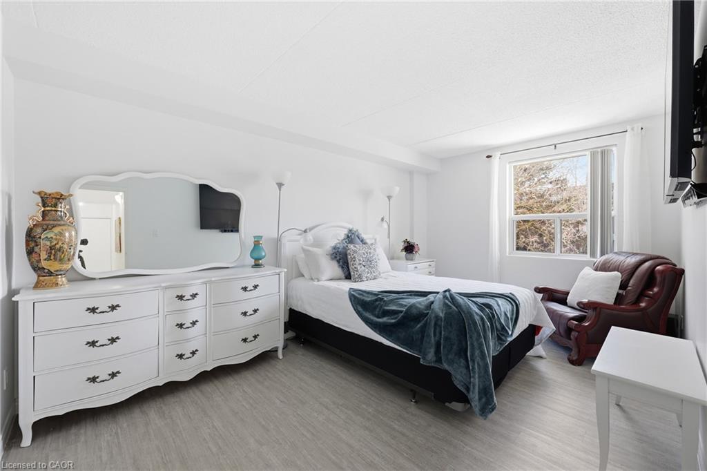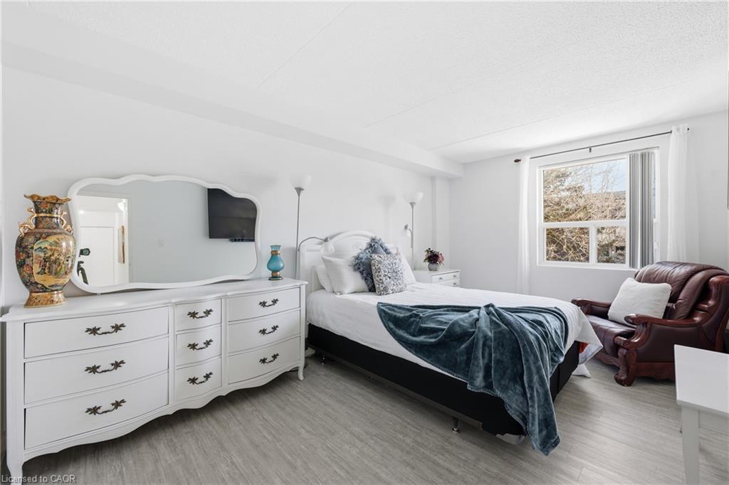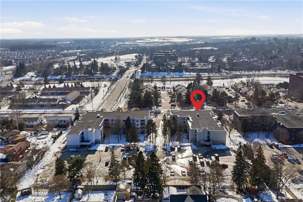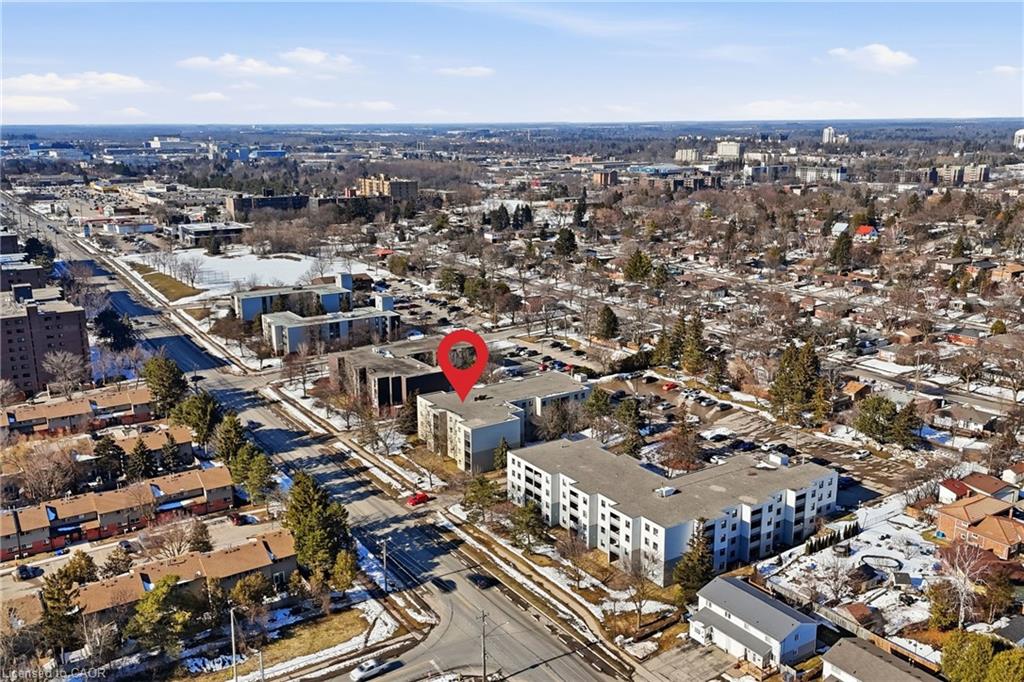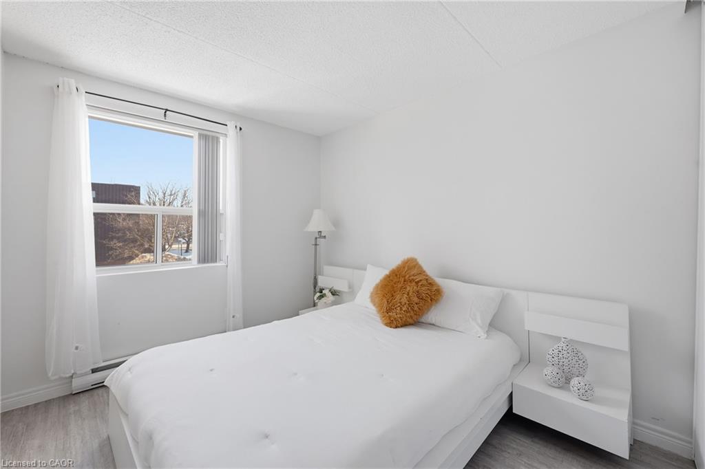 This bright, spacious, and updated corner unit is move-in ready. The two-bedroom, one-bathroom home features a fresh neutral paint palette and carpet-free living with luxurious vinyl plank and tile flooring throughout. The large living room leads to a private covered balcony with sliding doors, and large windows in every room provide ample natural light. The kitchen offers a sleek, contemporary design with pot lights, abundant cabinetry, a beautiful tile backsplash, and recently updated appliances (2024/2025). The kitchen flows seamlessly into the dining room, perfect for family dinners and entertaining.The primary bedroom includes a walk-in closet, and this unit offers plenty of storage throughout. For added convenience, the unit is located near the elevator and includes a dedicated parking spot close to the building entrance, along with ample visitor parking.Ideally situated near schools, parks, restaurants, the Hanlon Parkway, and the University of Guelph, this property is an excellent opportunity for first-time buyers, young families, investors or those looking to downsize.This is one unit not to be missed!