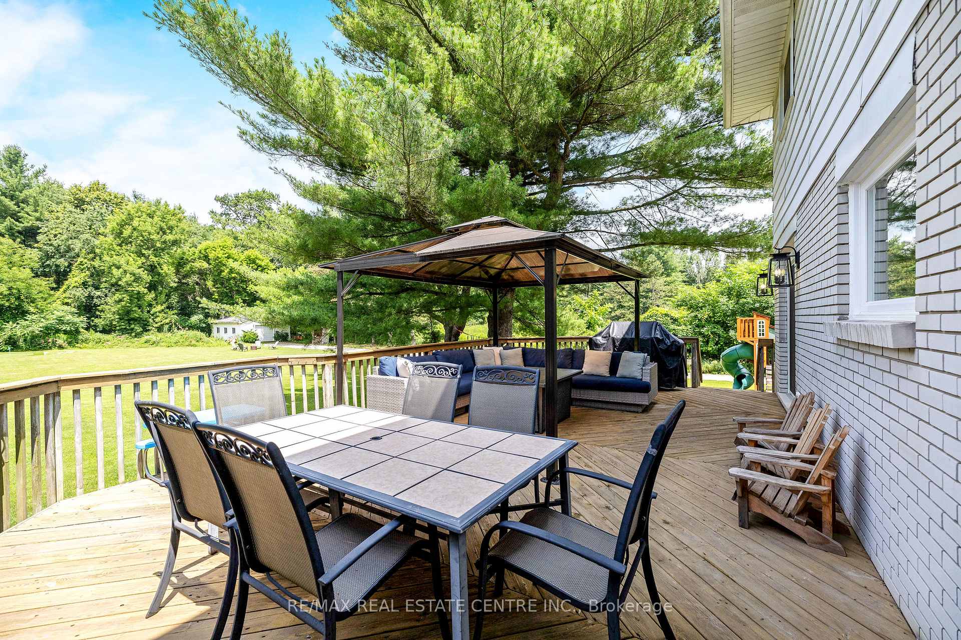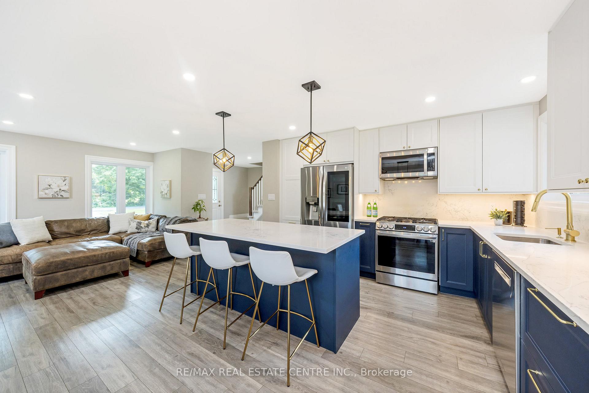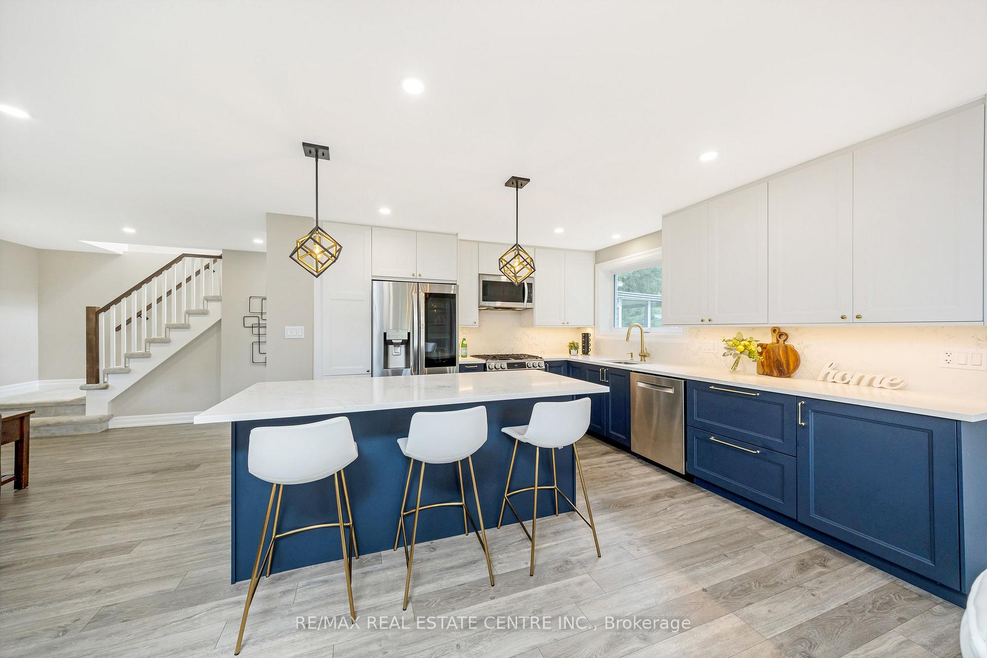 You will fall in love with this SERENE PARK-LIKE SETTING and wonderfully RENOVATED 4-BEDROOM FOREVER HOME, nestled on a PRIVATE ONE ACRE LOT backing onto woodland in sought-after Campbellville. It has been beautifully updated w/$350K in recent PROFESSIONAL RENOS. Enjoy your drive home along tree-lined Limestone Rd and take in the beautiful curb appeal w/stately new stone facade (2024), new garage door (2023), new soffits, eaves and gutters (2024). Enter the OPEN CONCEPT main level to the large living/dining room, w/WO to deck, gorgeous WHITE EI KITCHEN w/quartz counters, SS appliances (2022), massive island w/ breakfast bar, undercabinet lighting … you will never want to leave this space! There is a main level powder room, family room w/ WO to the 3-season SUNROOM and laundry w/garage access. The upper level has a beautifully reno’d 4-pc bathroom and FOUR LARGE BEDROOMS, one being the primary w/ lovely 3-pc ensuite. The lower level has large above-grade windows, massive rec room, gym/office, cold cellar and 100 amp breaker. Addt’l Features: Parking for 20+ in driveway, a 1.5 car garage w/more parking in workshop, spray foam insulation (2022), epoxy floor in garage, updated light fixtures, FULL-HOME GENERAC GENERATOR. Unlike many rural properties, this home is heated w/NATURAL GAS and has HI-SPEED INTERNET. The property is beautiful … WIDE OPEN SPACE for the kids, tall mature trees for privacy and a putting green! 2nd driveway to the insulated workshop w/electricity at back of the property. Ideally located SOUTH of the 401 close to Milton, Burlington & Guelph and minutes to Campbellville’s quaint downtown – restaurants, post office, pharmacy, grocery, LCBO, spa, coffee, parks. Easy hwy access, conservation areas/skiing, golf, 25 min drive to Pearson Airport and in the highly desirable Brookville PS catchment. This type of property is highly sought-after but rarely offered for sale.