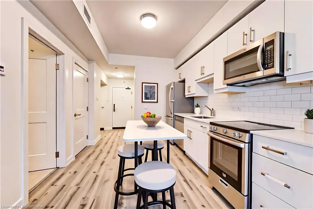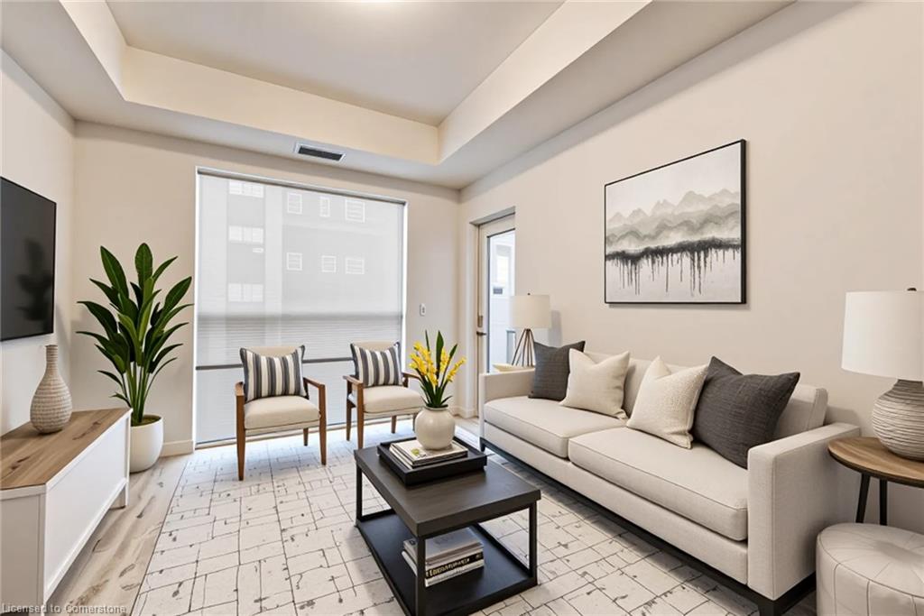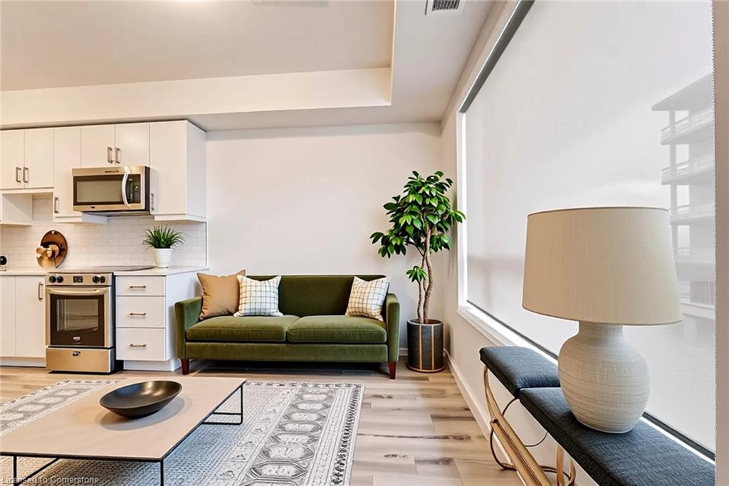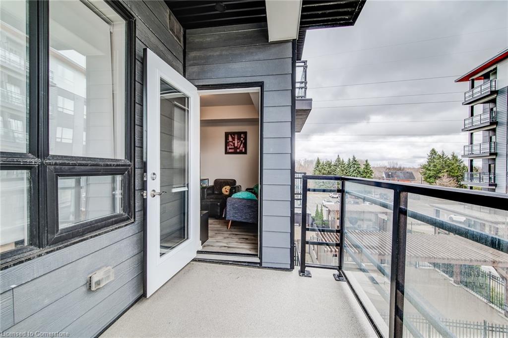 Welcome to Unit 309 at 247 Northfield Drive E., Waterloo – a beautifully appointed 1-bedroom, 1-bath condo offering 531 sq ft of stylish, low-maintenance living in one of Waterloo’s most convenient and vibrant locations. This unit features a bright, open-concept layout with tall ceilings and built-in blinds, creating a sleek, airy feel throughout. The modern kitchen is equipped with stainless steel appliances, quartz countertops, and ample cabinetry, opening into a cozy living space with vinyl flooring and walkout to a private balcony – ideal for your morning coffee or evening unwind. The spacious bedroom and 4-piece bathroom are complemented by in-suite laundry, underground parking and a storage locker, providing both comfort and practicality. Building amenities elevate your lifestyle with access to a hot tub, exercise room, rooftop terrace, community BBQ area, party room, and visitor parking – everything you need right at your doorstep. Located just steps from shopping, dining, and public transit, this condo is perfect for first-time buyers, professionals, or investors seeking modern living with urban convenience. Don’t miss this opportunity to own a stylish, amenity-rich condo in the heart of Waterloo