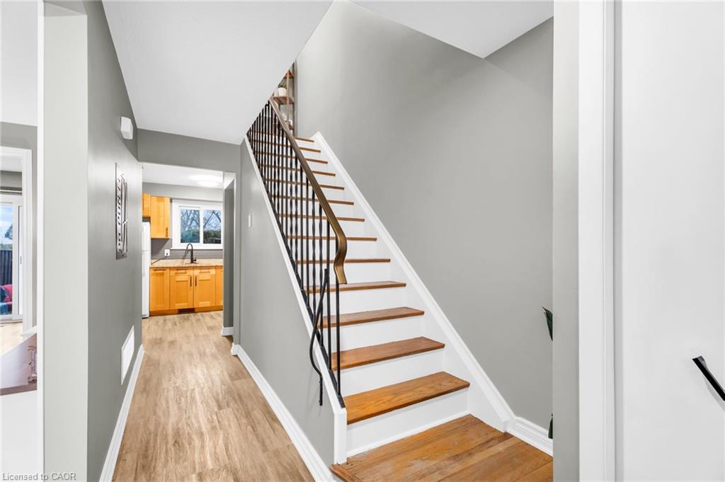 ?A beautifully maintained end-unit townhome in the heart of Georgetown. Filled with natural light and ideally positioned within the complex with ample visitor parking, this unit truly stands out. Thoughtfully updated throughout, the home features a stylish eat-in kitchen with granite countertops and sliding doors that open to the private backyard complete with a gate and lock, offering convenient access for homeowners. It’s an inviting space for everyday living and easy entertaining. Hardwood and luxury vinyl flooring run throughout, offering warmth, durability, and a cohesive feel. The fully finished basement, complete with an additional bathroom, adds valuable living space with new carpeting on the stairs, perfect for a cozy retreat or flexible bonus area. A standout feature of this home is its efficient gas furnace and central air-conditioning system, to help provide balanced comfort and climate control throughout. Situated within walking distance to shopping, schools, and parks, and just a short drive to Georgetown’s scenic trails and outdoor spaces, this property offers an ideal blend of convenience, comfort, and community connection. A fantastic opportunity to own an updated end-unit in a sought-after Georgetown location.