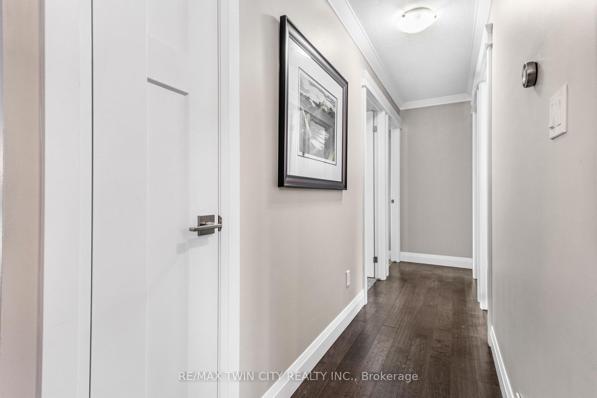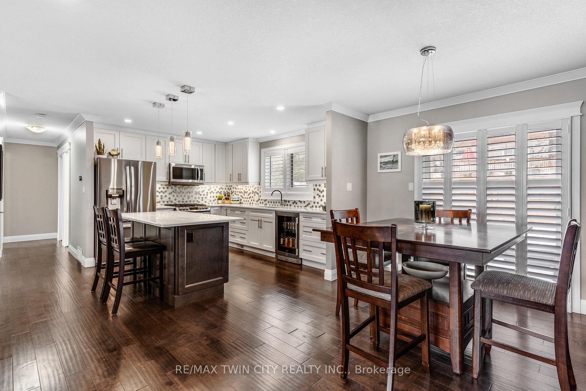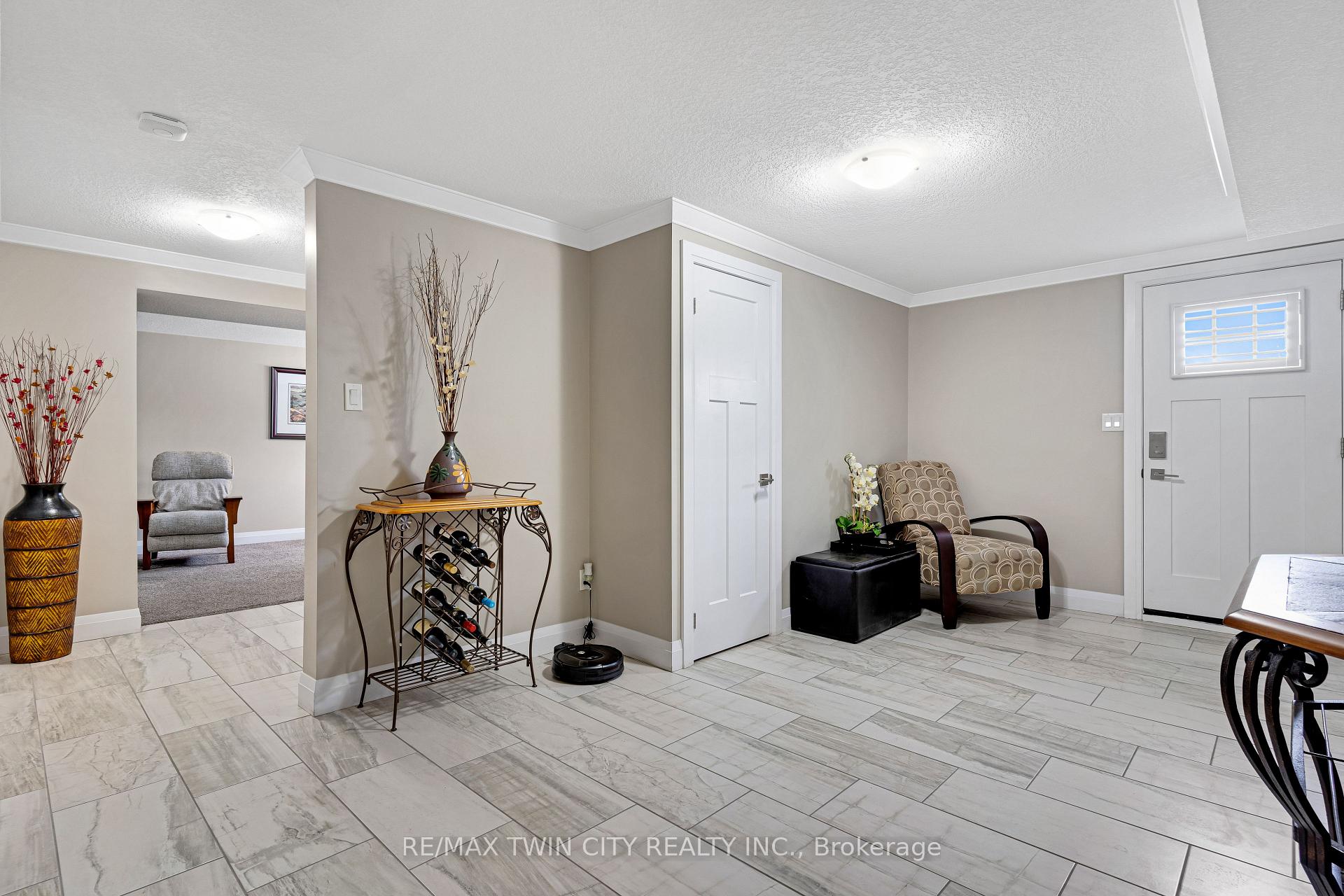 Welcome to 31 Dayman Court, a fully renovated raised bungalow tucked away on a quiet court with mature forest views, ideally located on the border of Kitchener and Waterloo, and just around the corner from Westmount Golf & Country Club. This move-in-ready 3-bedroom, 2-full-bathroom home offers open-concept main floor living and has been thoughtfully updated from exterior to interior with high-end finishes throughout. Features include crown moulding, flawless laminate flooring, quartz countertops, and quality fixtures. The bright lower level offers large windows, a spacious rec room, laundry, 3-piece bathroom, and a convenient separate entrance beside the oversized garage leading into a generous mudroom with direct garage access, providing excellent potential for an in-law setup. Upstairs showcases a tastefully renovated kitchen and living spaces, three generous bedrooms with large windows, and a 4-piece bathroom. Major updates completed in 2017 include roof, furnace, A/C, windows, doors, trim, and 100-amp electrical service on breakers. Additional improvements include blown-in cellulose attic insulation (2018), front steps (2024), and a freshly sanded and stained deck (2025). Extra long single-car garage and parking for two vehicles. Step outside to a fully fenced backyard featuring mature gardens, perfectly poised for beautiful spring blooms, an ideal space to relax, entertain, or enjoy your own private outdoor retreat. Enjoy a peaceful, family-friendly setting with quick access to shopping, parks, trails, transit, universities, and major commuter routes, offering the perfect blend of privacy, nature, and convenience.